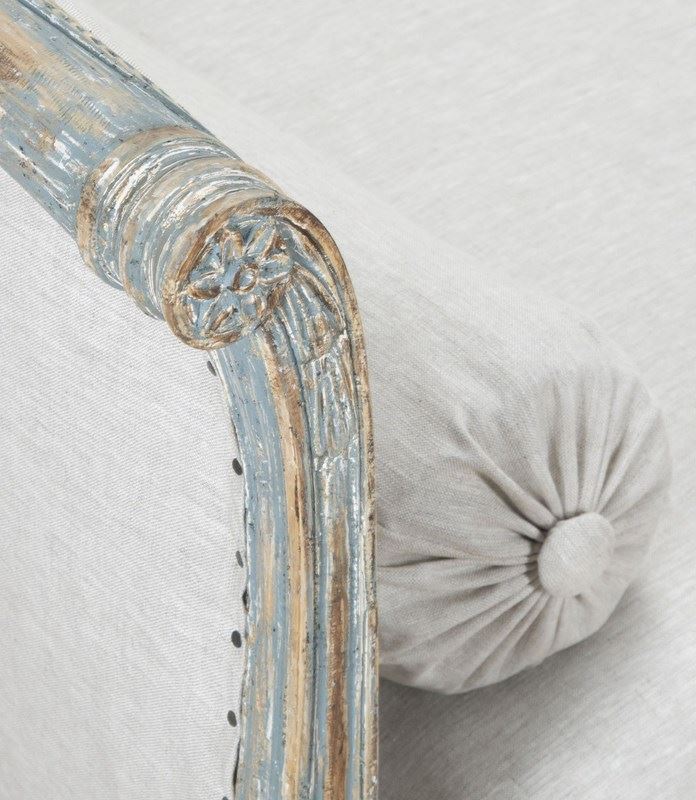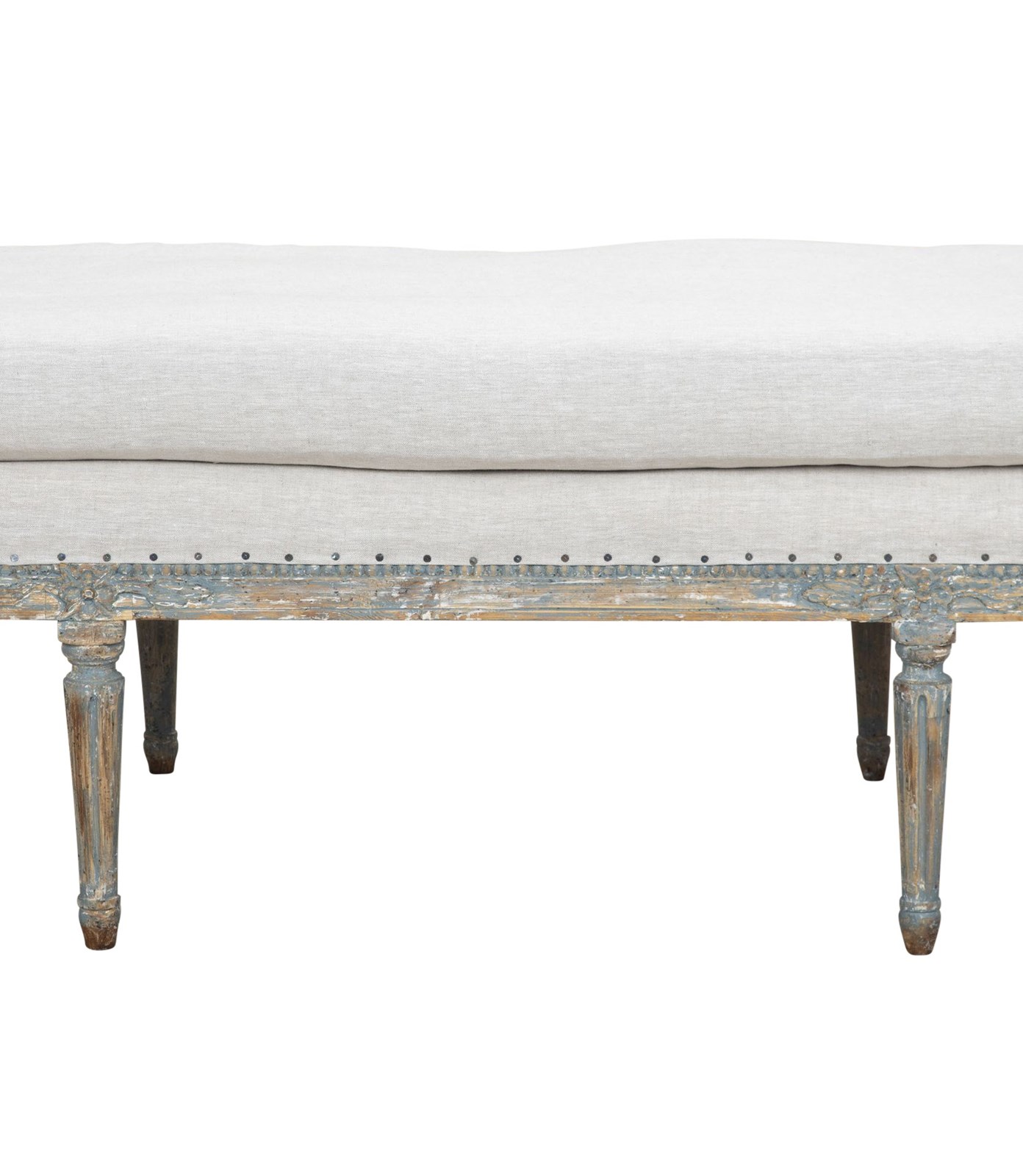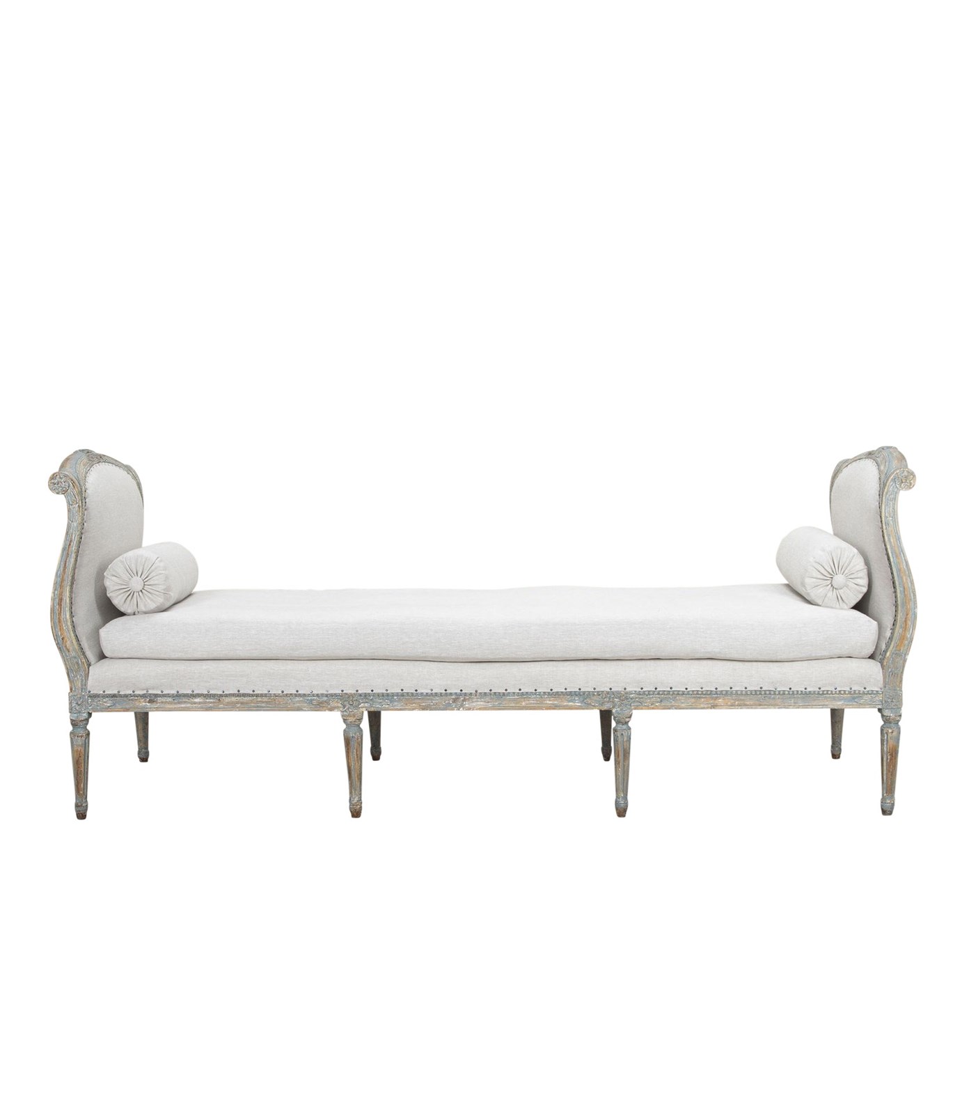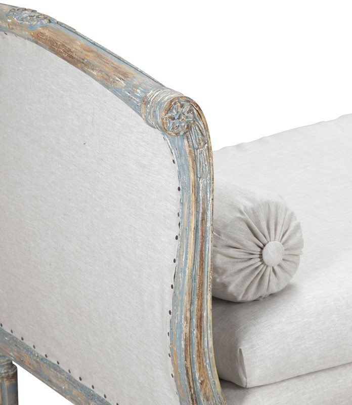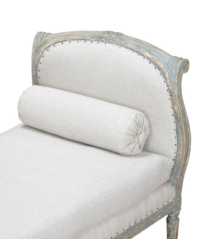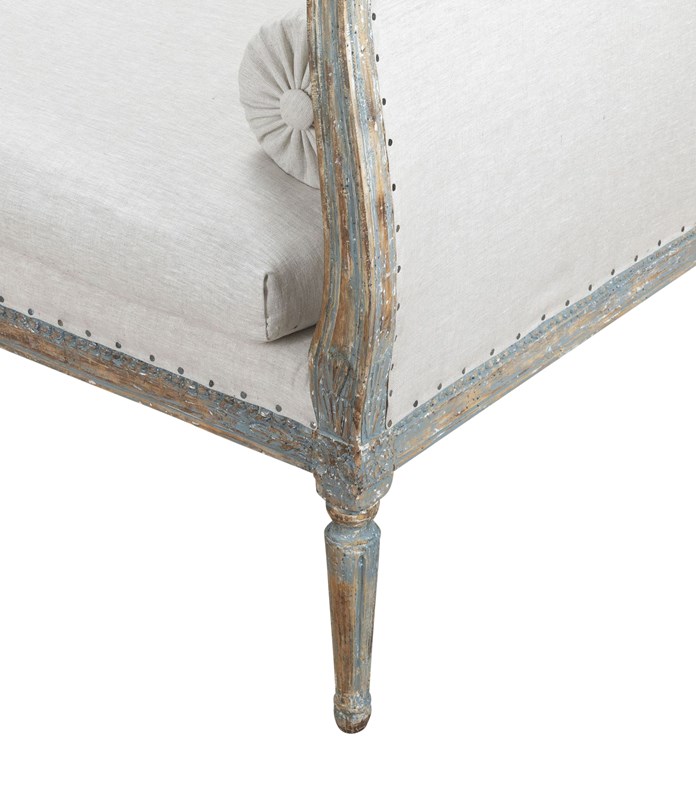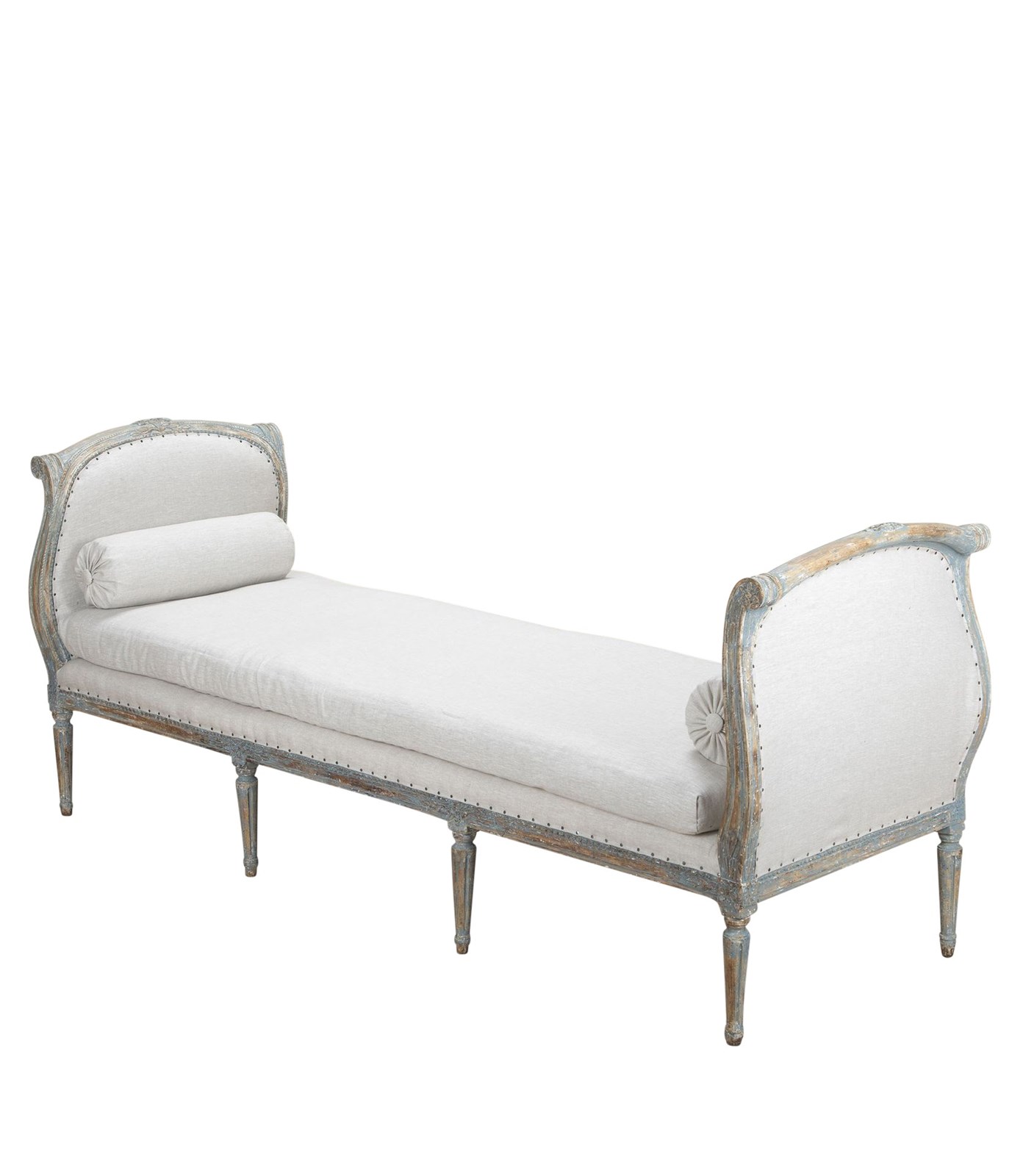 A rare to source late 19th Century Swedish period freestanding Gustavian day bed repainted in soft blue.
