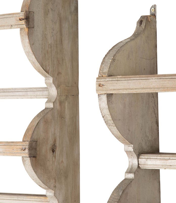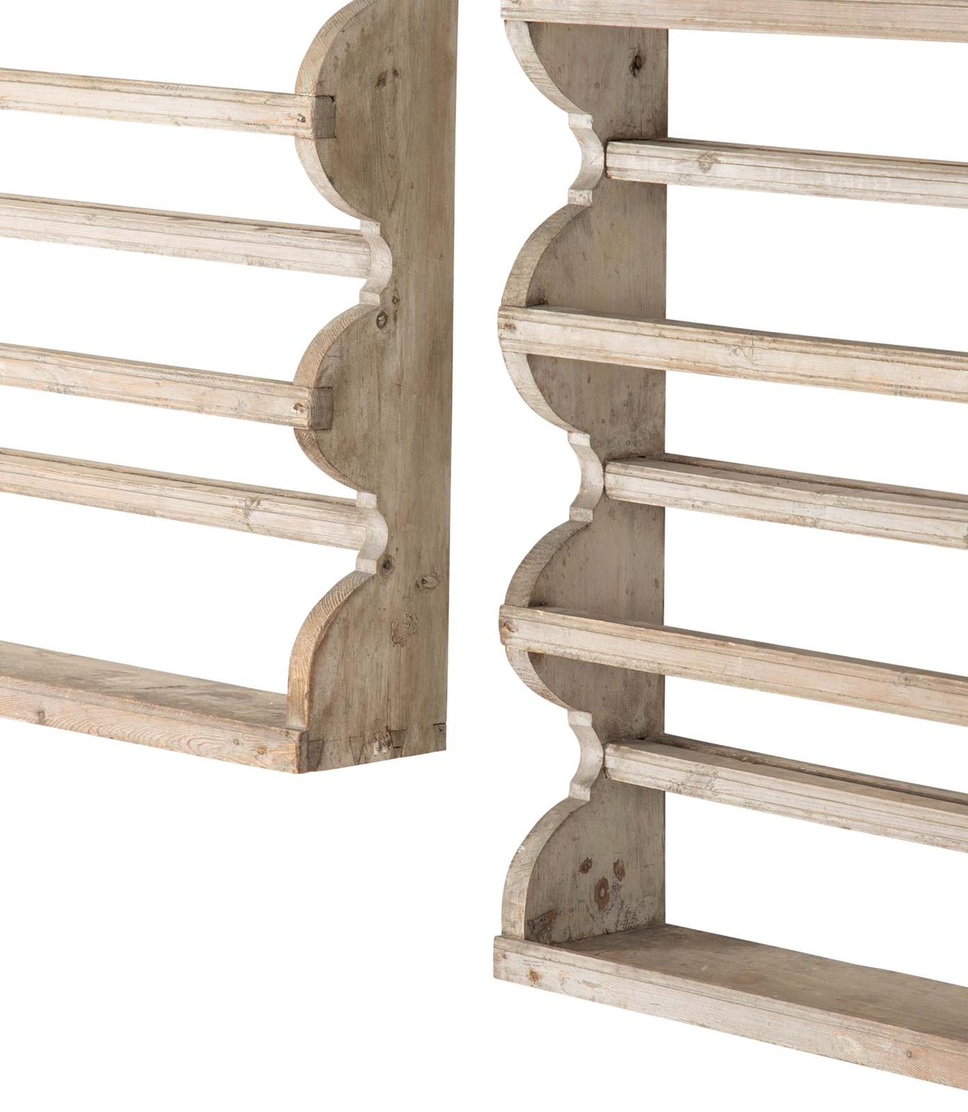 Matched pair of 19th Century plate racks in original grey paint from Halsingland, Sweden.
