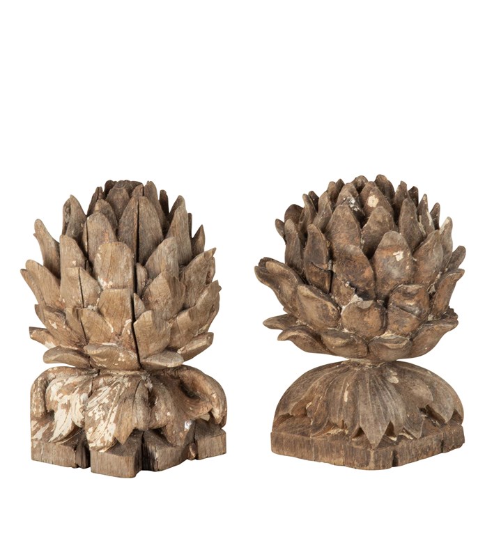 Pair Of 19Th Century French Carved Wooden Artichokes