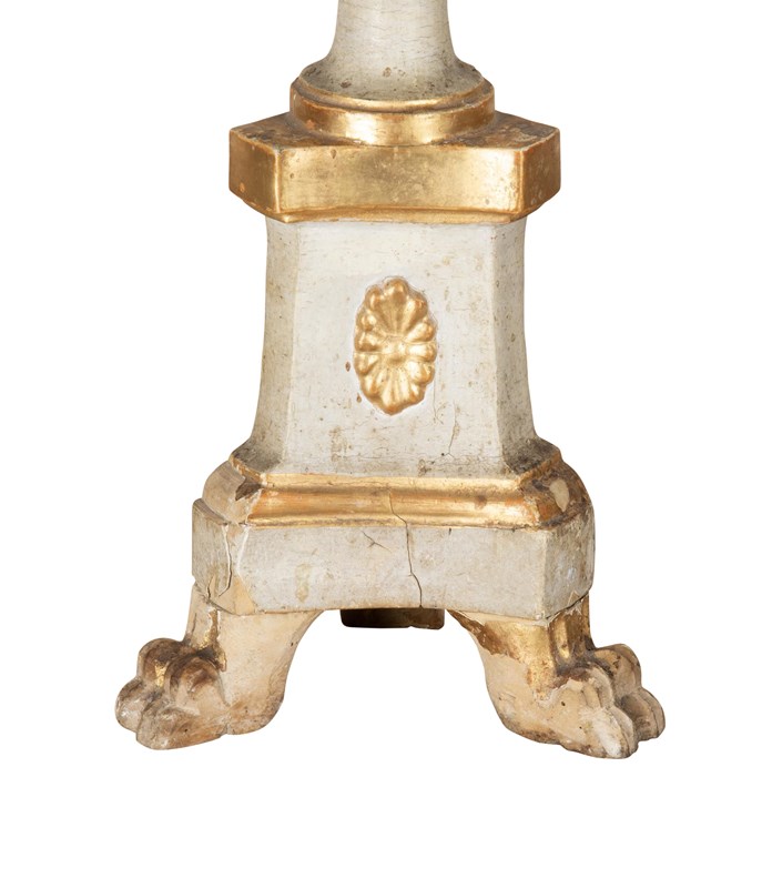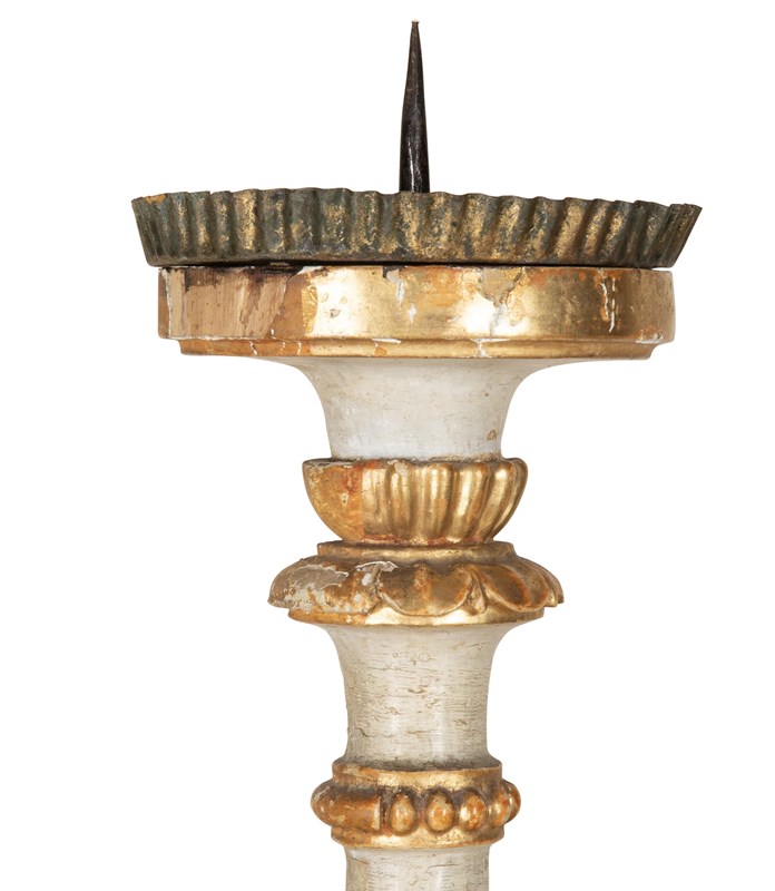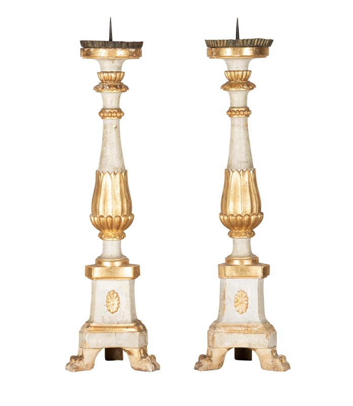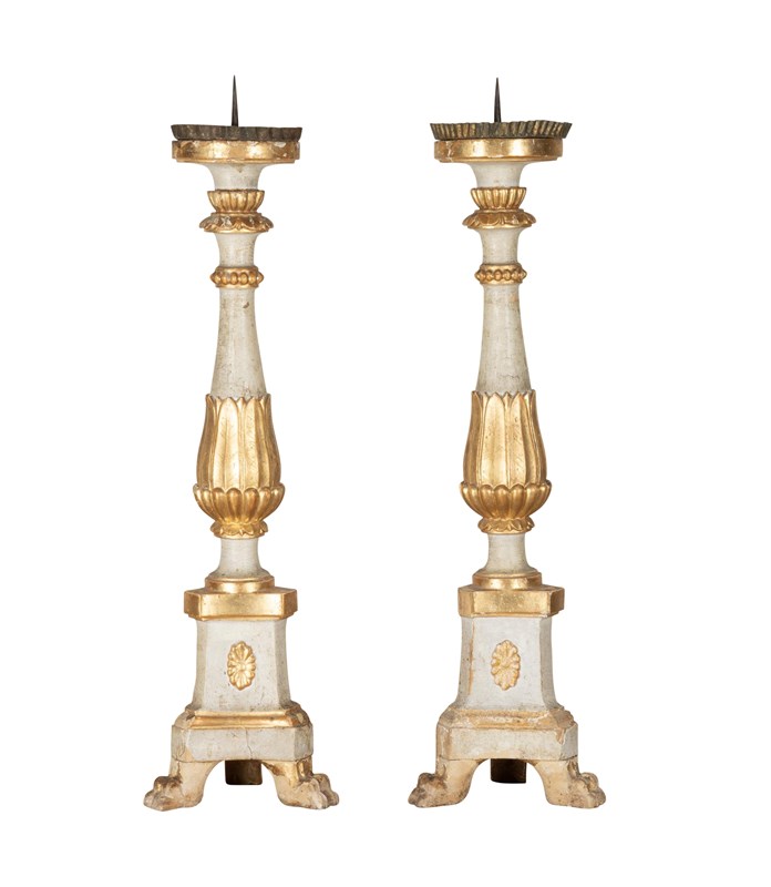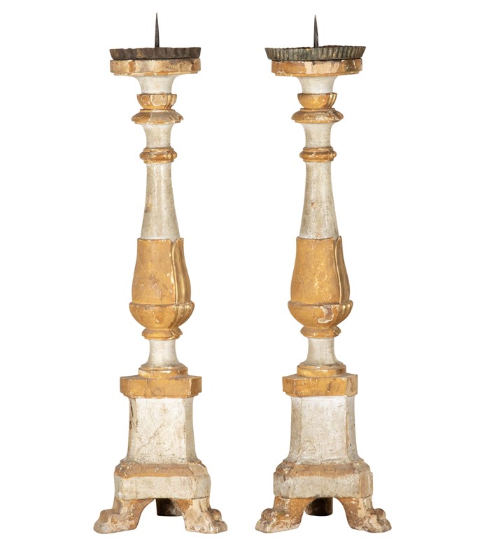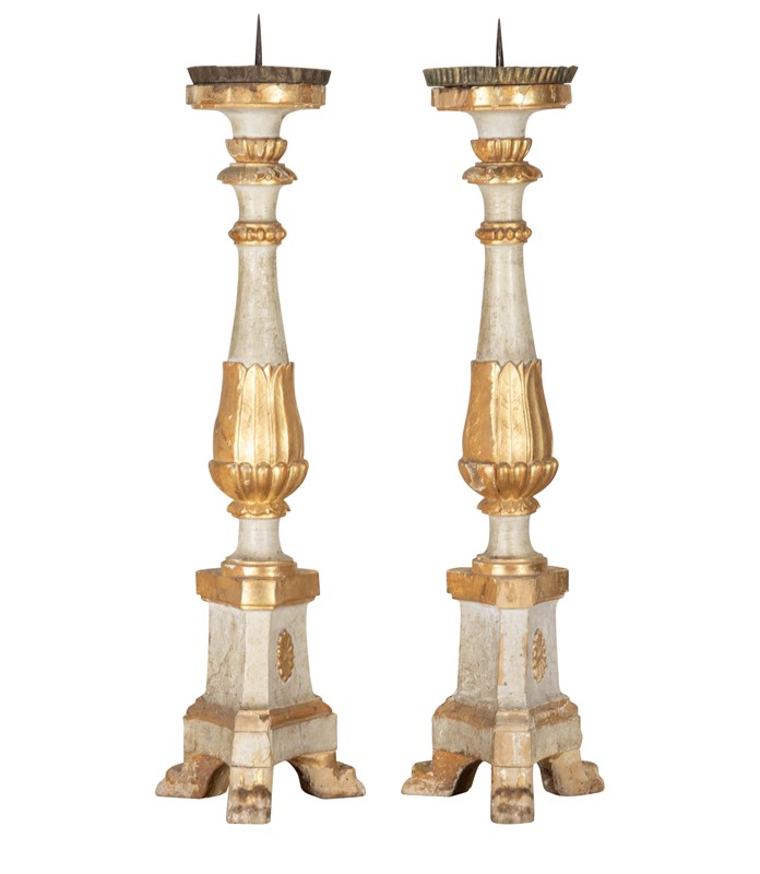 Pair Of 19Th Century Italian Silver Gilt Carved Wood Candlesticks