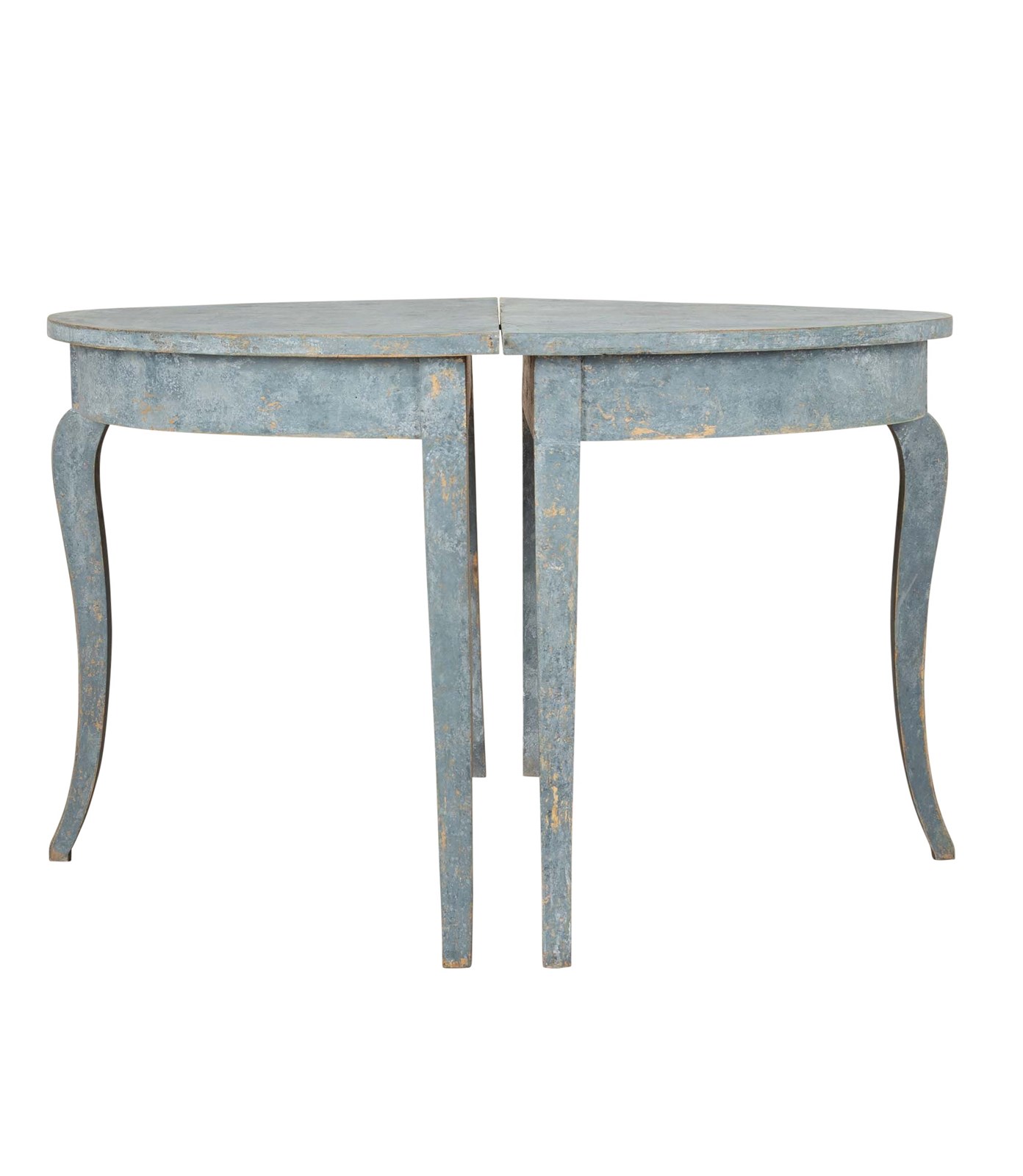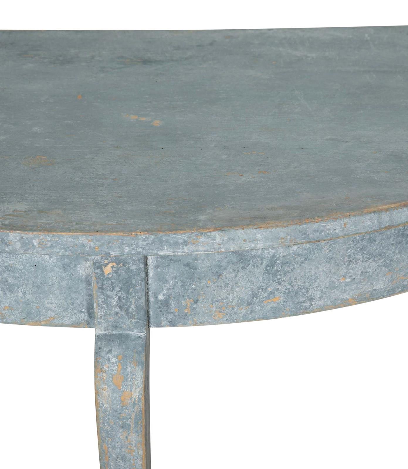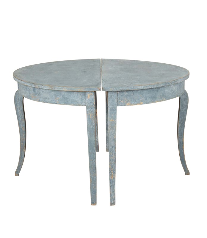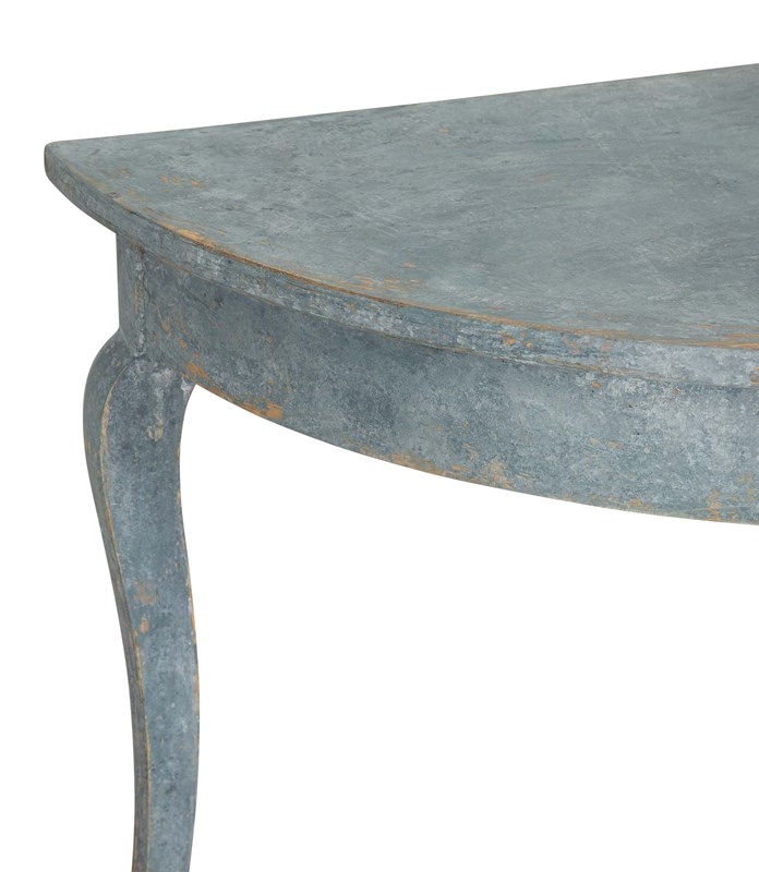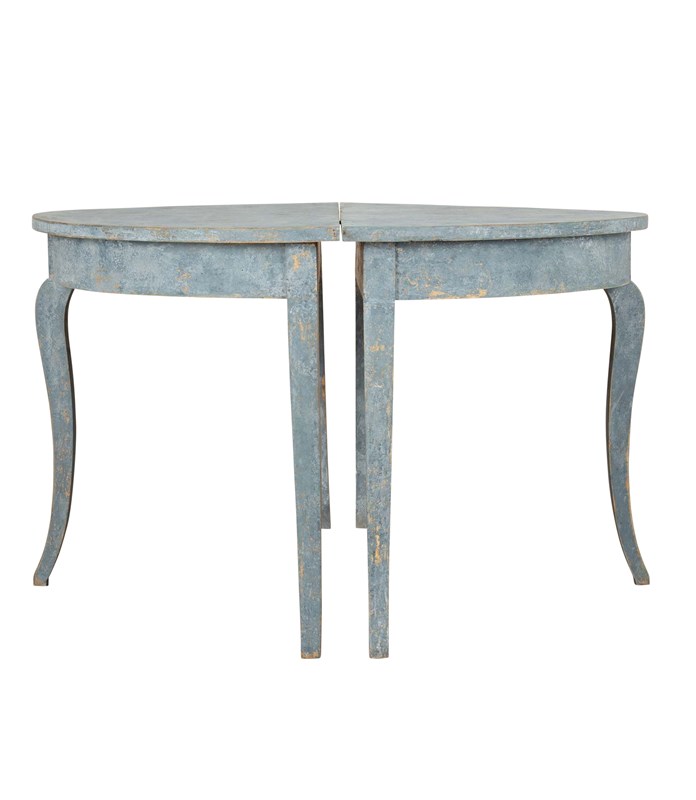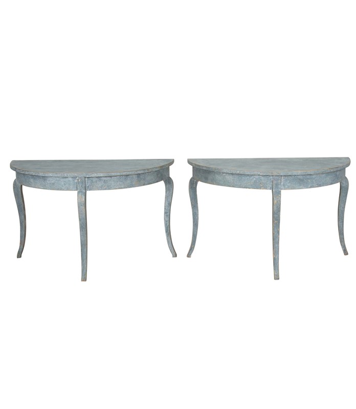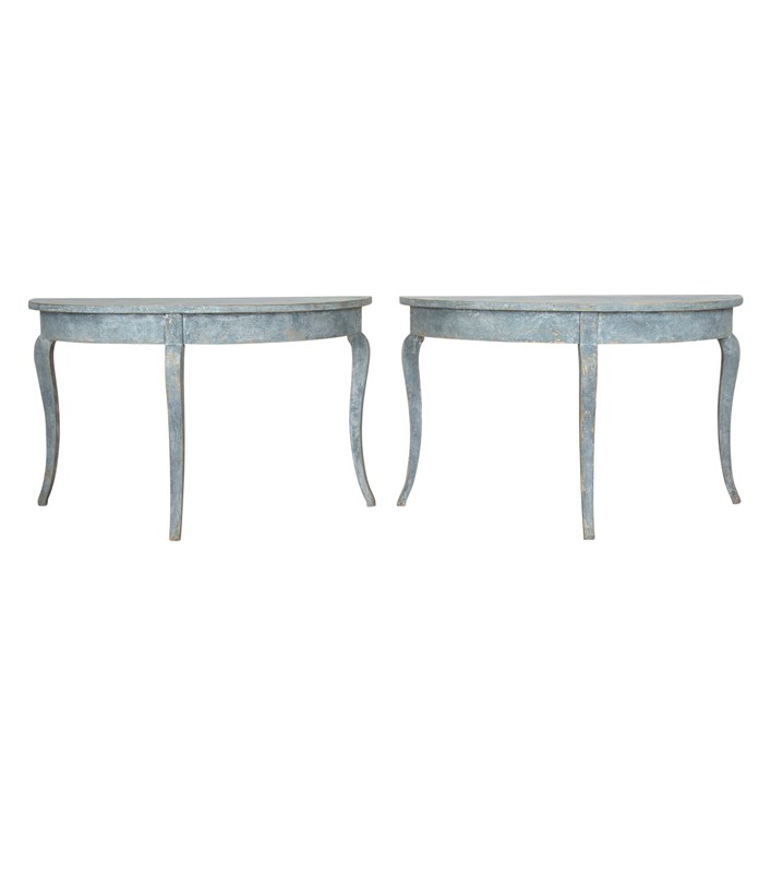 Pair Of 19Th Century Swedish Blue Painted Demi Lunes