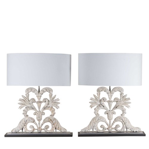Pair Of 19Th Century Swedish Carved Wooden Lamps