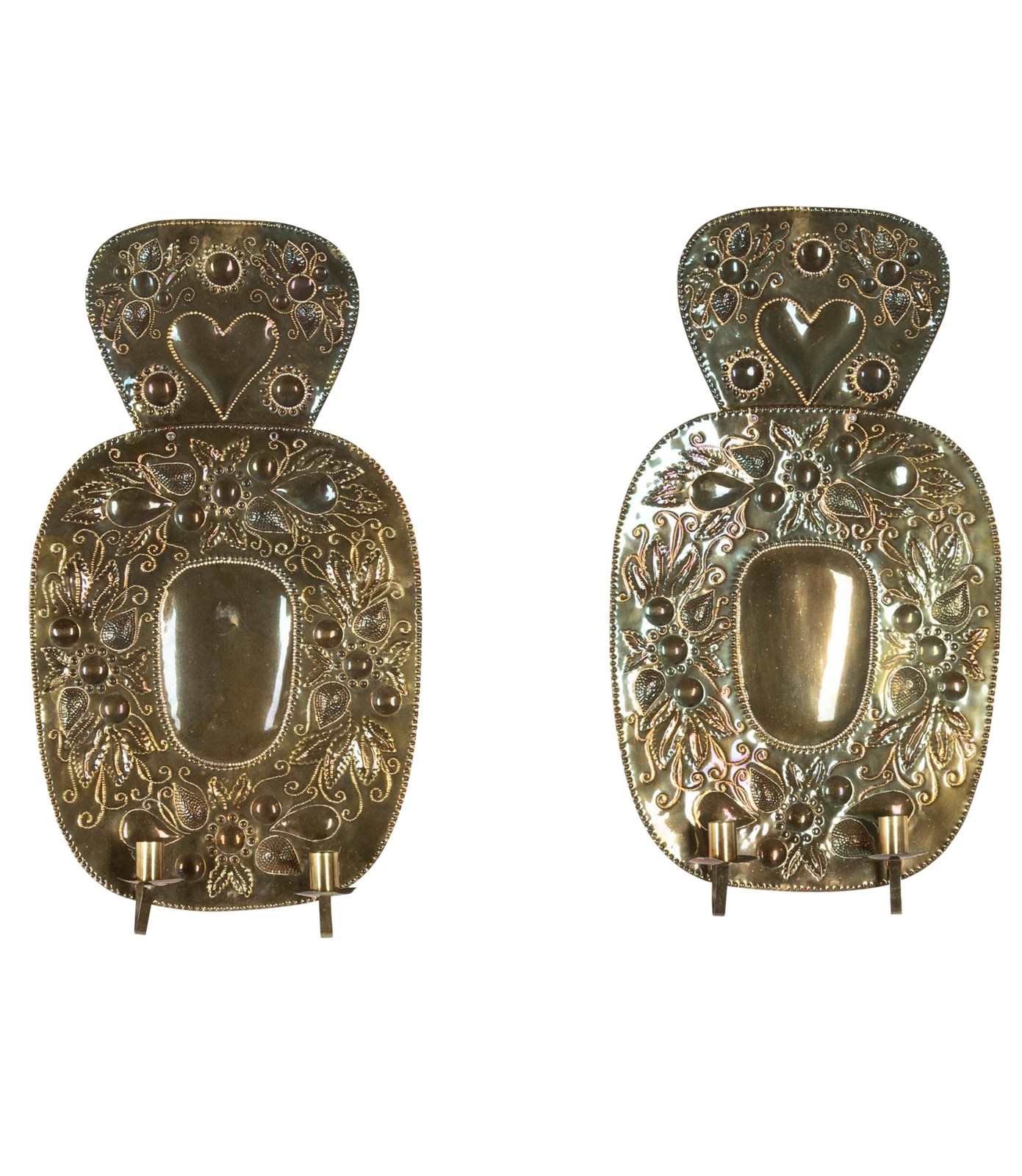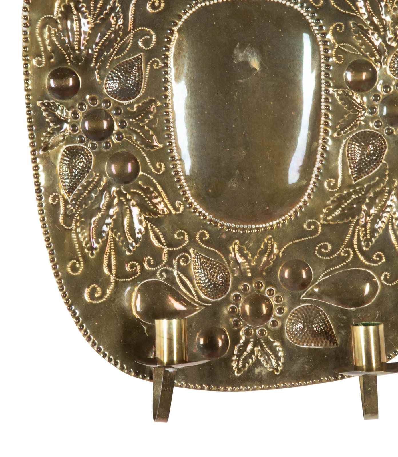 Pair Of 19Th Century Swedish Pressed Brass Wall Sconces