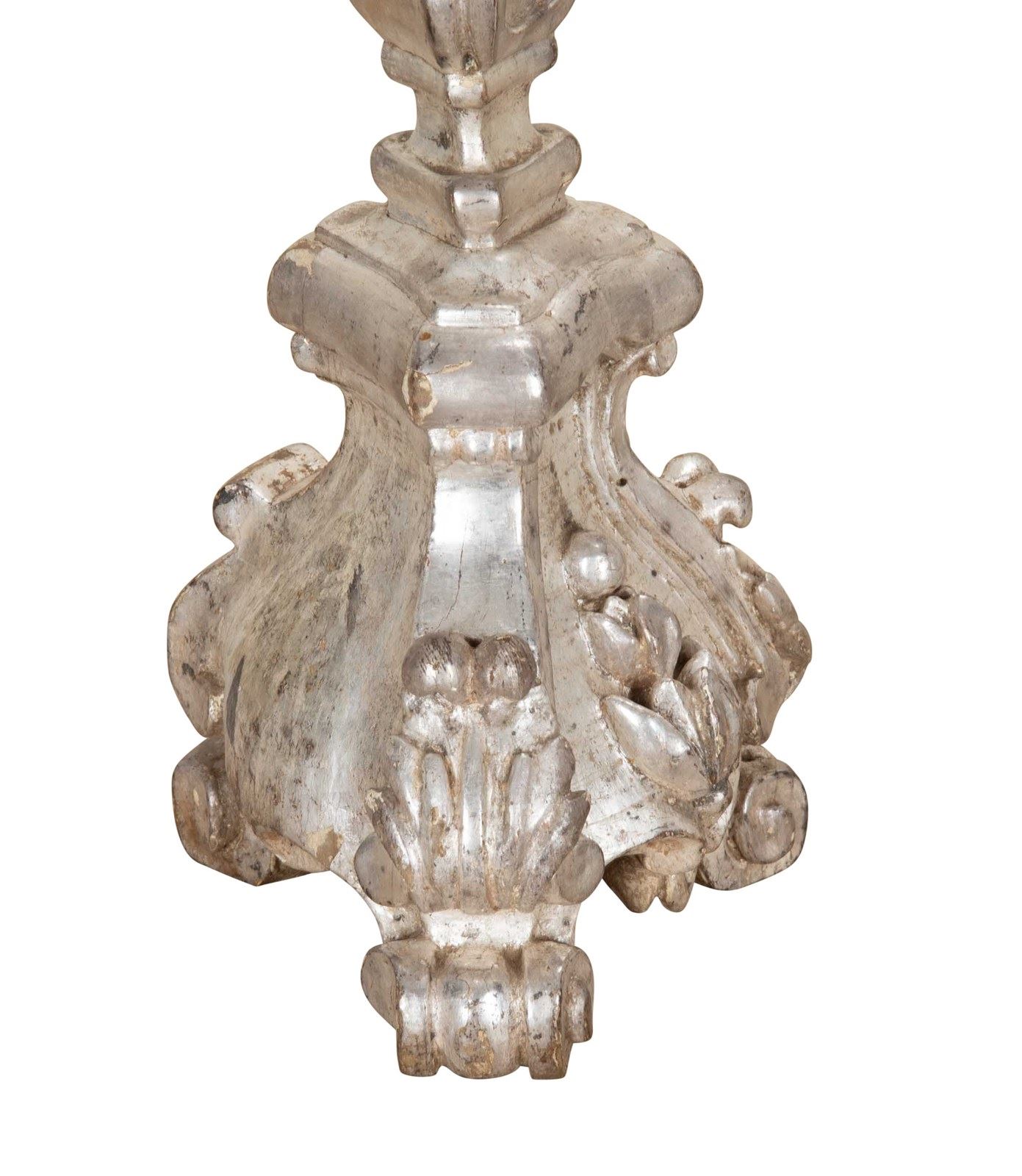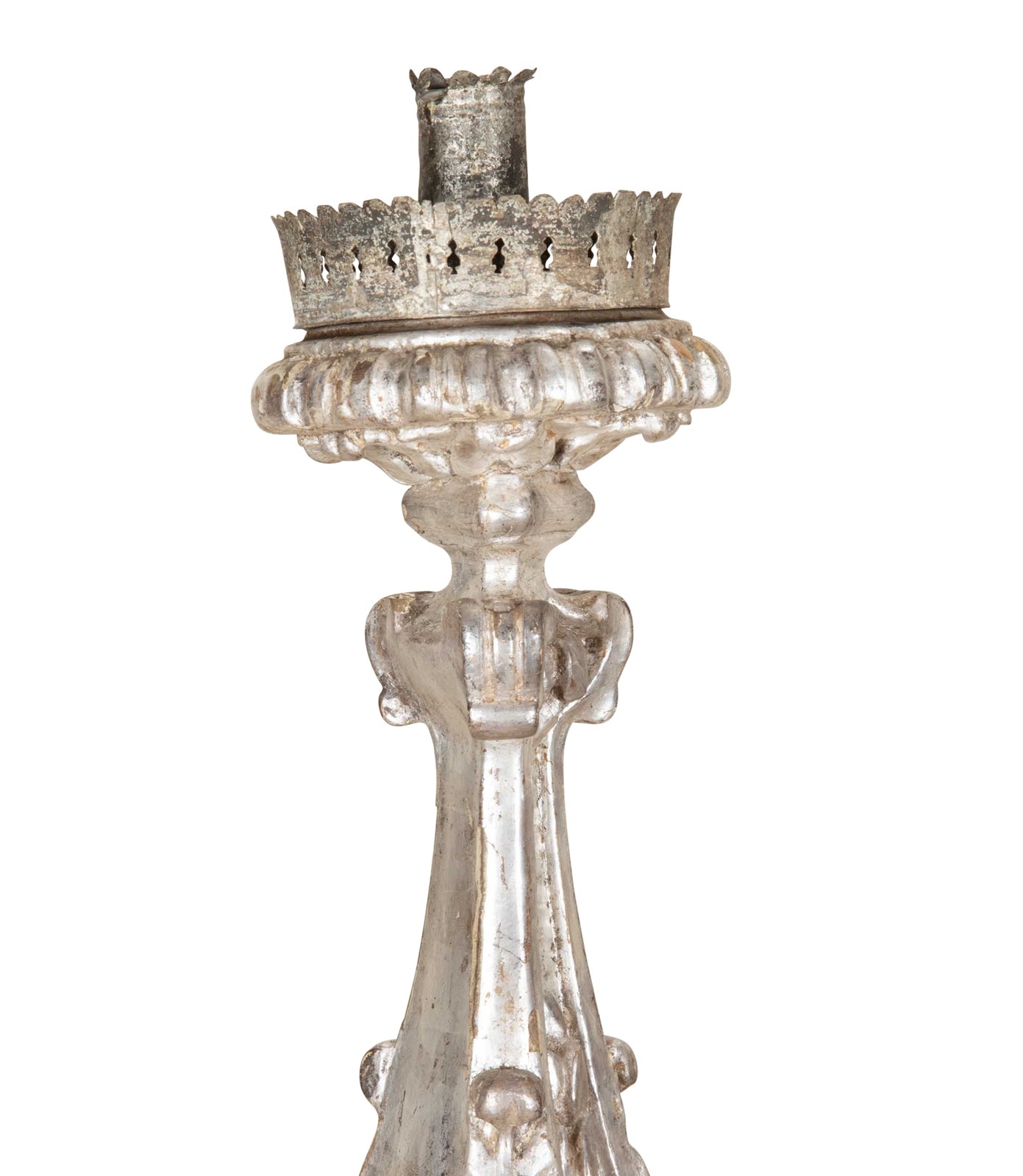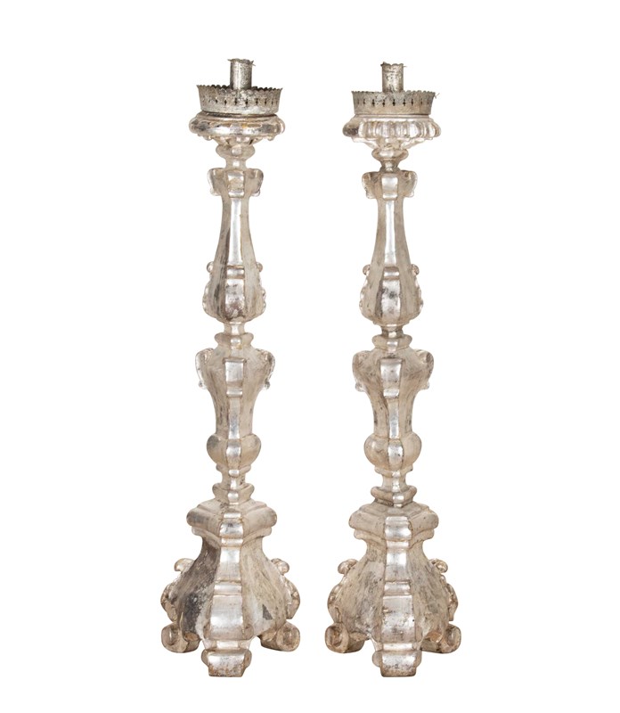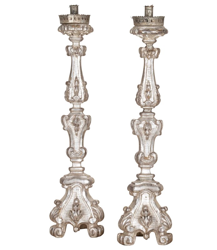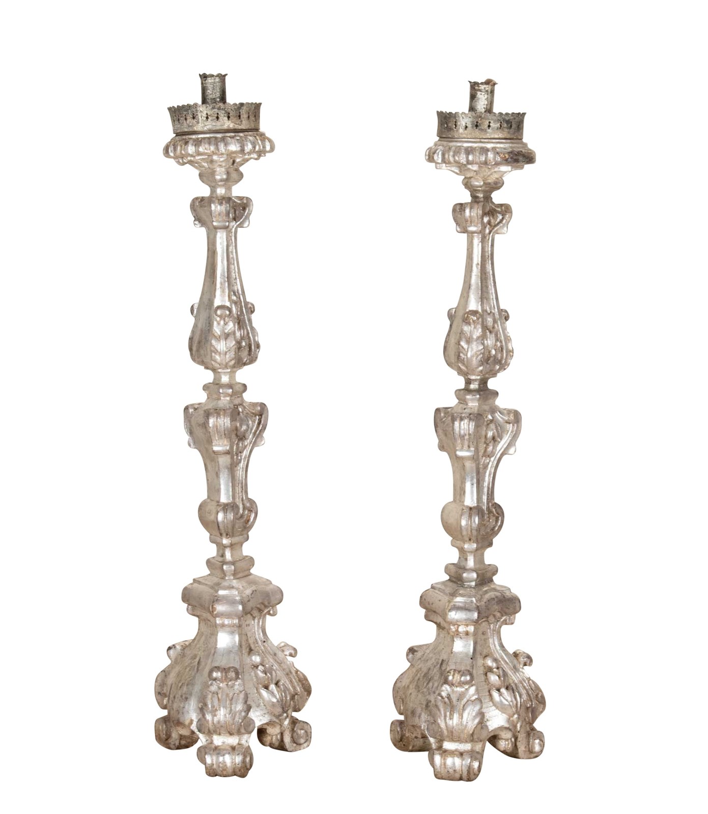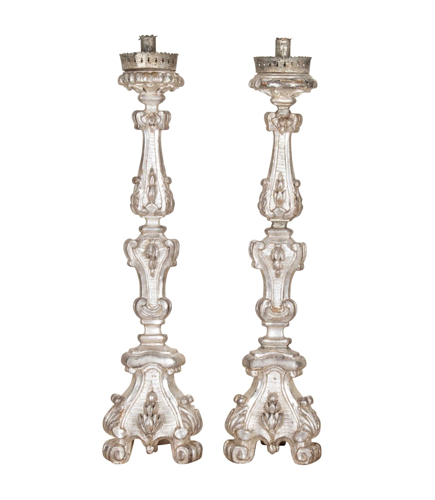 Pair of large late 19th Century Italian silver gilt carved wood candlesticks.