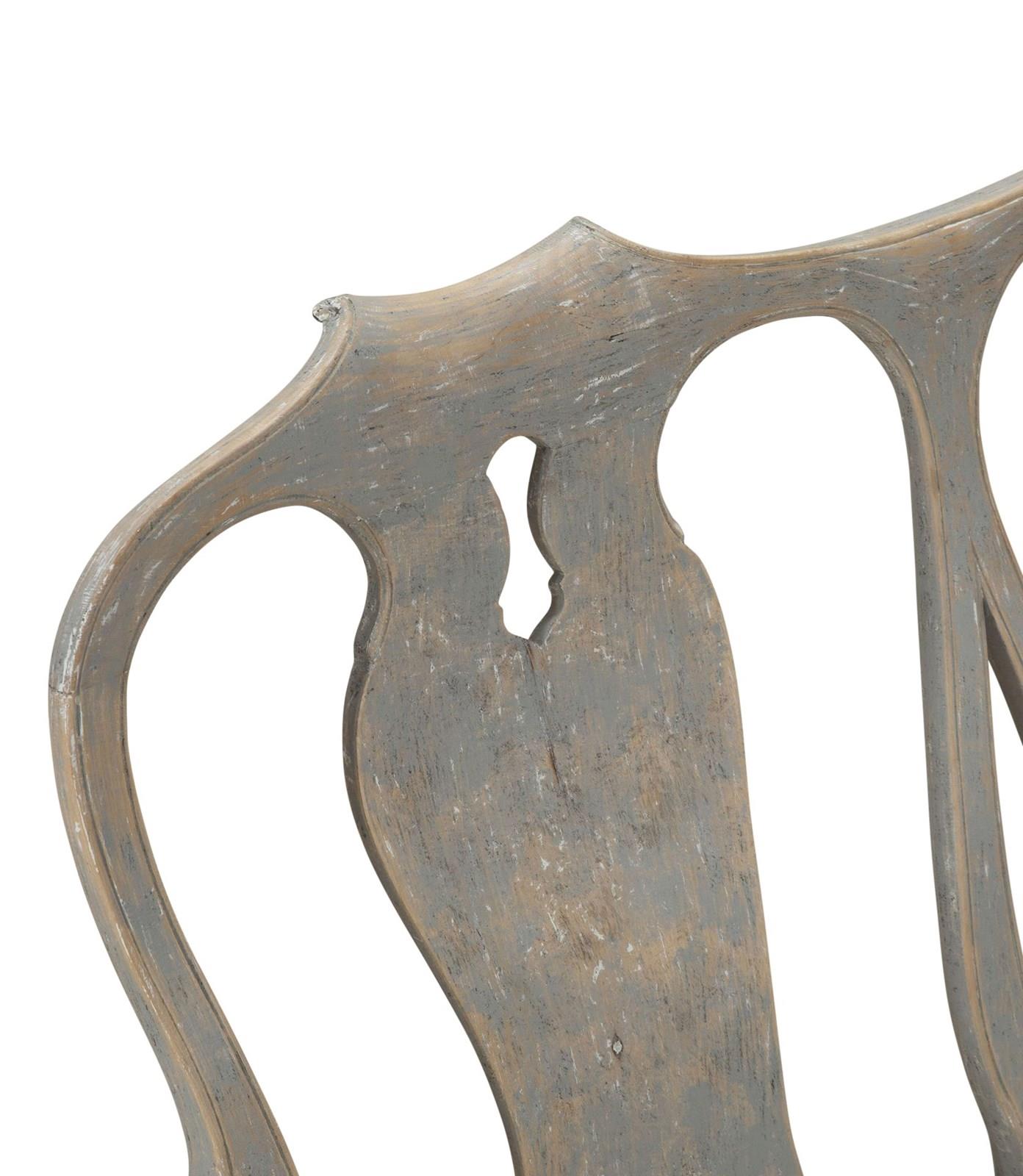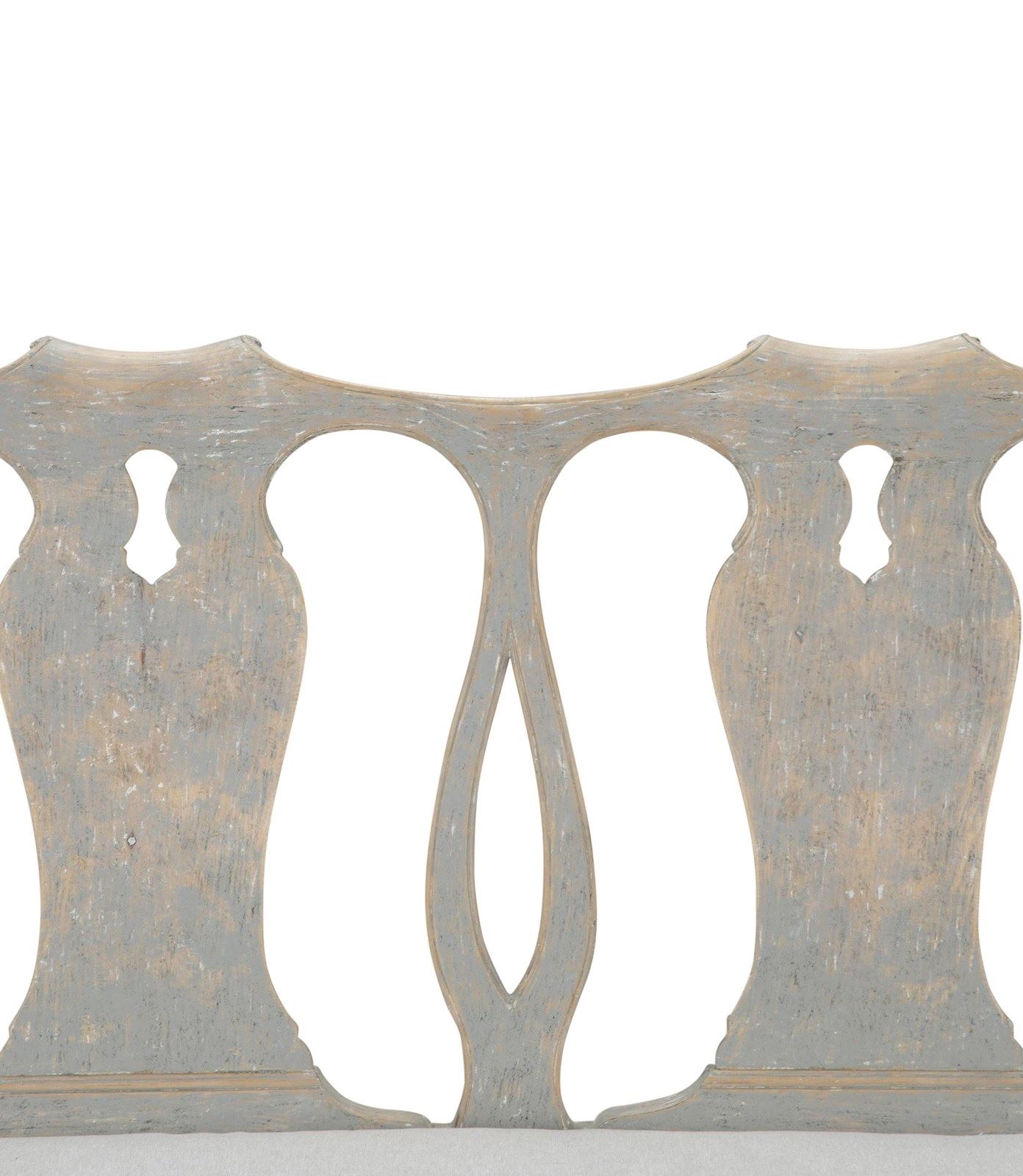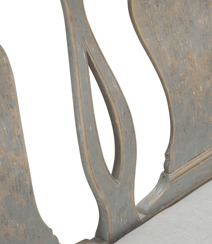 Decoratively carved, repainted in soft blue. Ideal size for those hard to fill spaces; the end of a bed, alcove or landing.