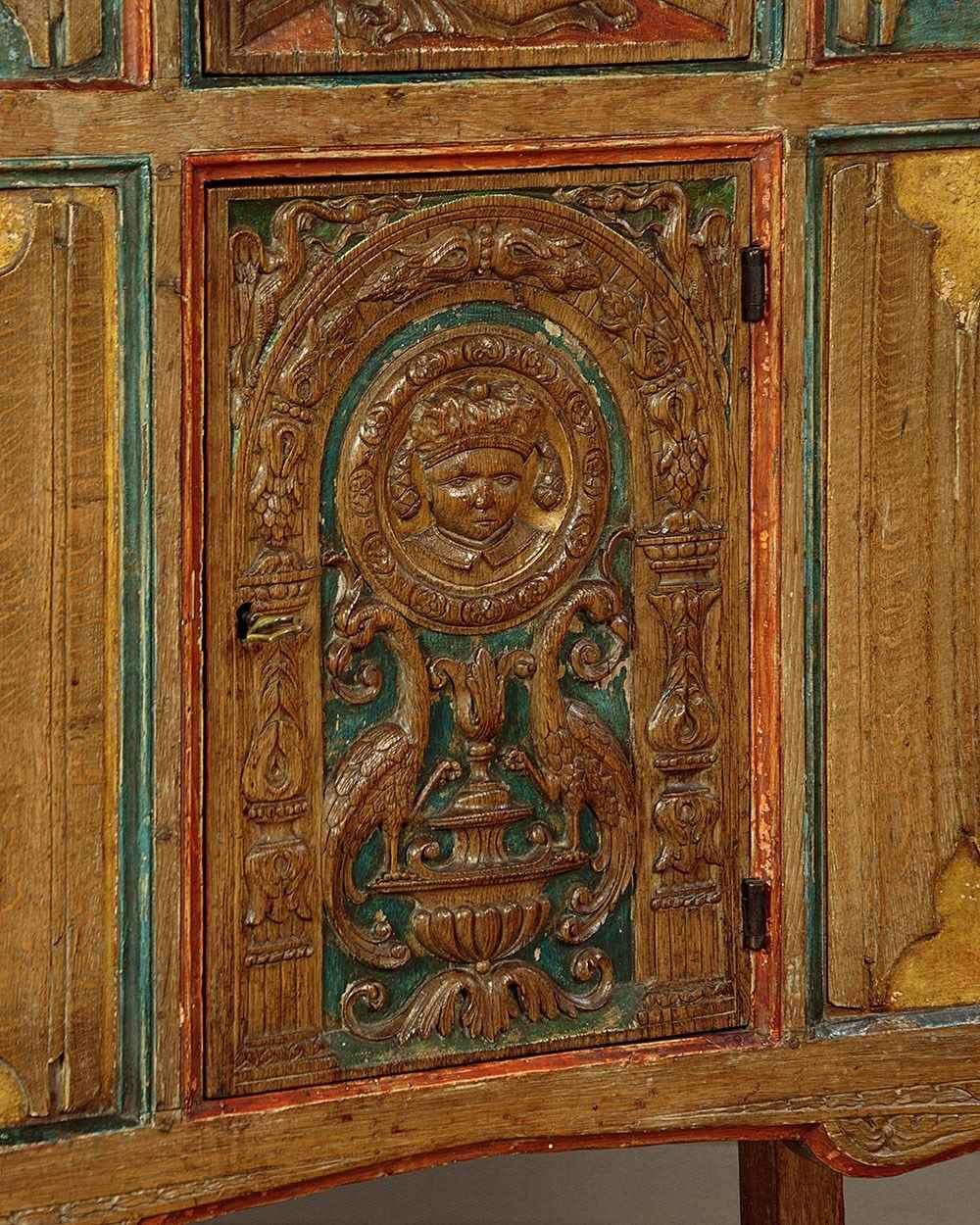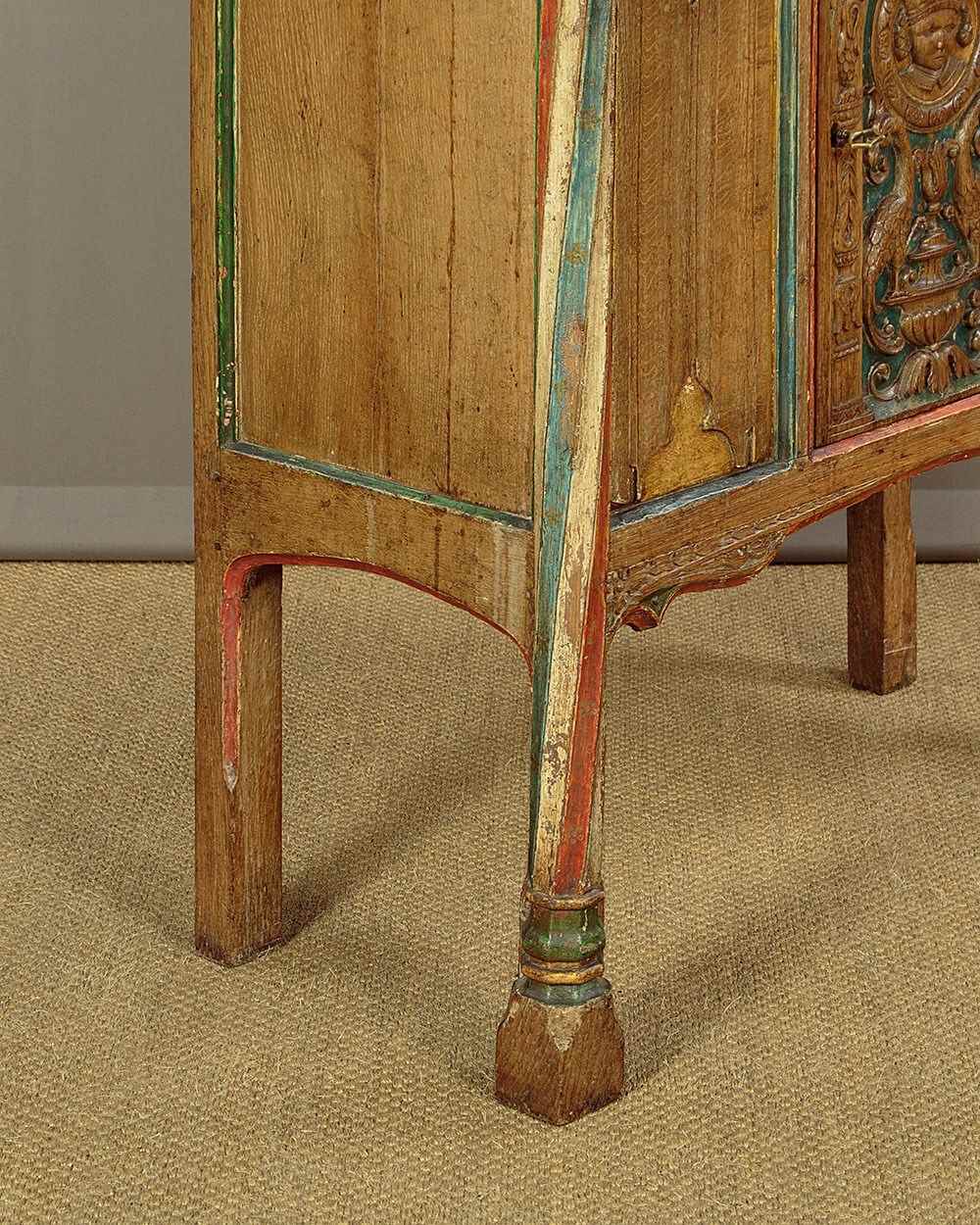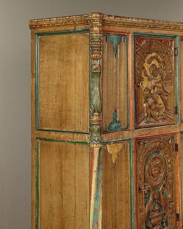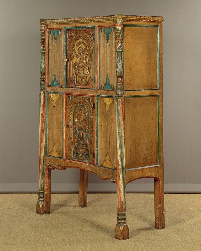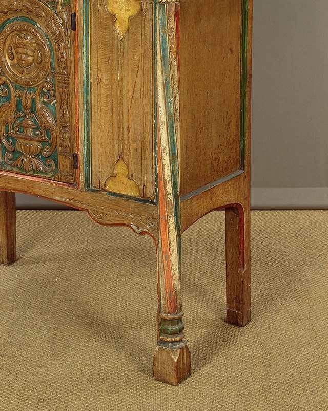 16Th.C Style Carved & Painted Livery Cupboard