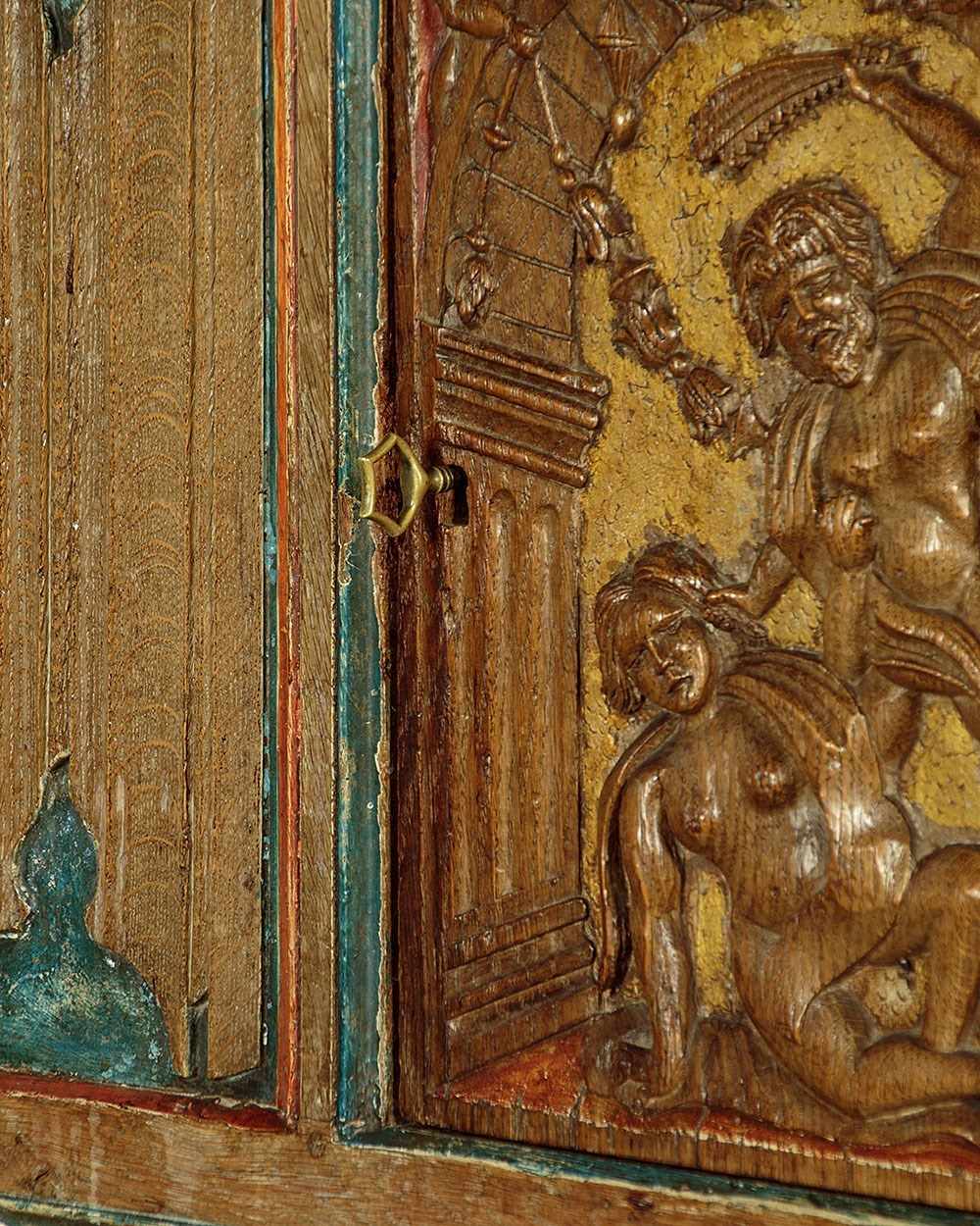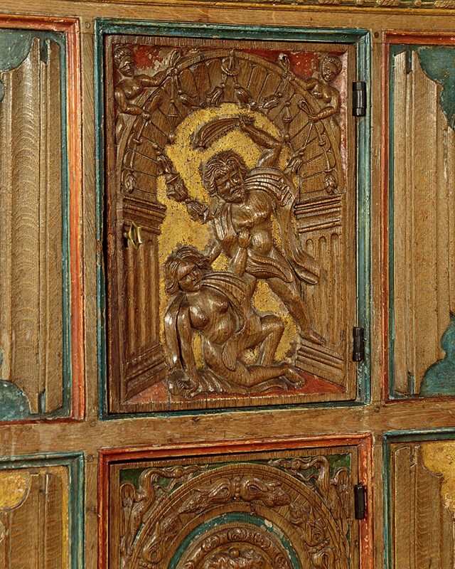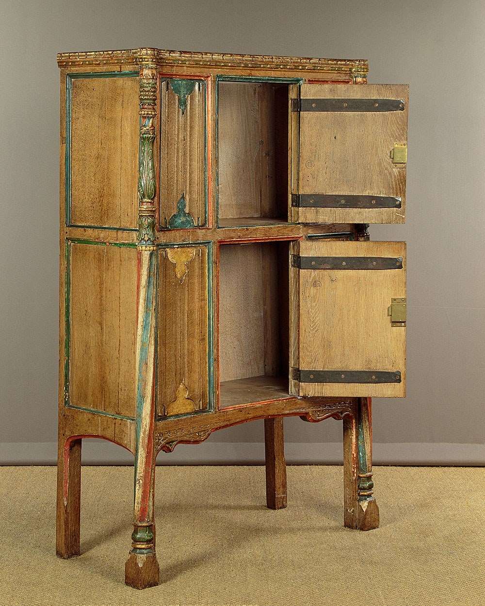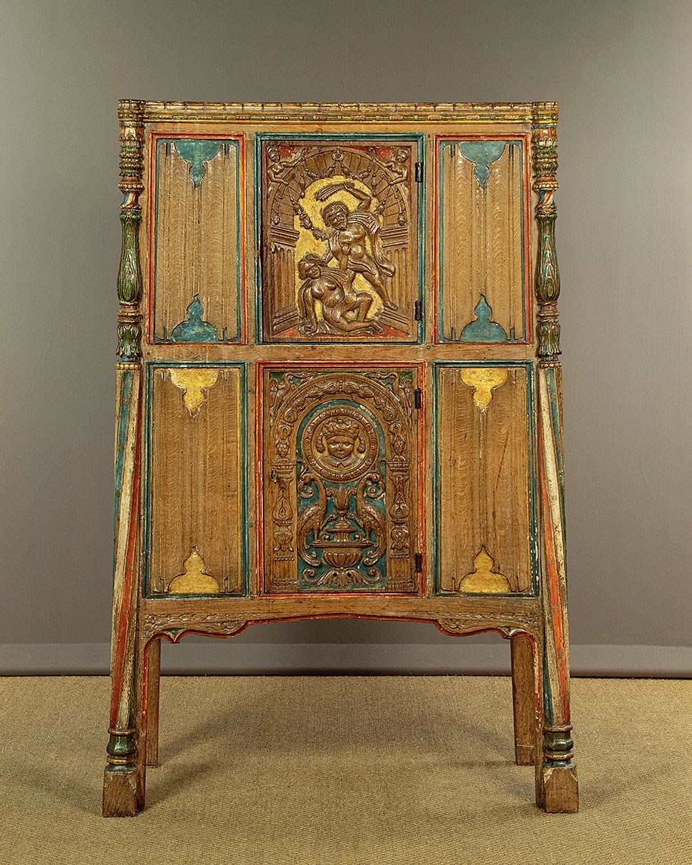 16Th.C Style Carved & Painted Livery Cupboard