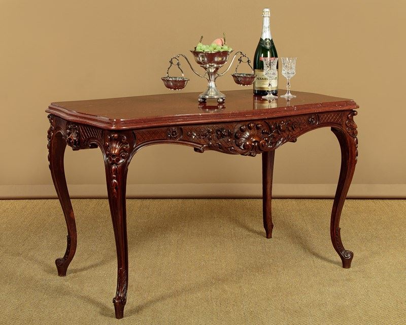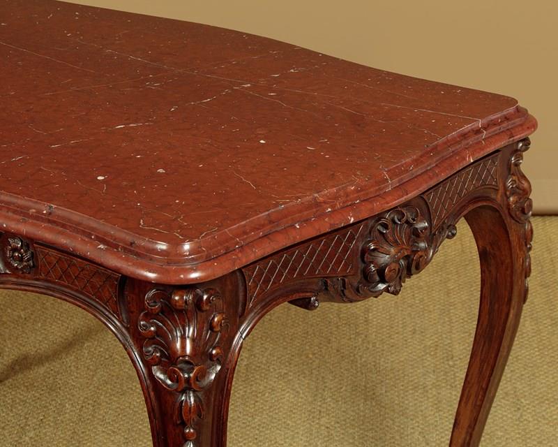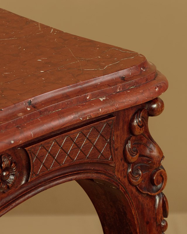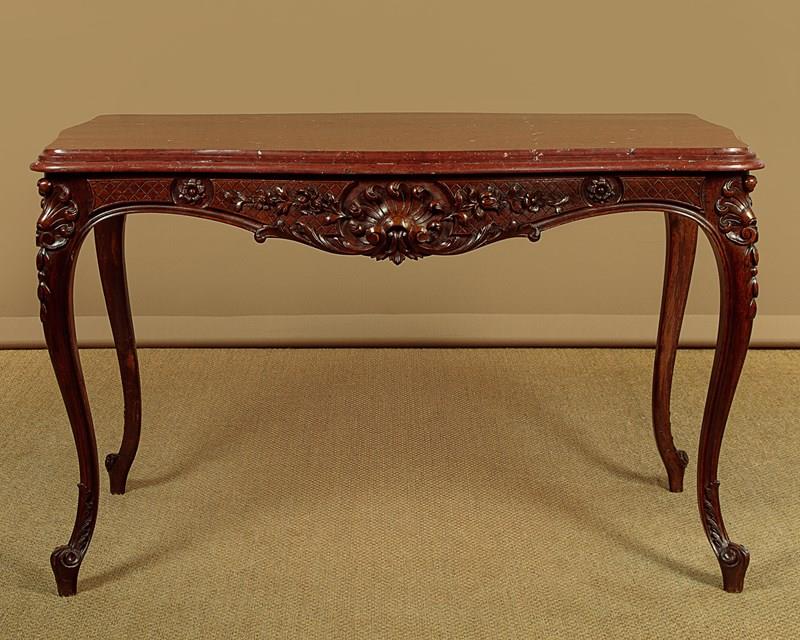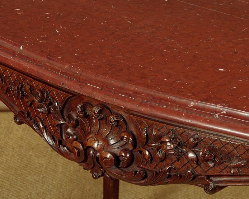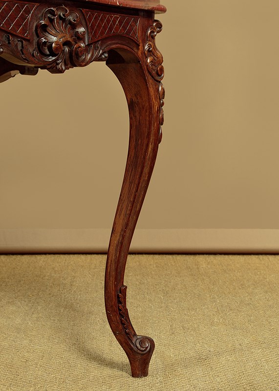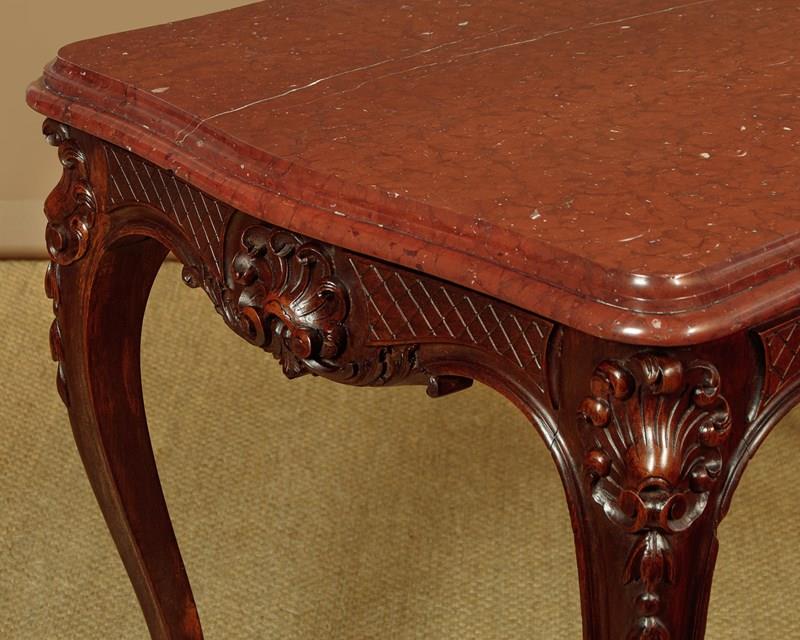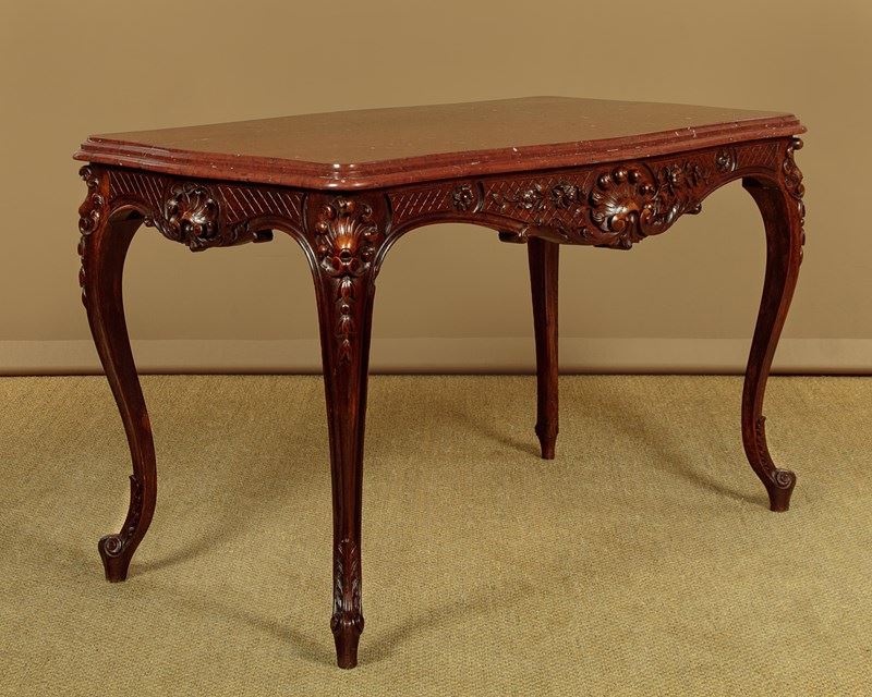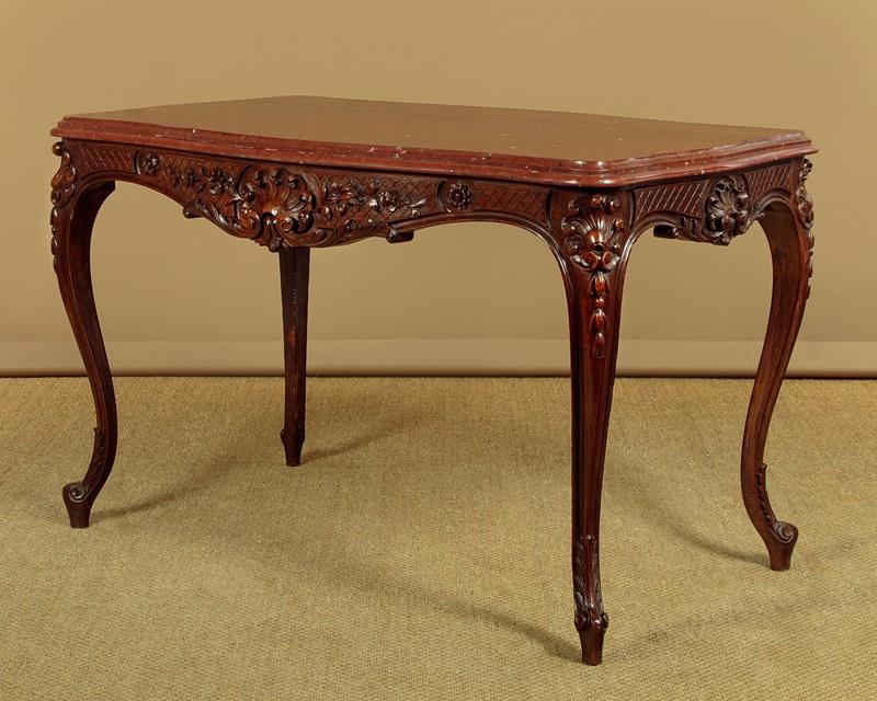 Carved Walnut & Rouge Marble Top Centre Table C.1890