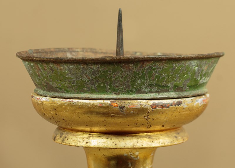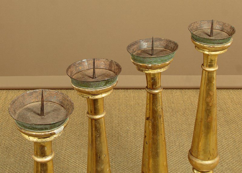 Four Large Giltwood & Toleware Candlesticks C.1810