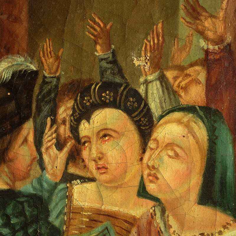 Blondel won a gold medal at the 1817 Louvre Salon exhibition for his original version of this painting which is now to be found in the collection of the Musée des Augustins in Toulouse.