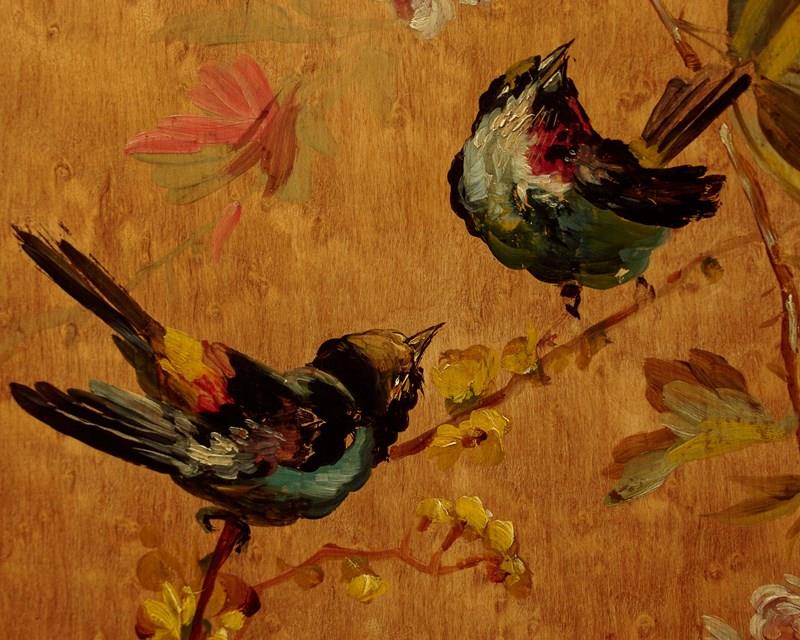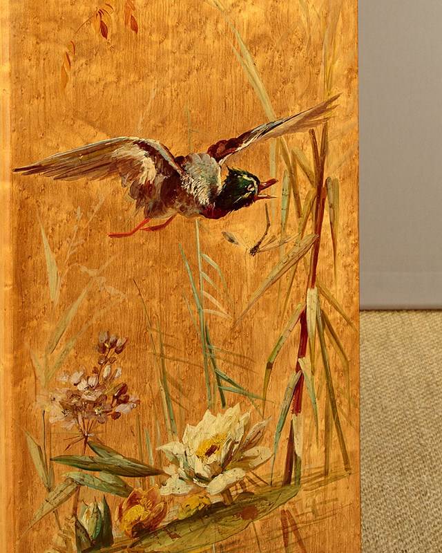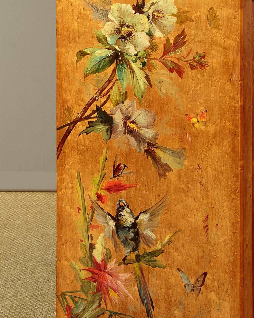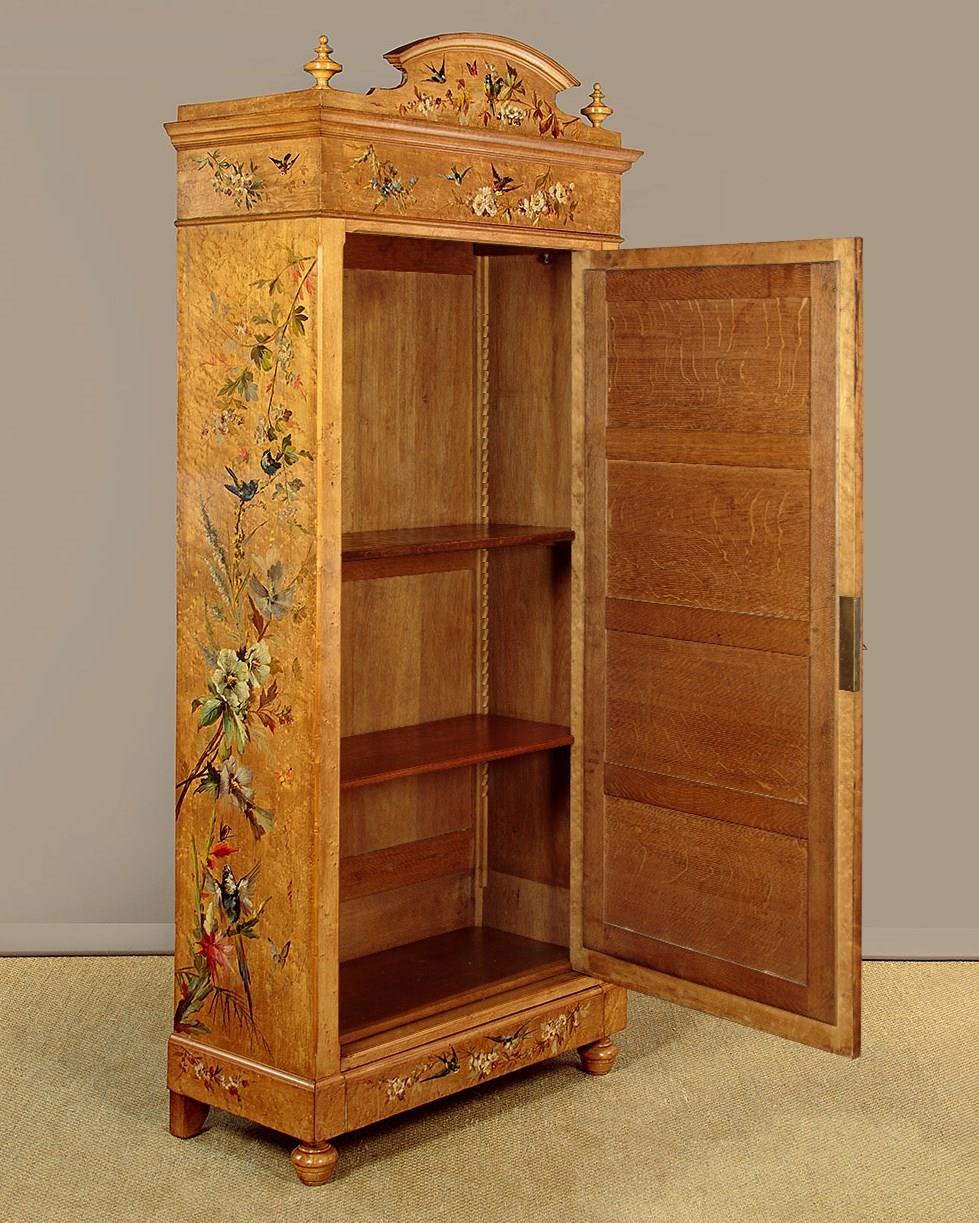 Maple Wardrobe With Painted Decoration Of Birds C.1890