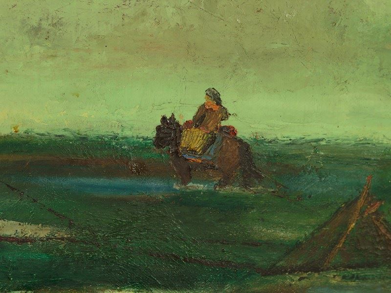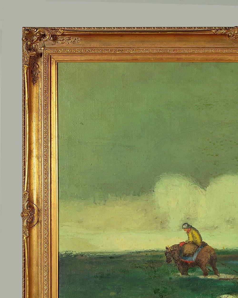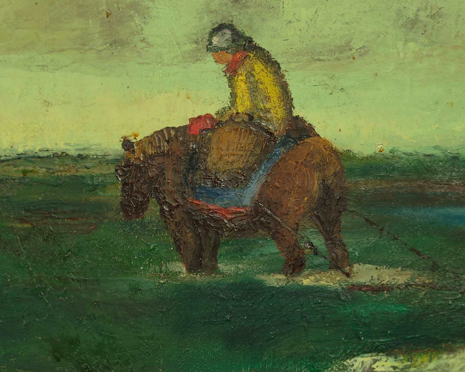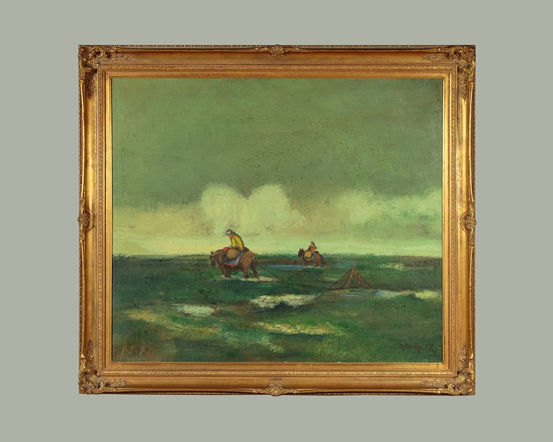 Oil Painting Of Shrimp Fishing On Horseback C.1970