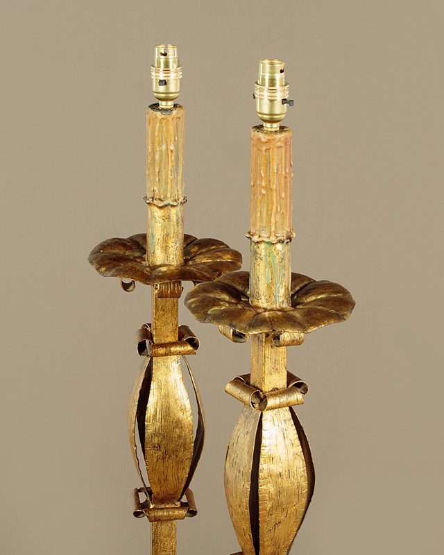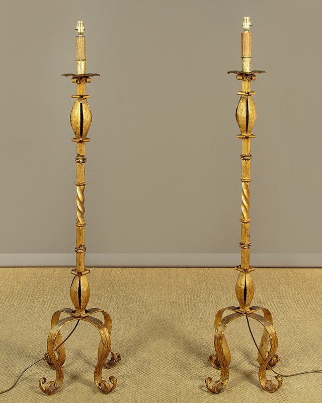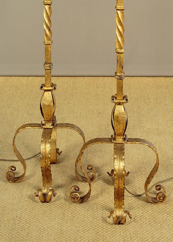 Pair Of Gilded Iron Standard Lamps C.1920