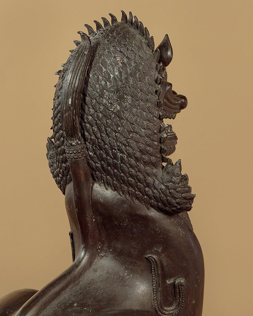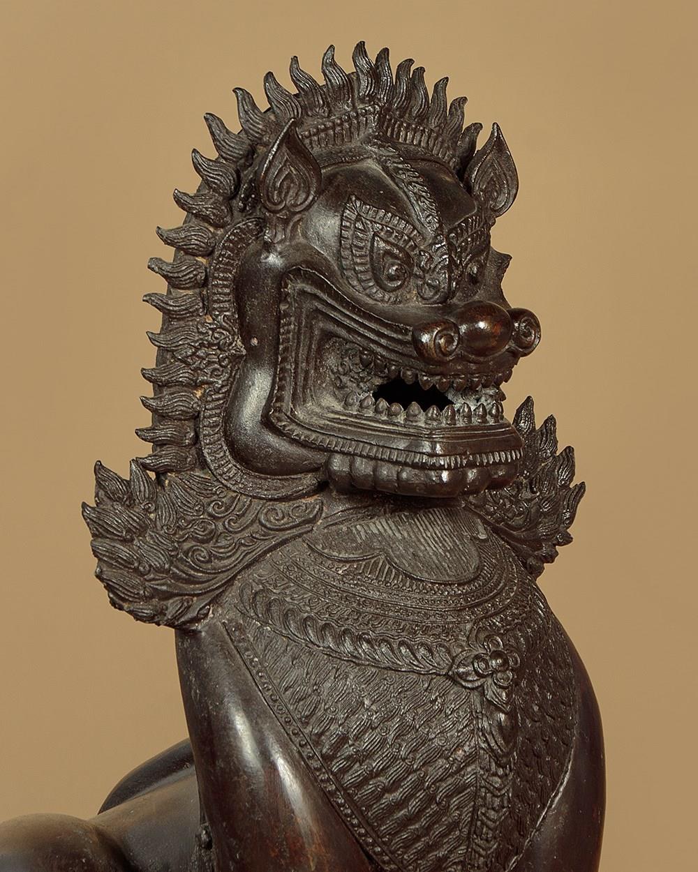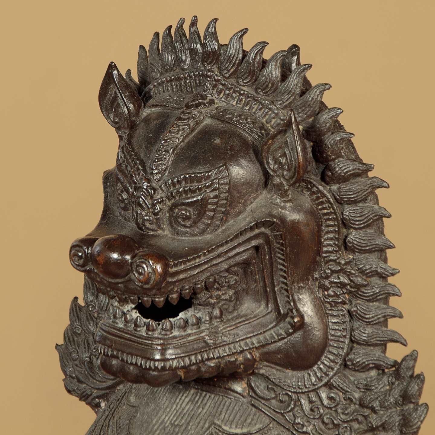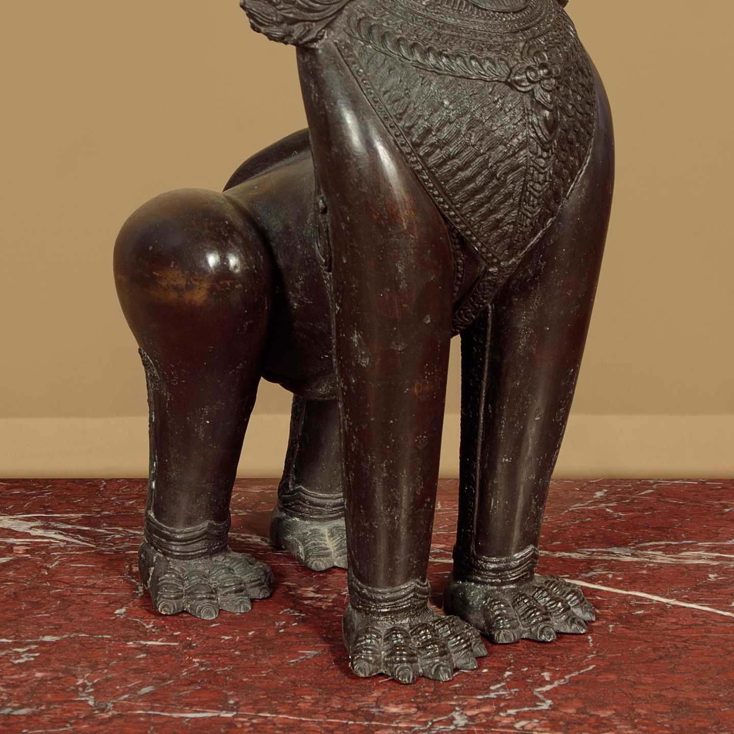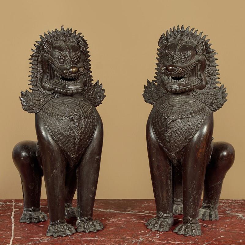 Superb pair of Bhuddist temple Singha or guardian lions, probably Thai, early 20th.c. Good large size and very well cast in bronze with excellent detail to the faces and mane. Very good condition.