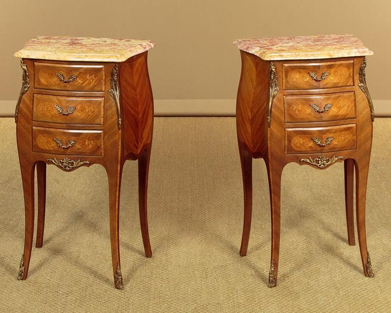 Pair Of Louis XV Style Marble Top Bedside Drawers C.1960