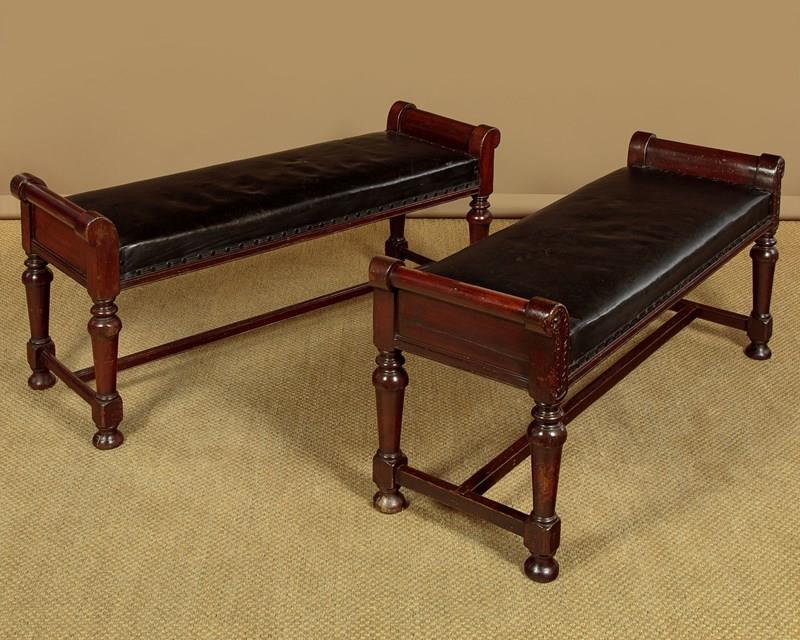 Pair Of Mahogany & Leather Benches C.1880