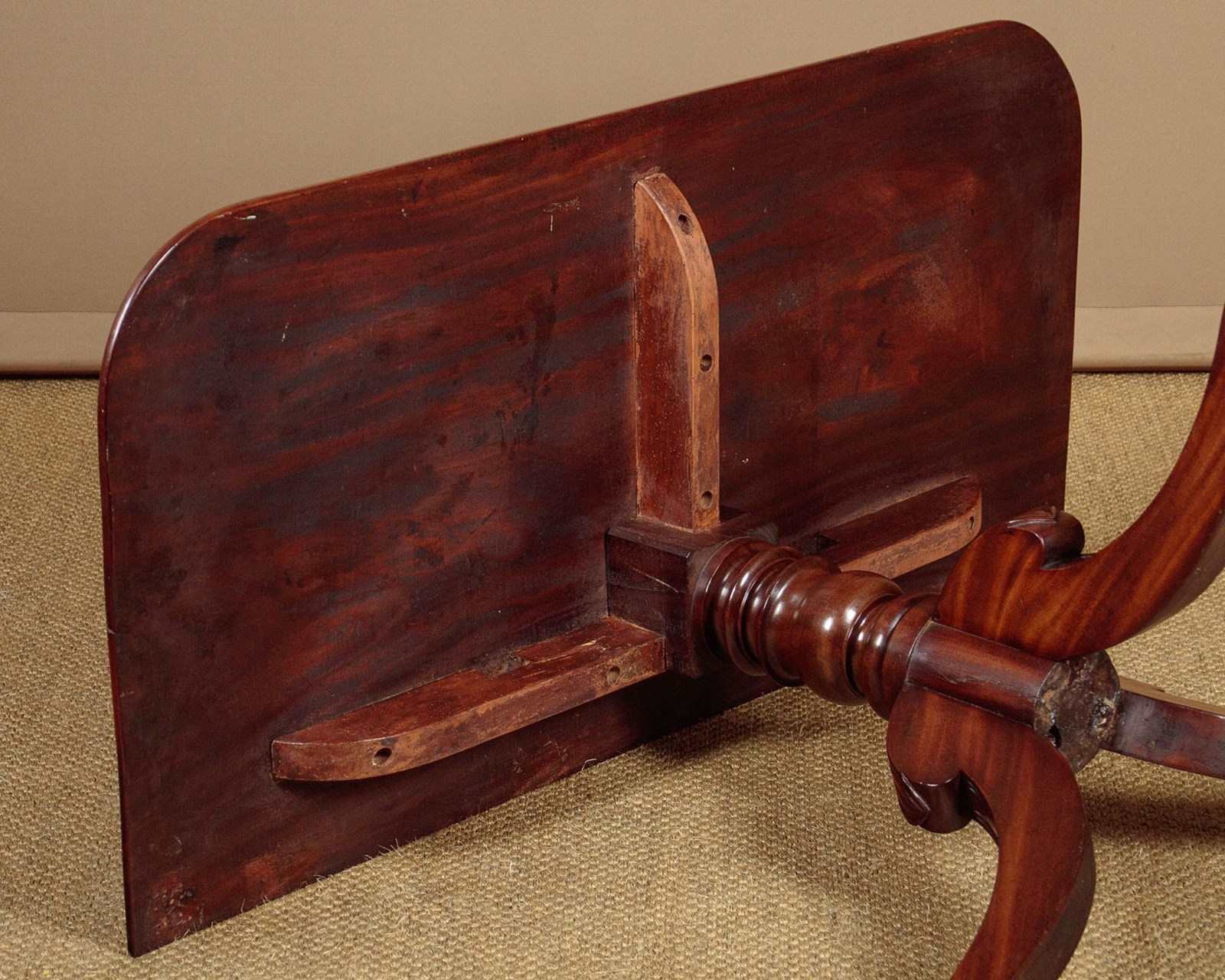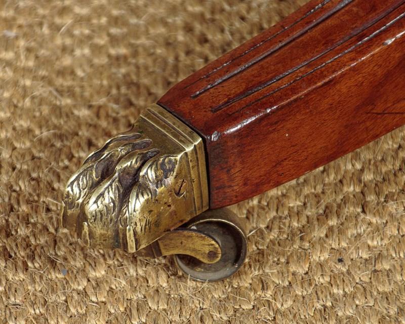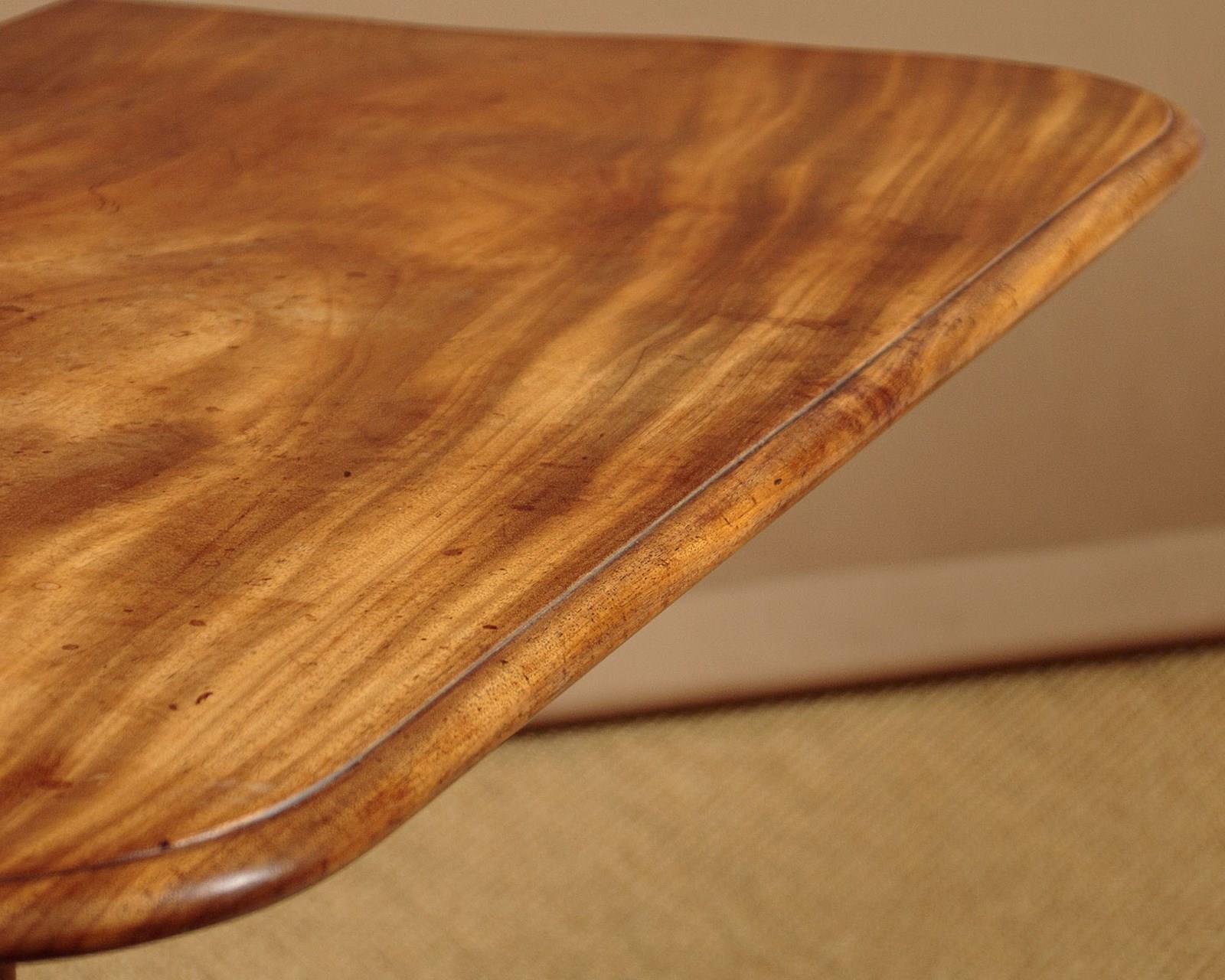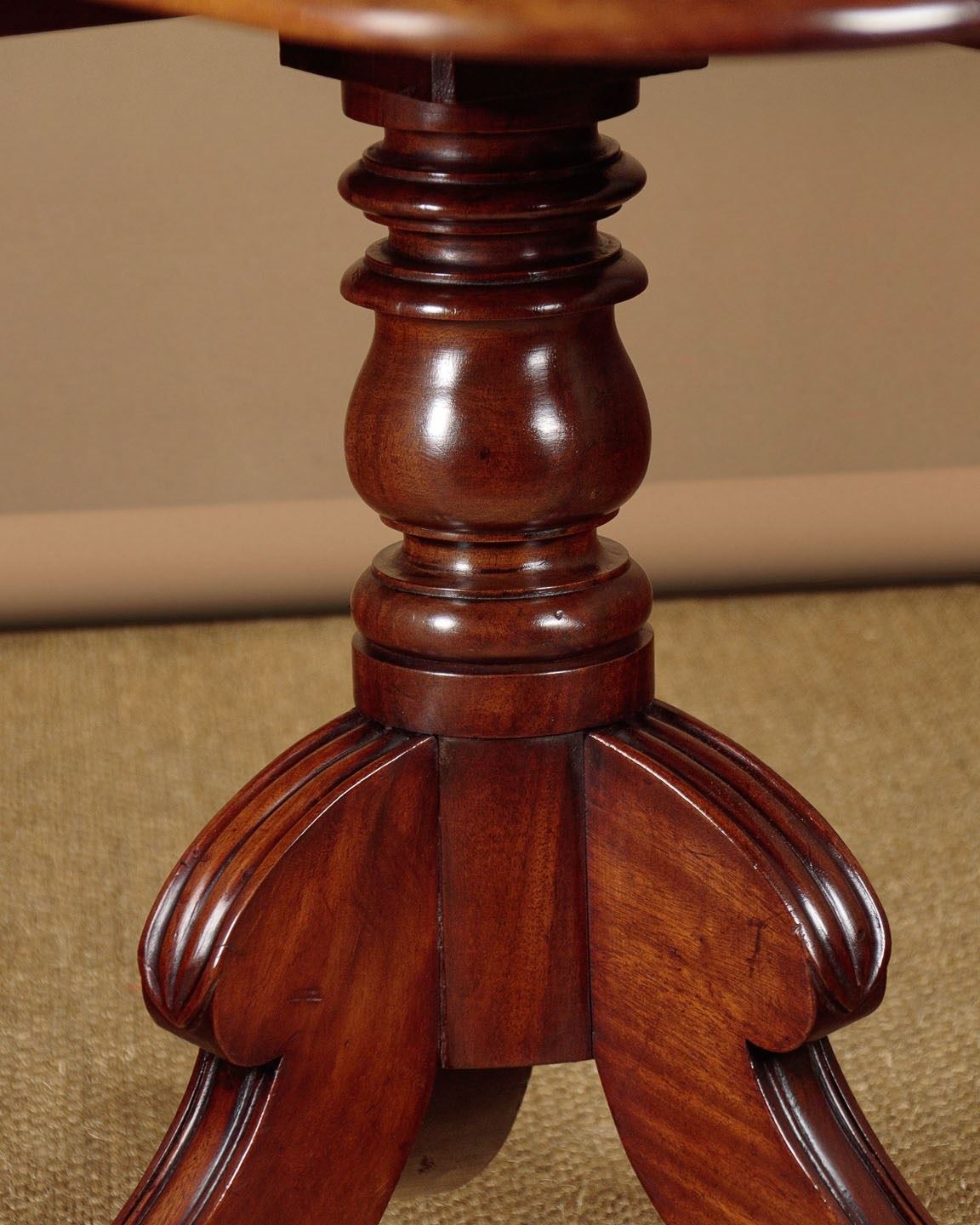 Good pair of Regency mahogany side tables c.1820. 48" x 24" single piece solid mahogany tops of good grain with rounded front corners and moulded edges. Raised on crisp turned columns and shapely tripod legs with moulded detail and brass claw feet and castors. Some old marks to the tops, otherwise very good condition and attractive colour. Cleaned and waxed in our workshops.