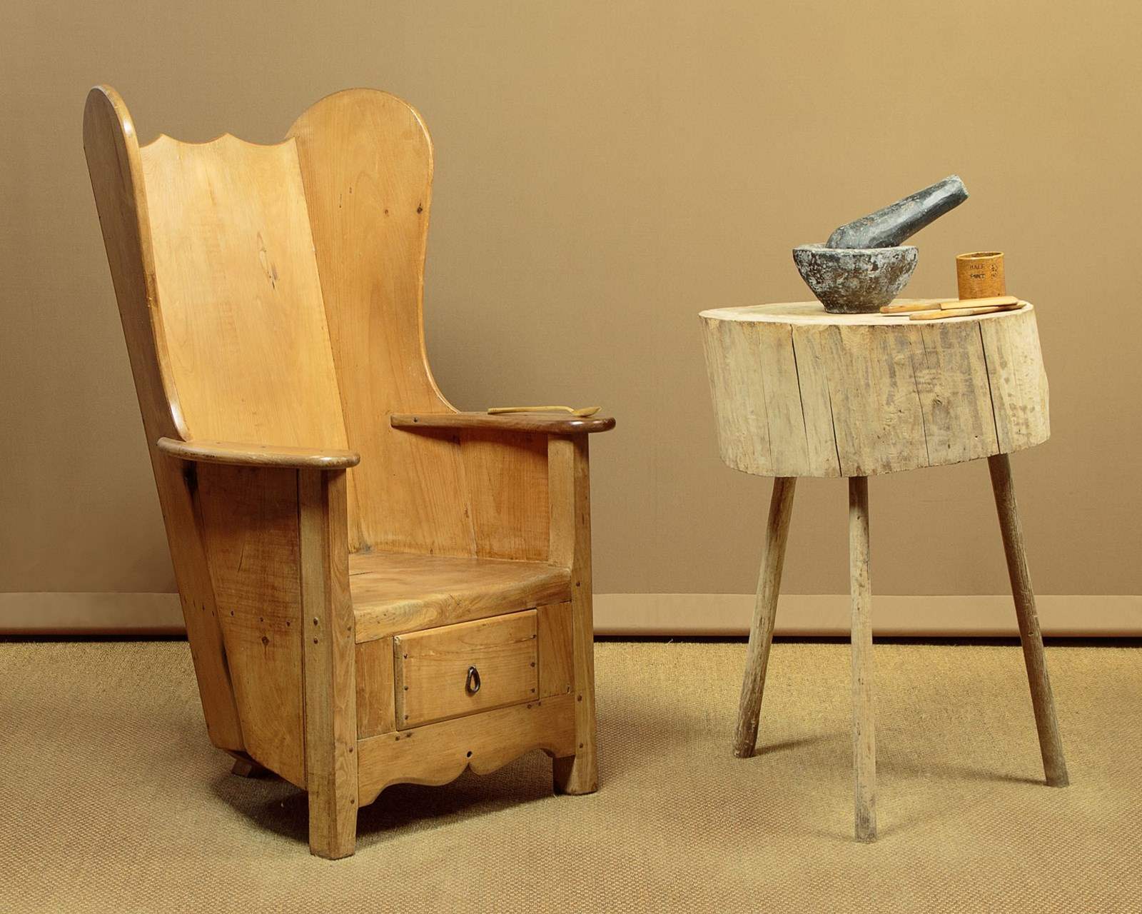 Primitive Elm Stick Leg Chopping Block Side Table