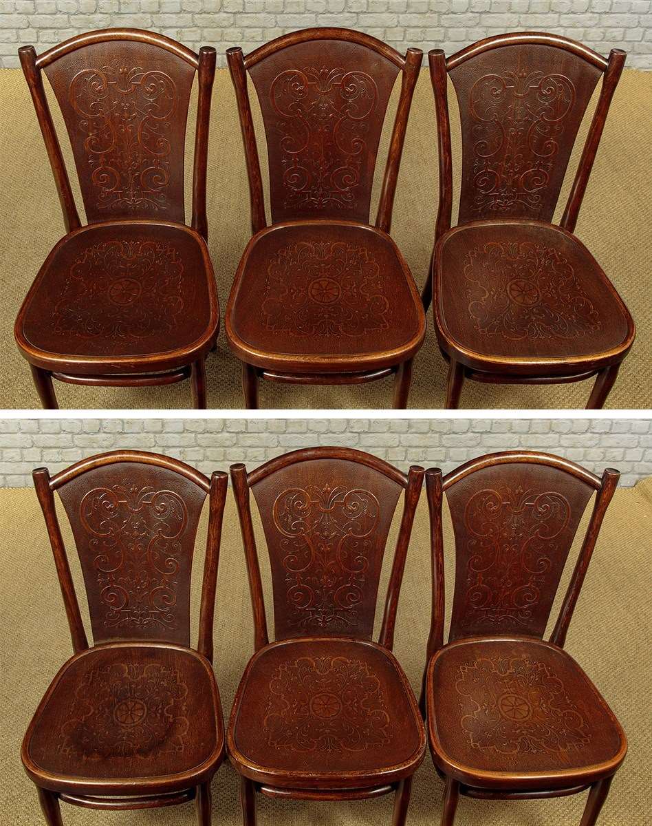 Set Of Six Bentwood Bistro Dining Chairs By Thonet C.1900