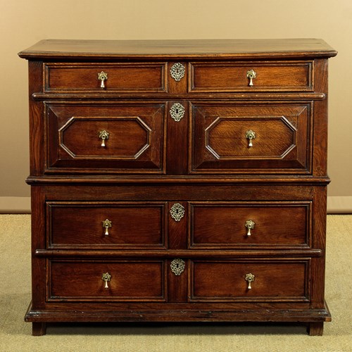 Unusual George III chest of drawers being in elm c.1820. A charming piece of Georgian country furniture and useful small size, just 37" wide. Elm top with an applied edge over four drawers of graduated height. Solid elm drawer fronts of particularly attractive grain with moulded edges and period brass handles and escutcheons. Raised on shaped bracket feet at the front. Single piece pine sides with a shaped detail at the bottom to form the feet. Some old wear, generally very good condition and lovely honey coloured timber. Cleaned and waxed in our workshops.
