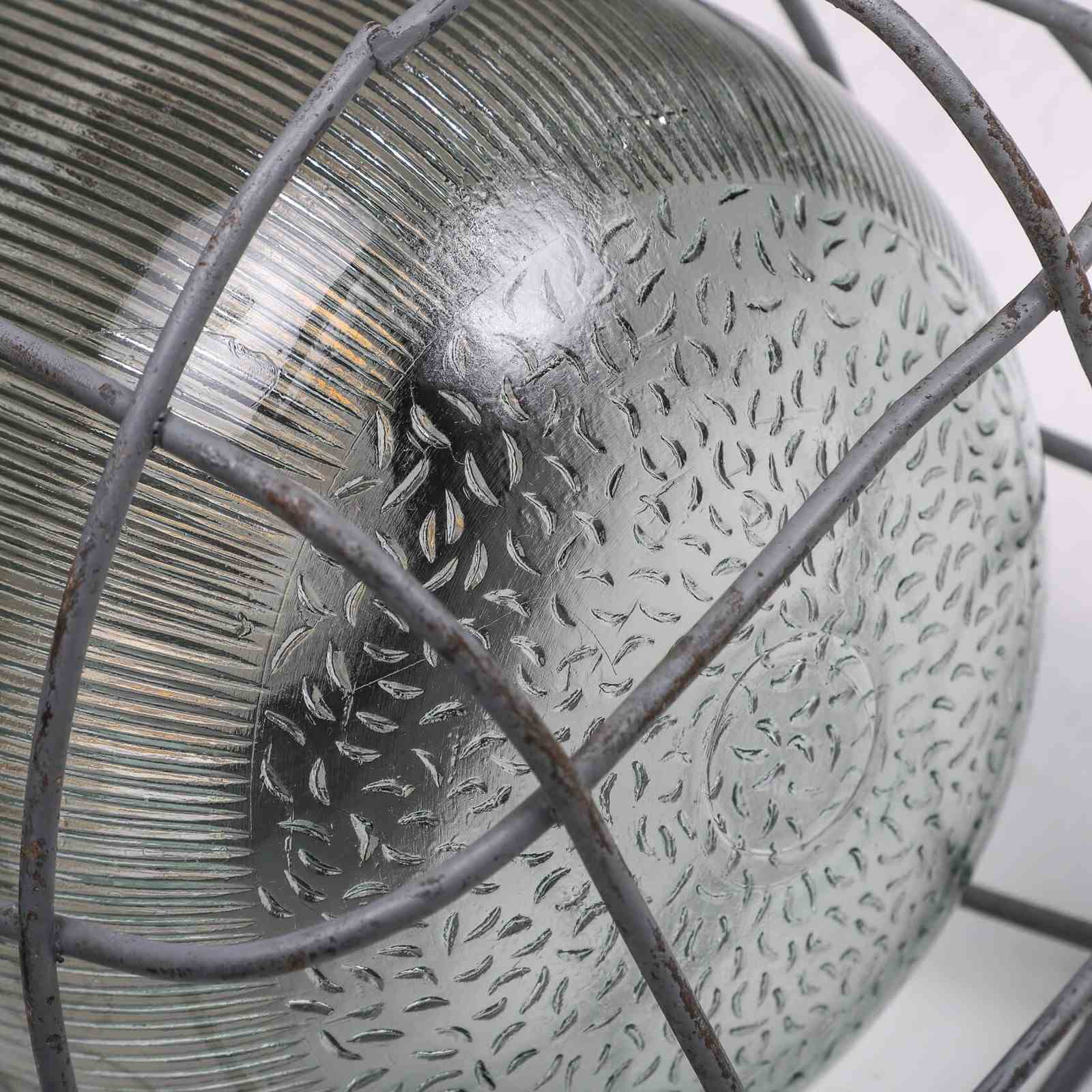 Caged industrial pendant light.