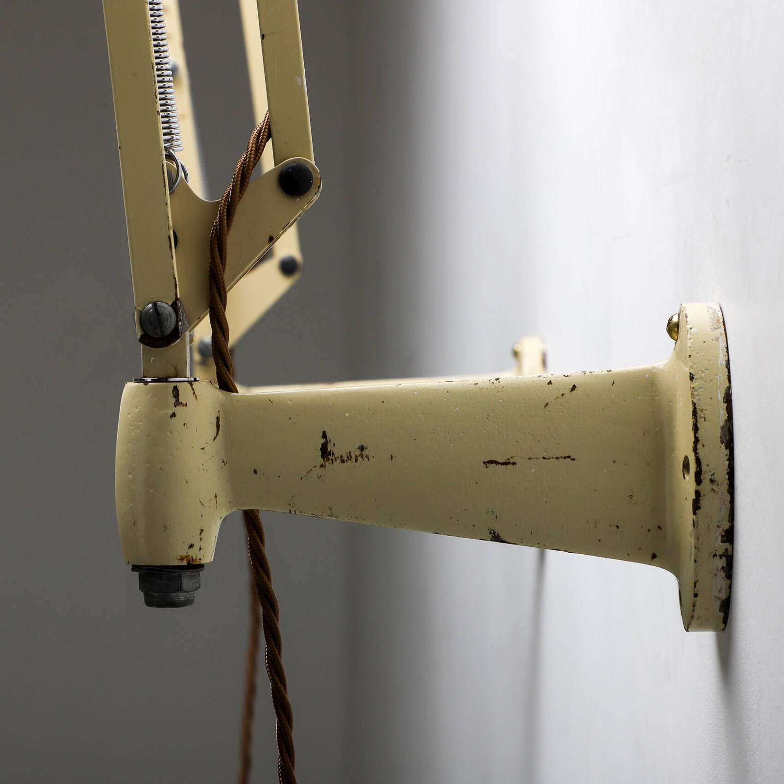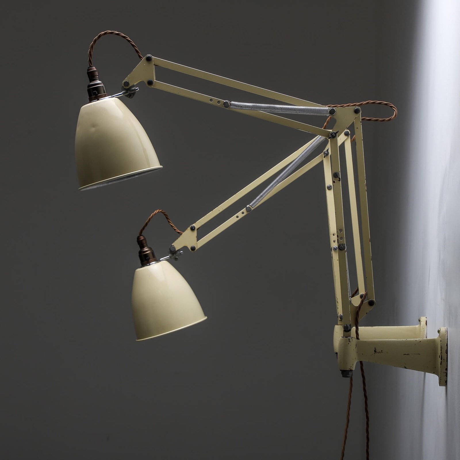 The wall version having a solid cast base allowing full rotation of the light from left to right with fully articulated arms.