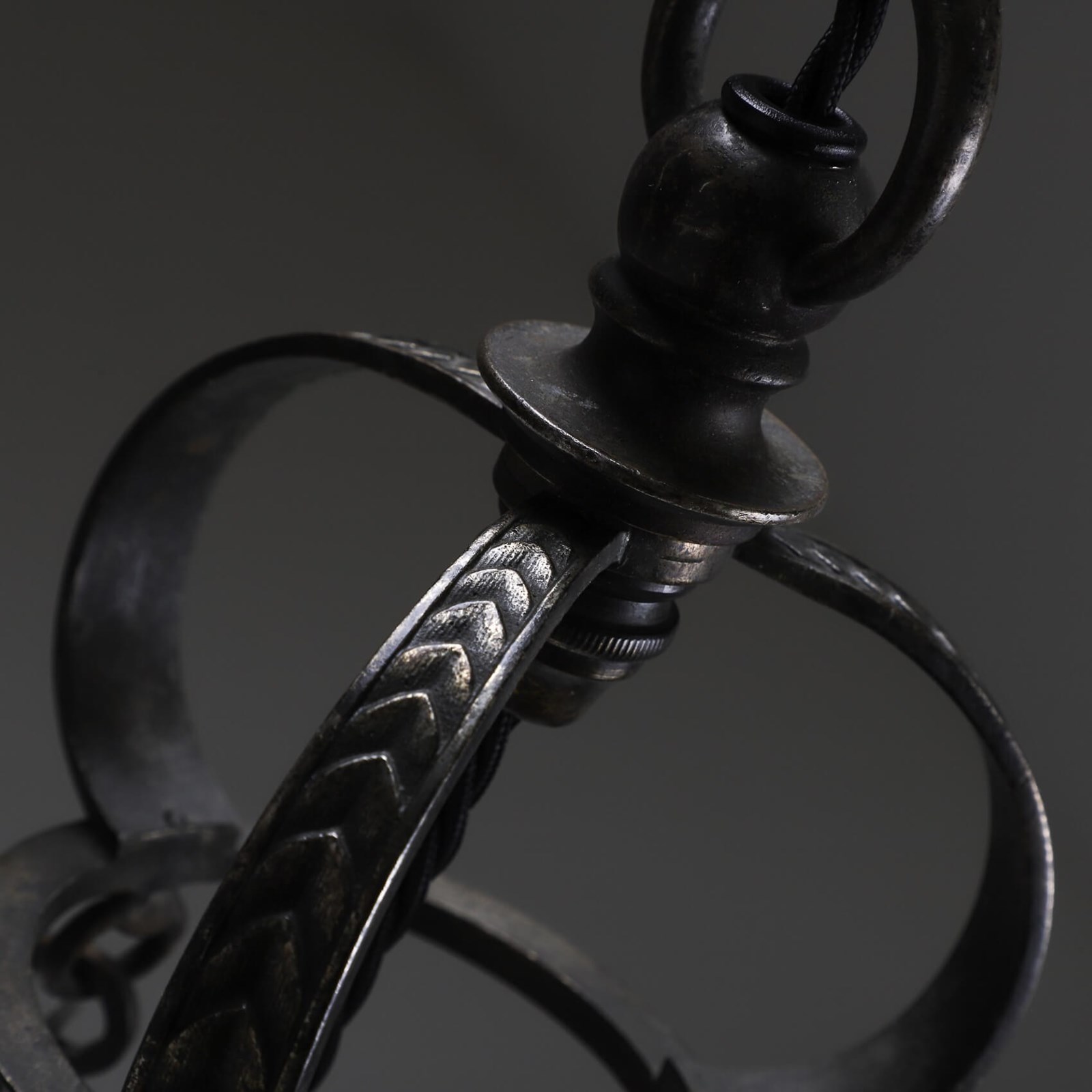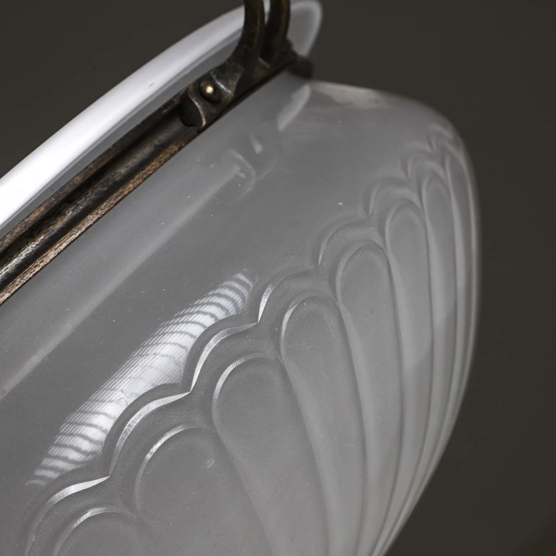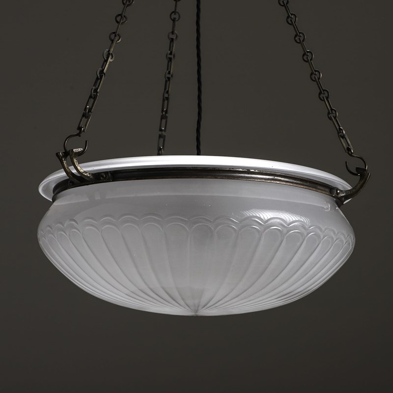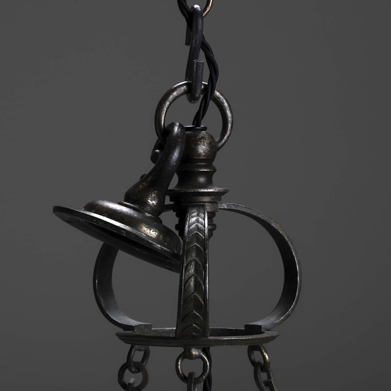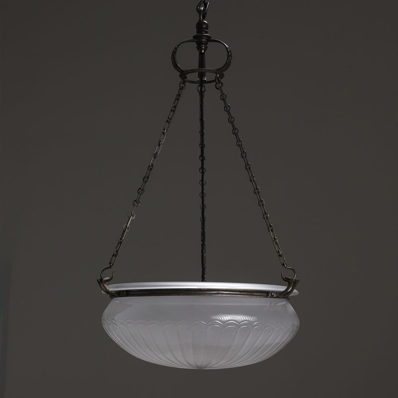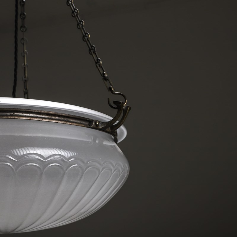 Original aged brass ring with matching three hook hanger & ceiling hook – stamped with makers mark.