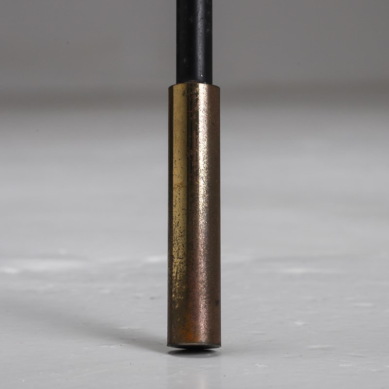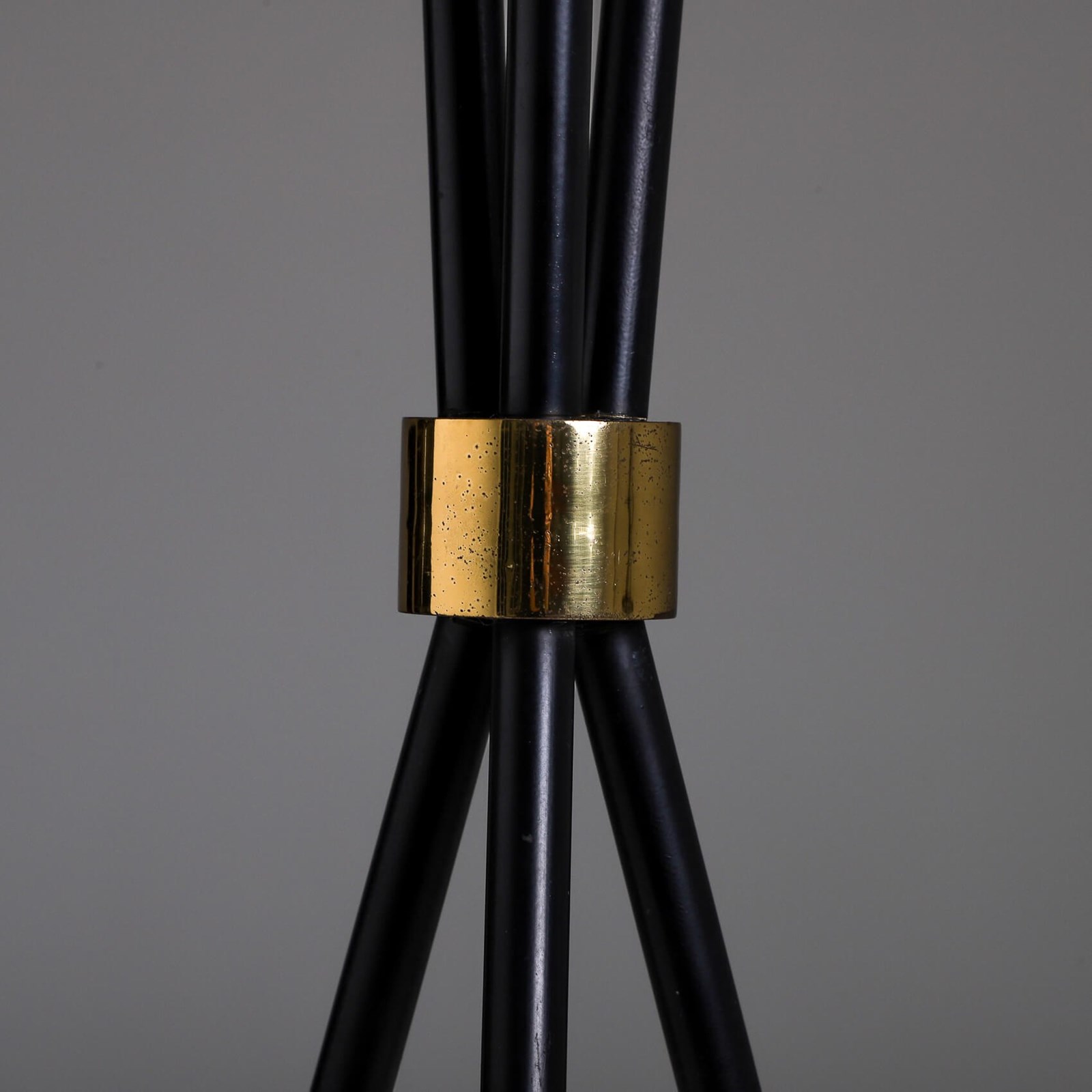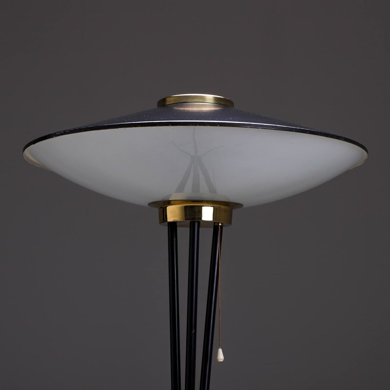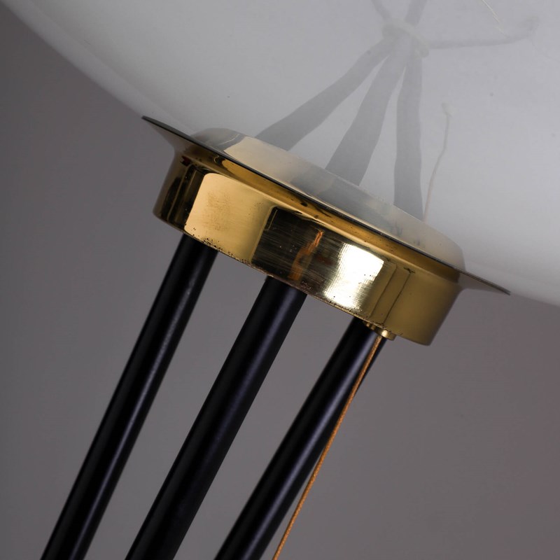 A striking black and brass floor lamp by Stilnovo, showcasing timeless mid-century Italian style.