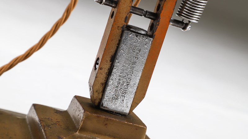 First produced for a limited time by Herbert Terry & Sons, this beauty of a desk lamp features a solid cast three tier base, slim profile shade & earthing point to the rear of the folk block.