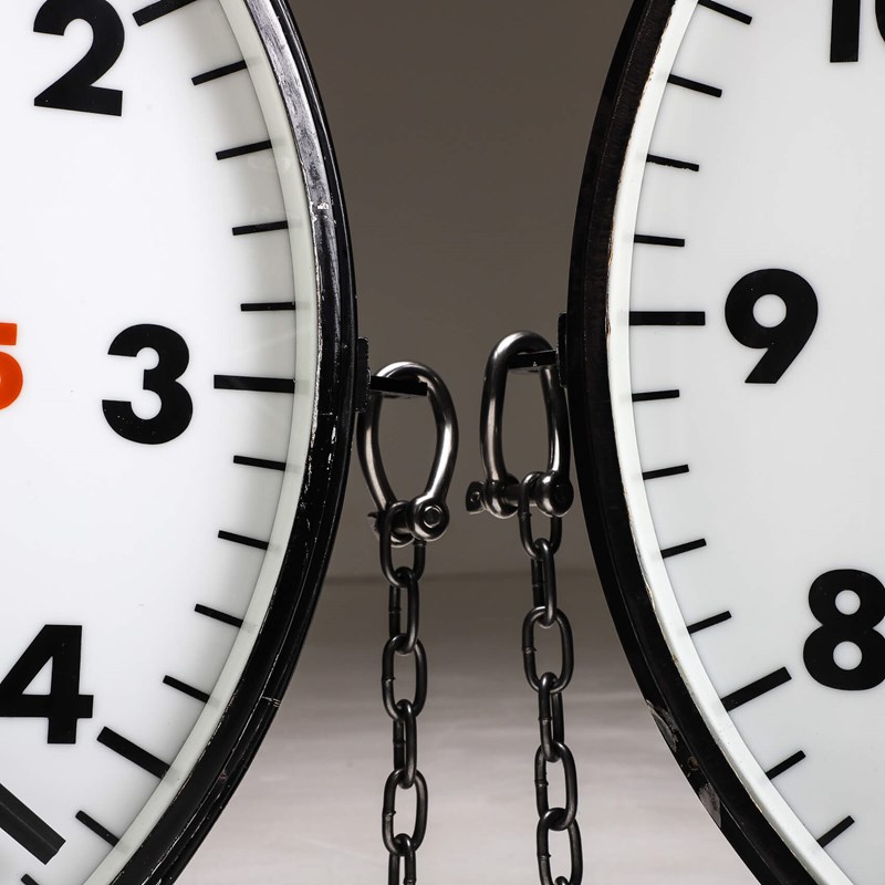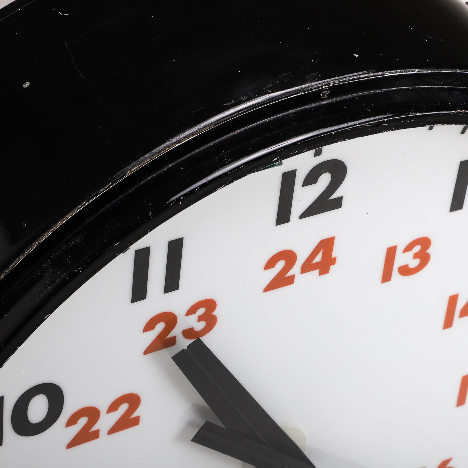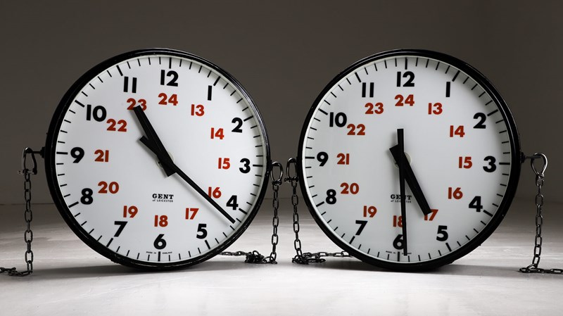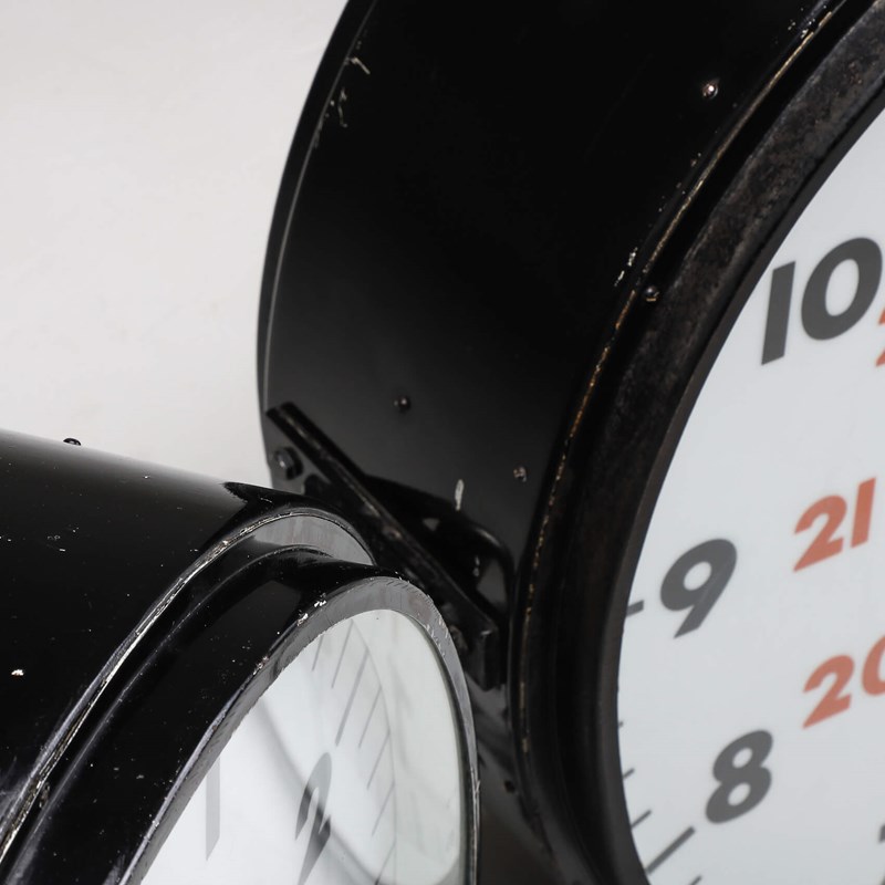 The clocks are complete with their original movements, hands & glass. Both dials in a great condition each depicting both 12 & 24 hour time.