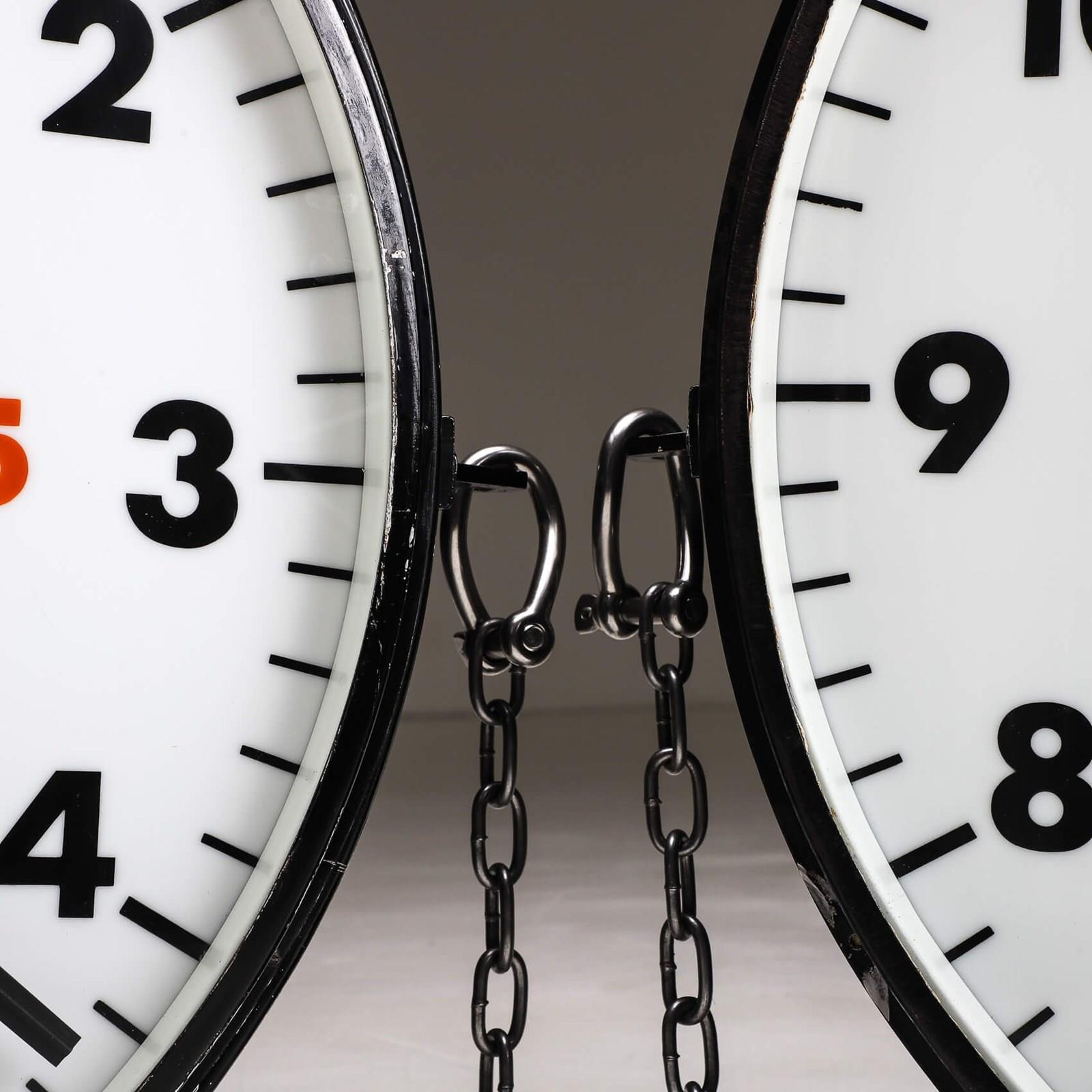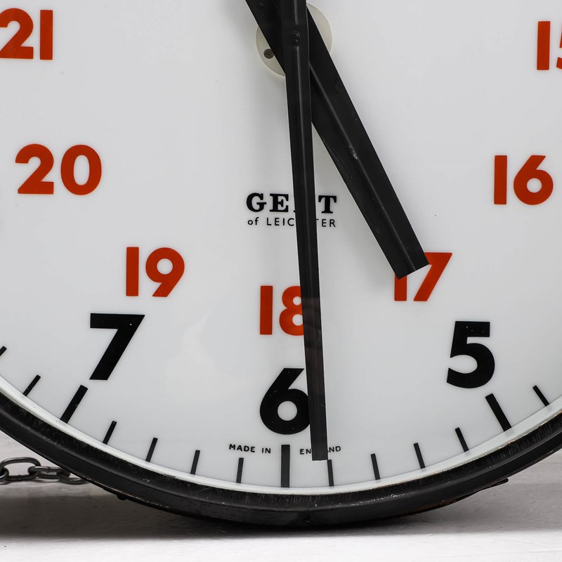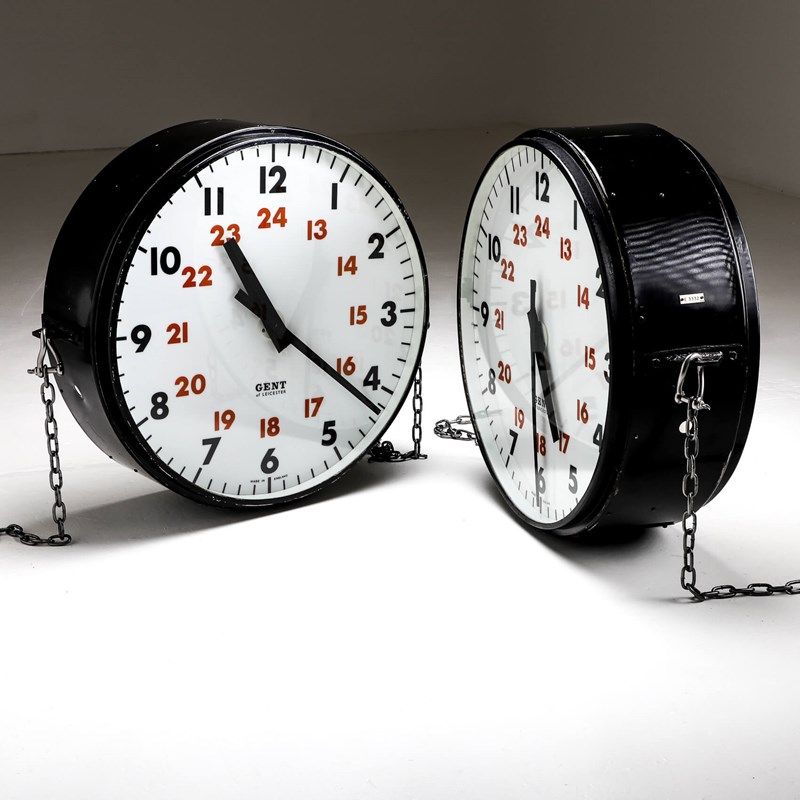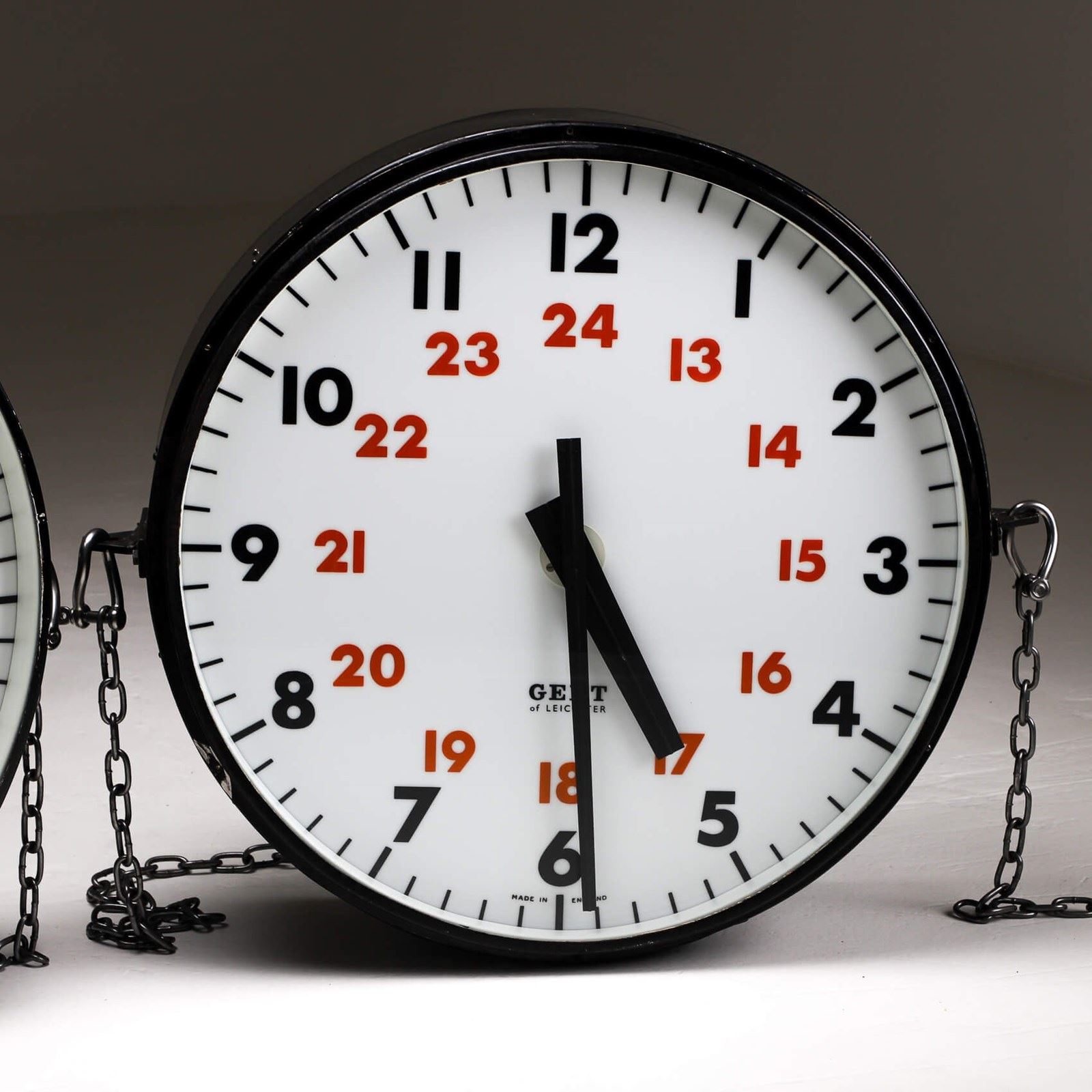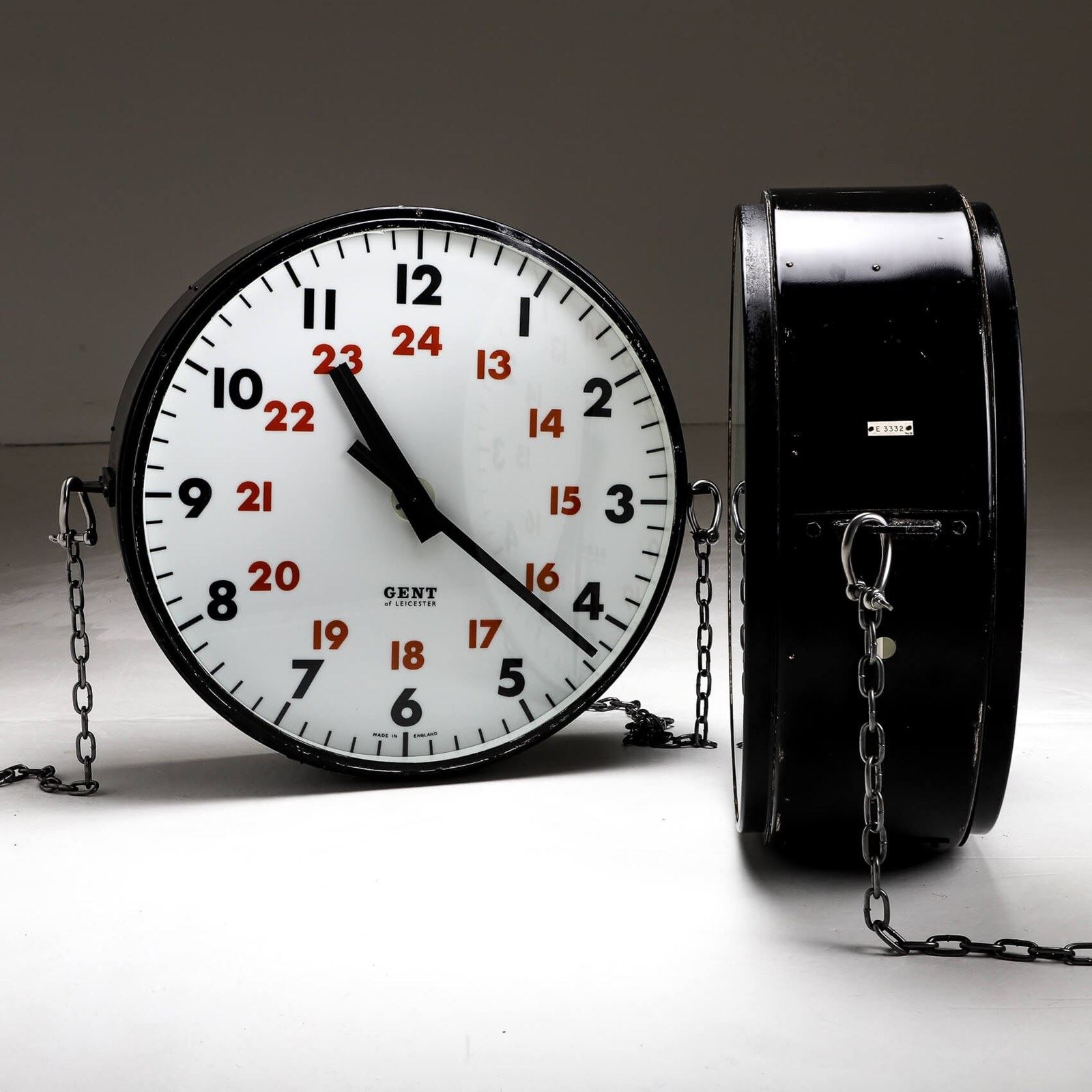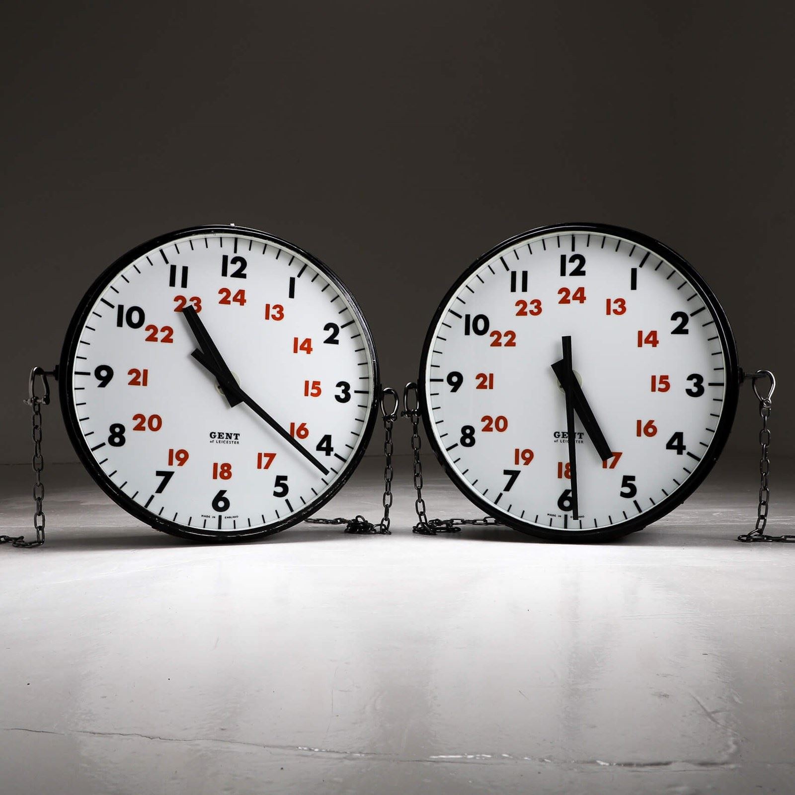 Pair Of Large Double Sided Illuminated Gents Of Leicester Station Clocks