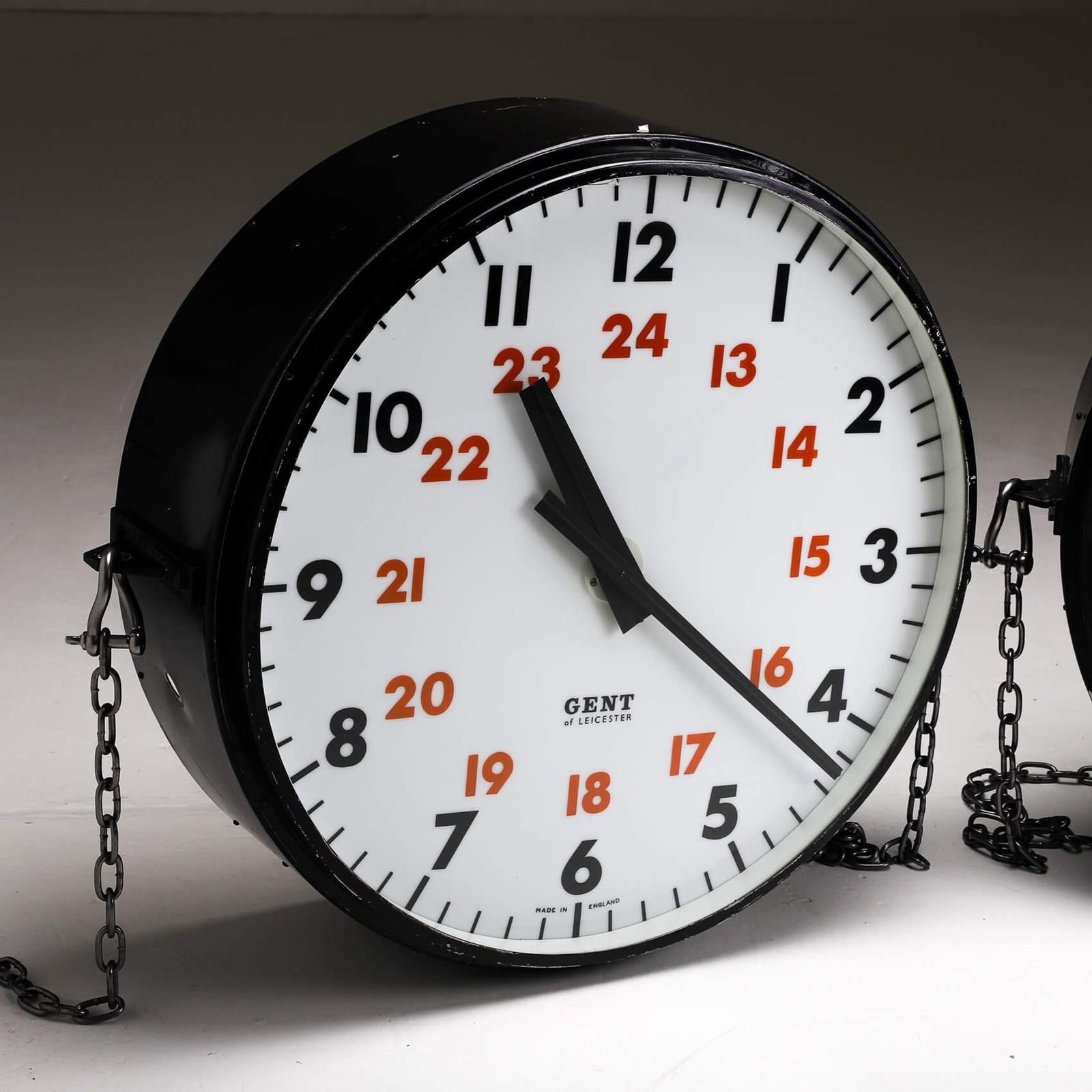 Pair of large Gents of Leicester illuminated double sided station clocks.