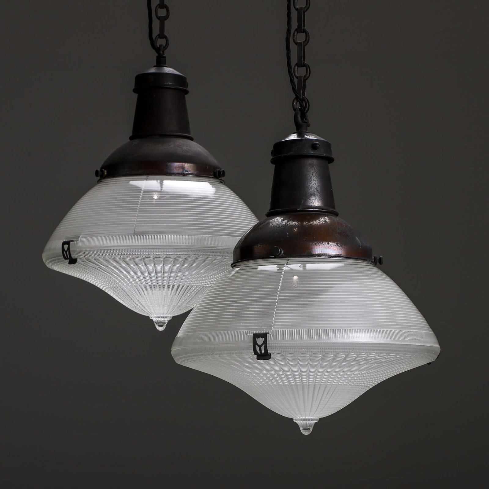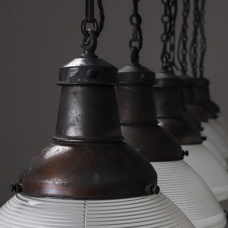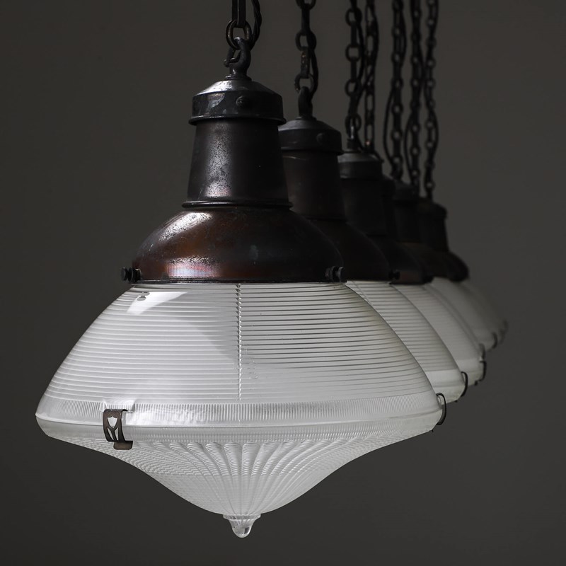 Scarce run of USA Holophane prismatic lanterns.