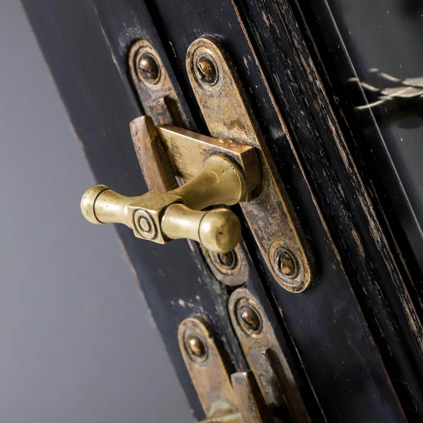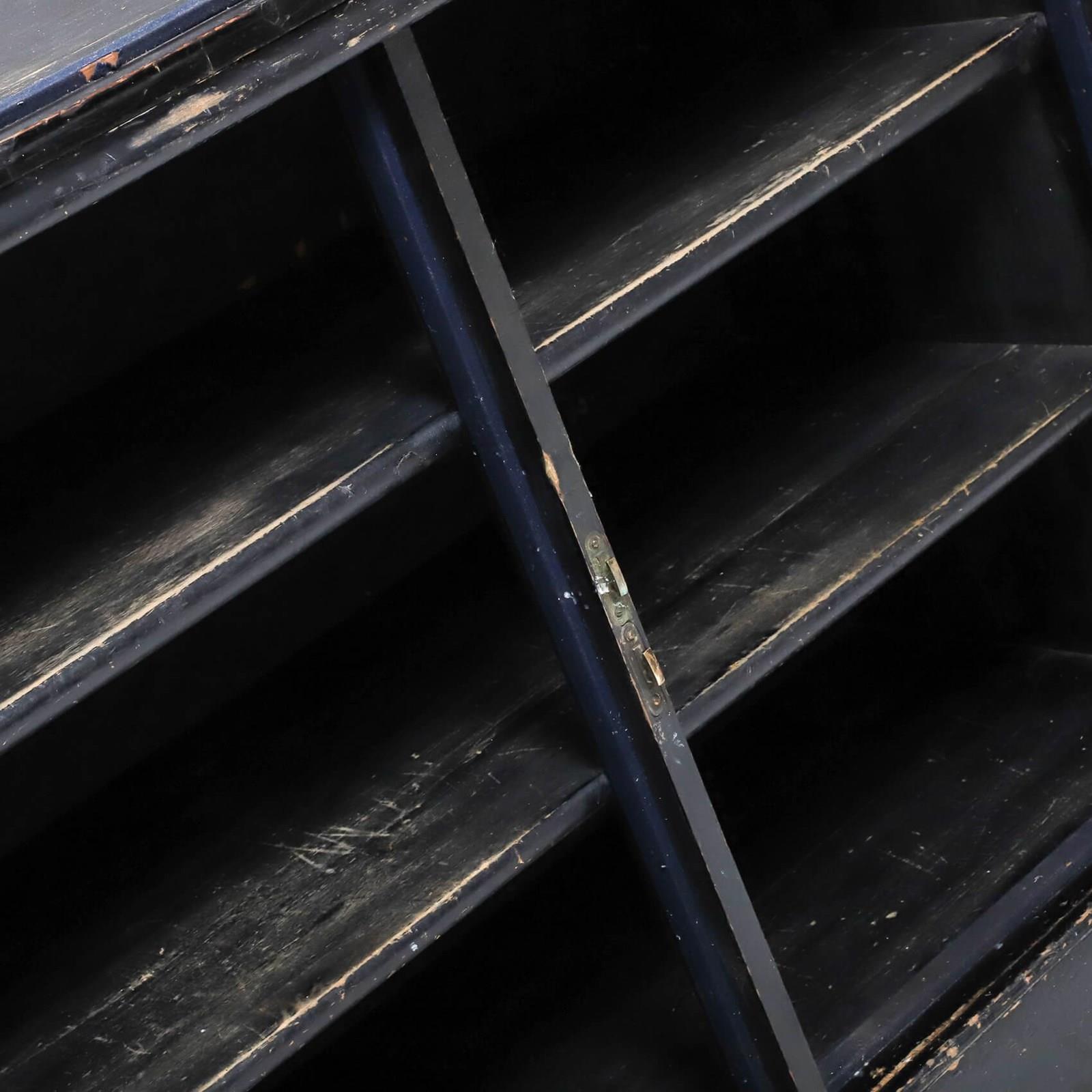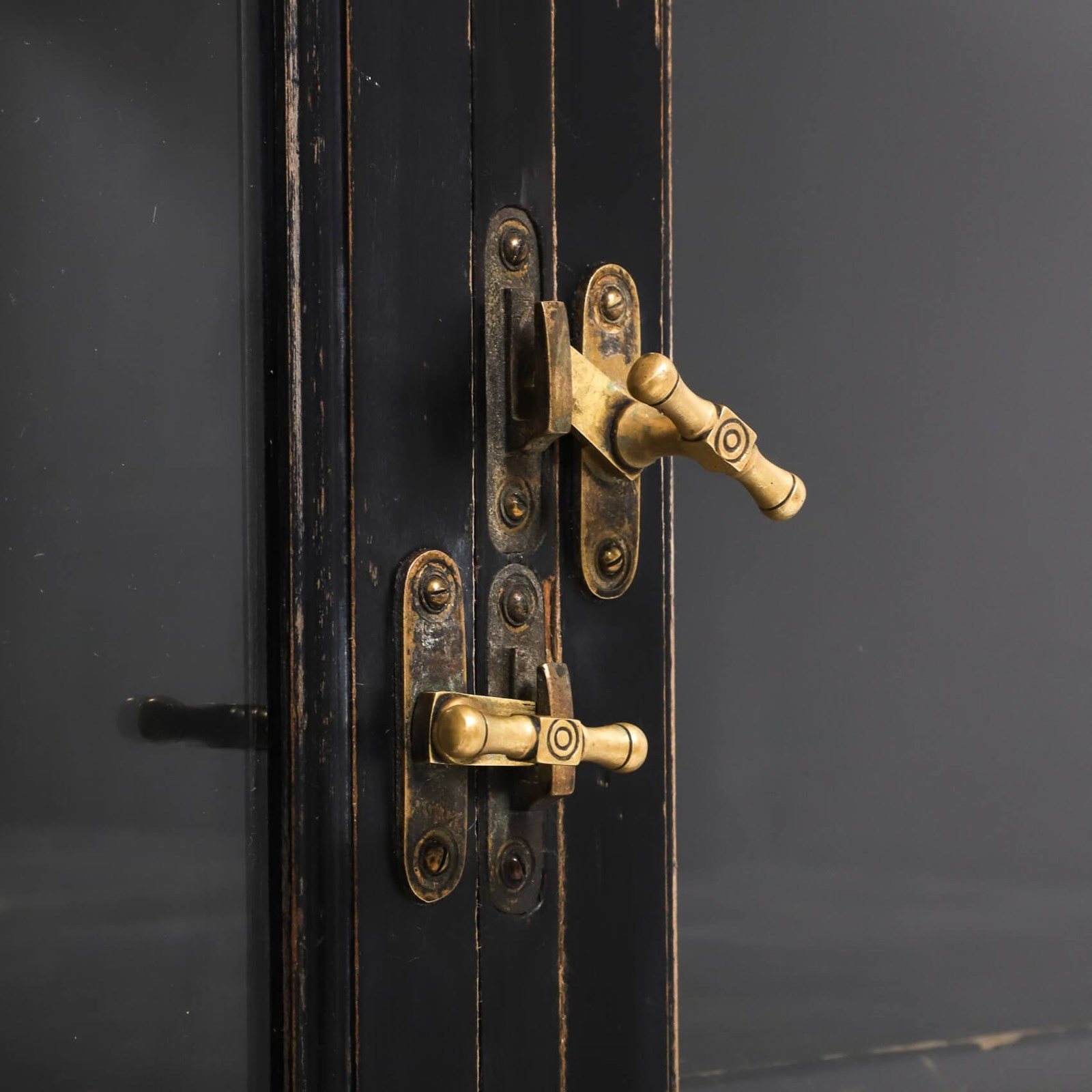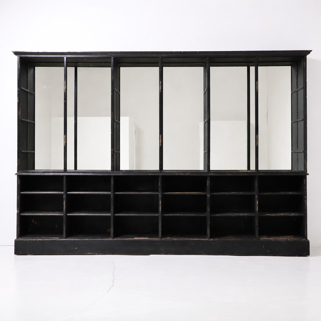 An exceptionally rare & perfectly aged late 19th century solicitors cabinet presented in its original ebonised finish, complemented with mirrored backplate, aged brass olive latches & velvet lined detail.
