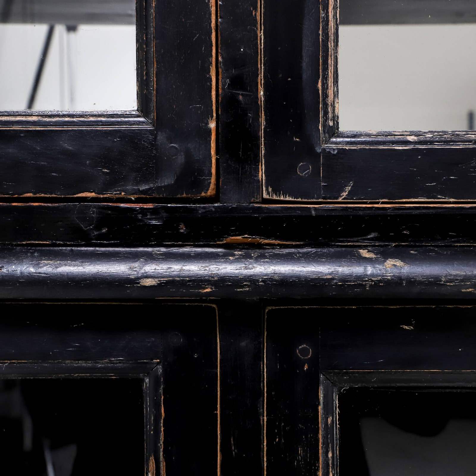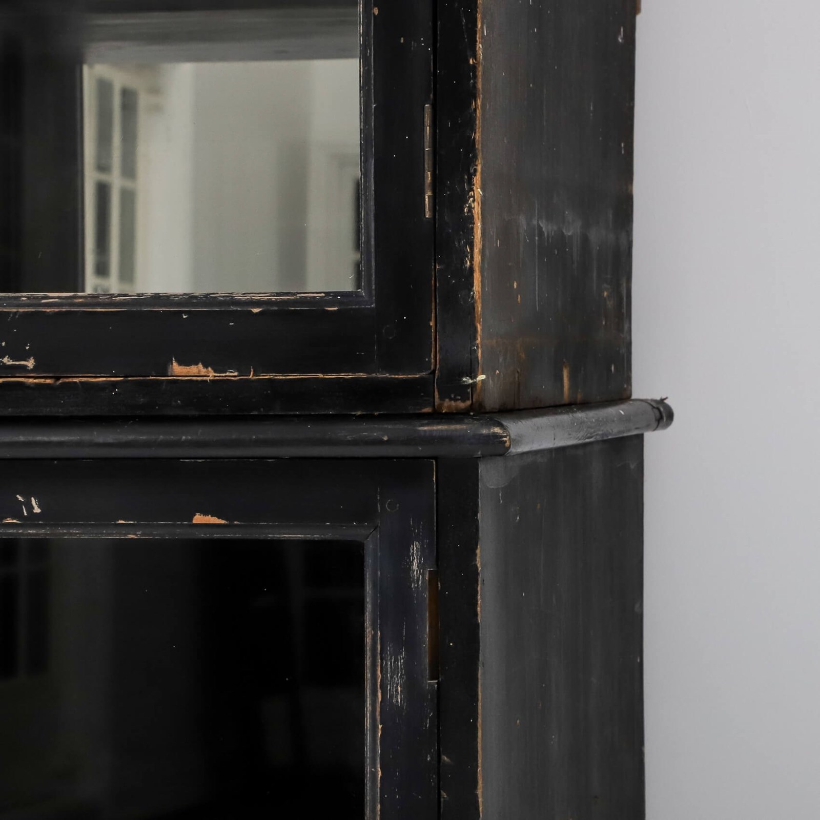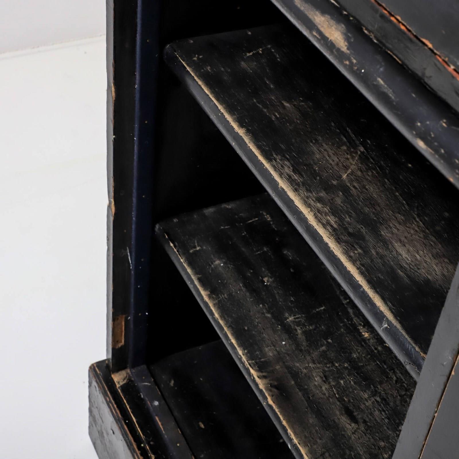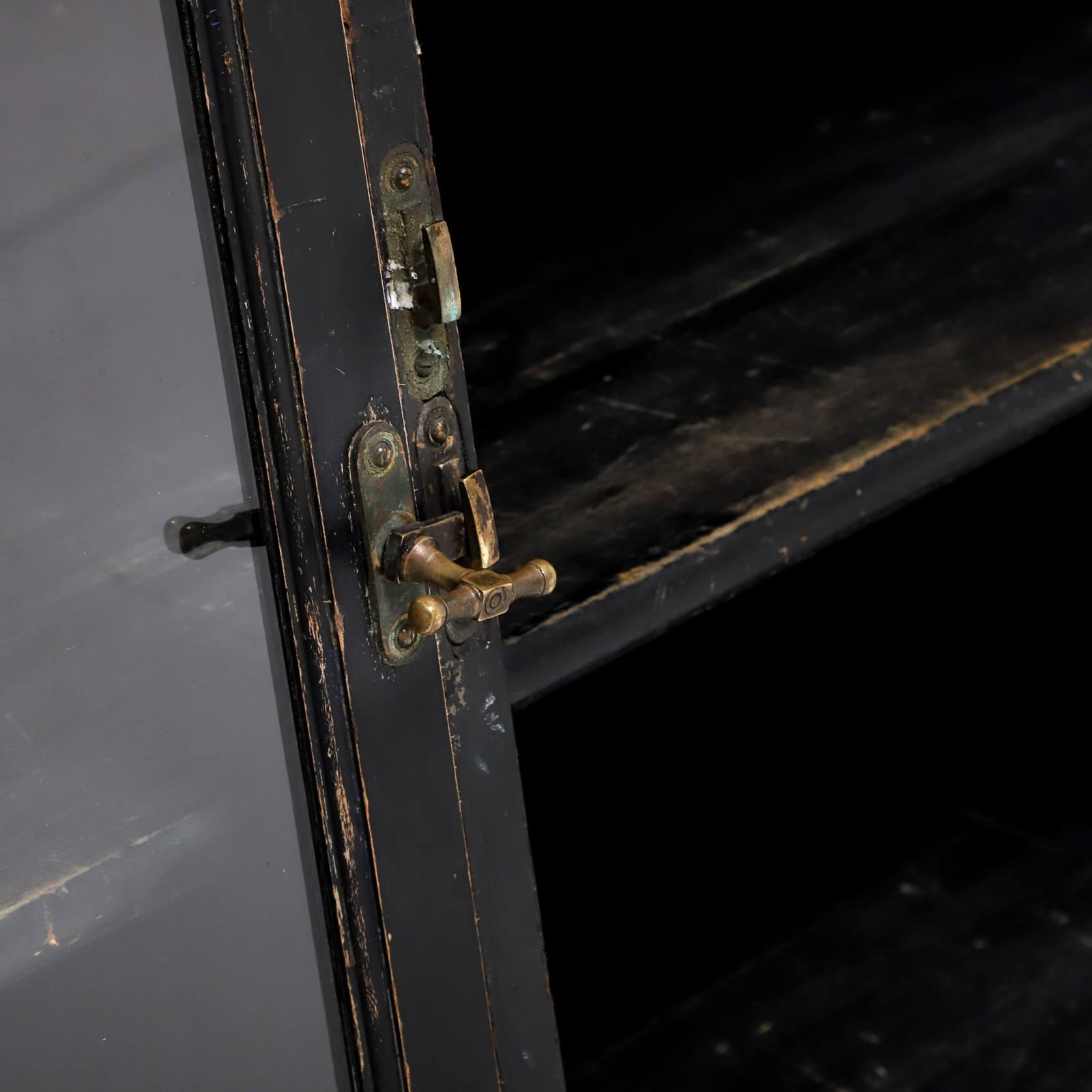 An exceptionally rare & perfectly aged late 19th century solicitors cabinet presented in its original ebonised finish, complemented with mirrored backplate, aged brass olive latches & velvet lined detail.