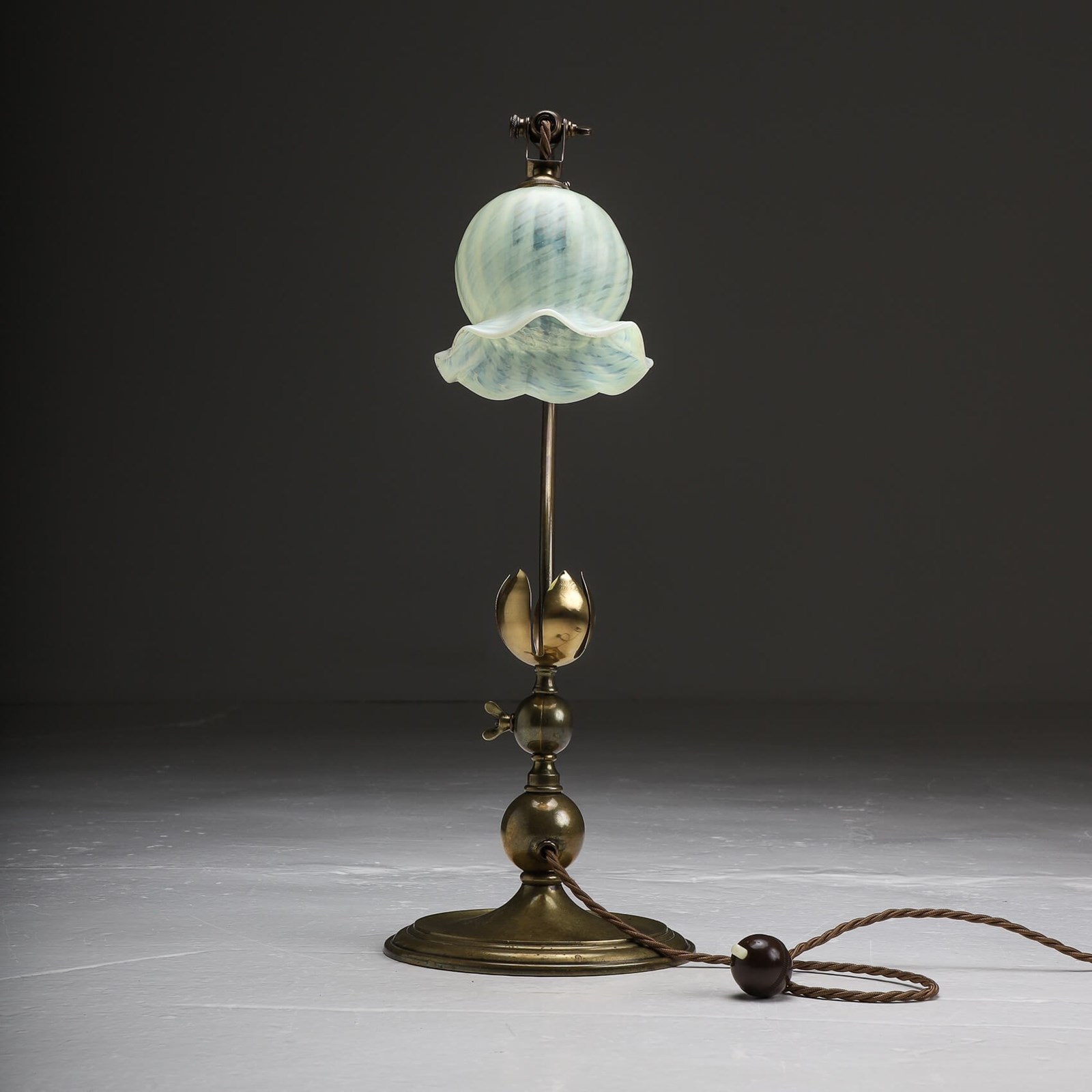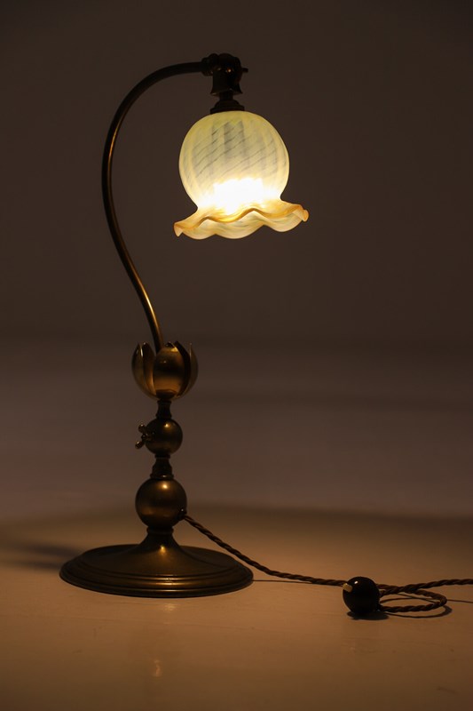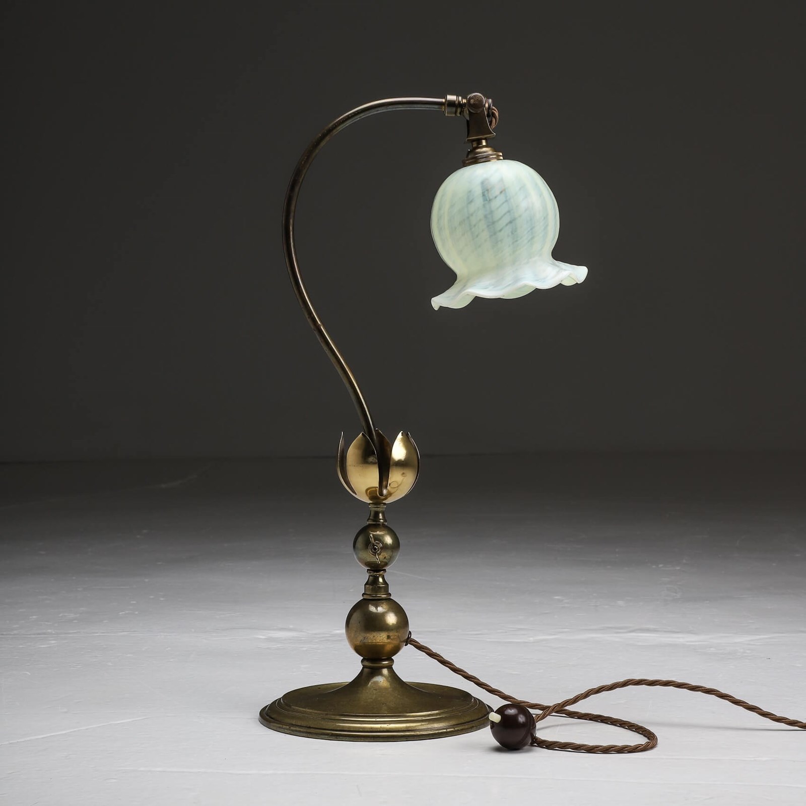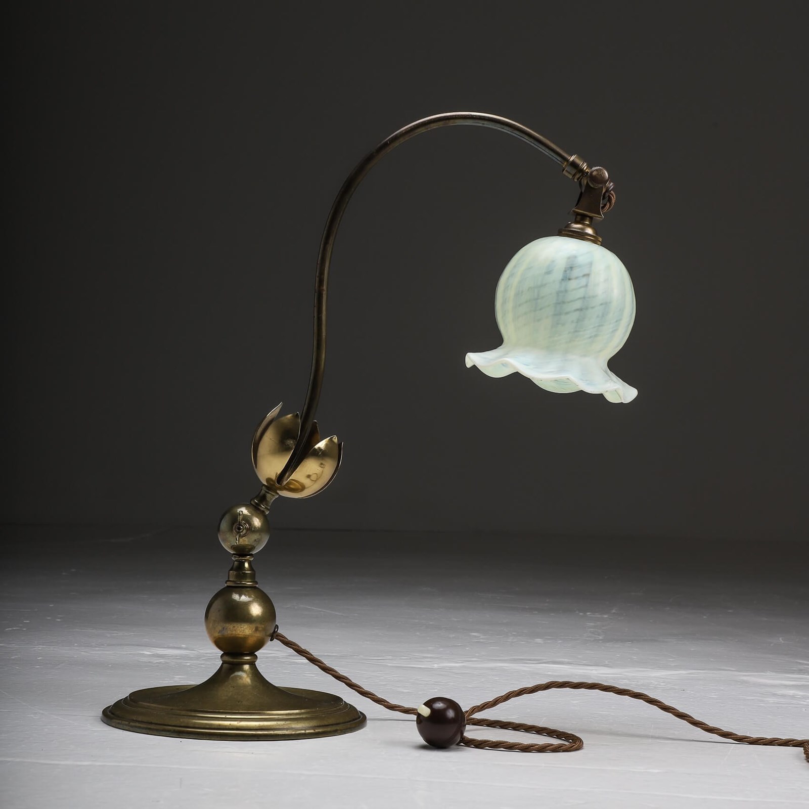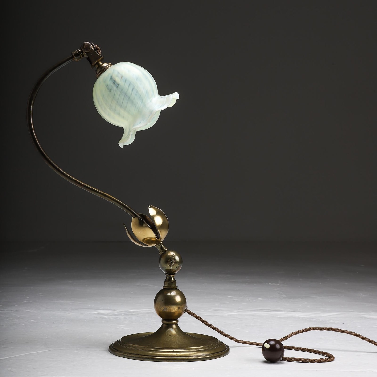 Presented in its original finish and complete with its original Art Nouveau Vaseline glass shade by Powell.