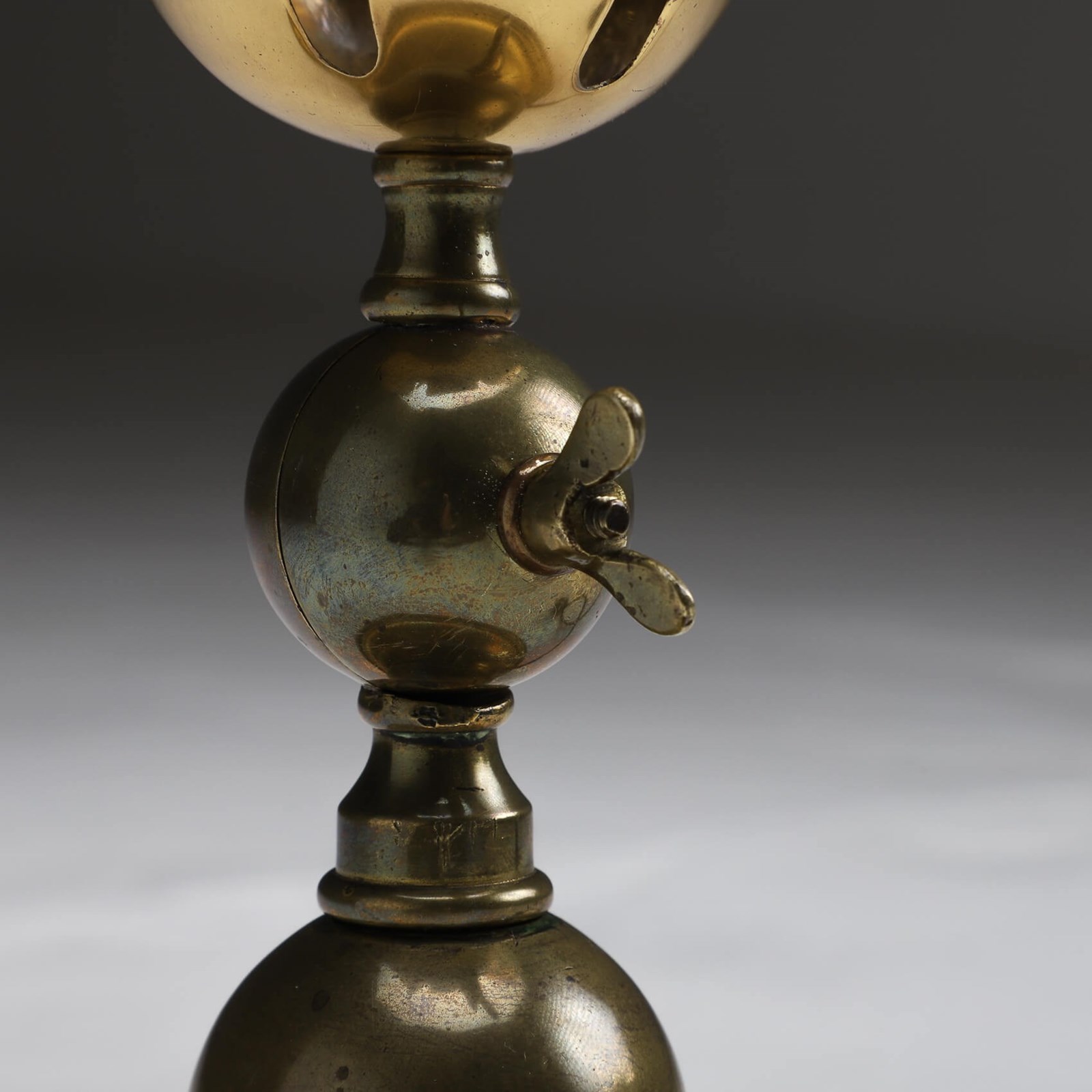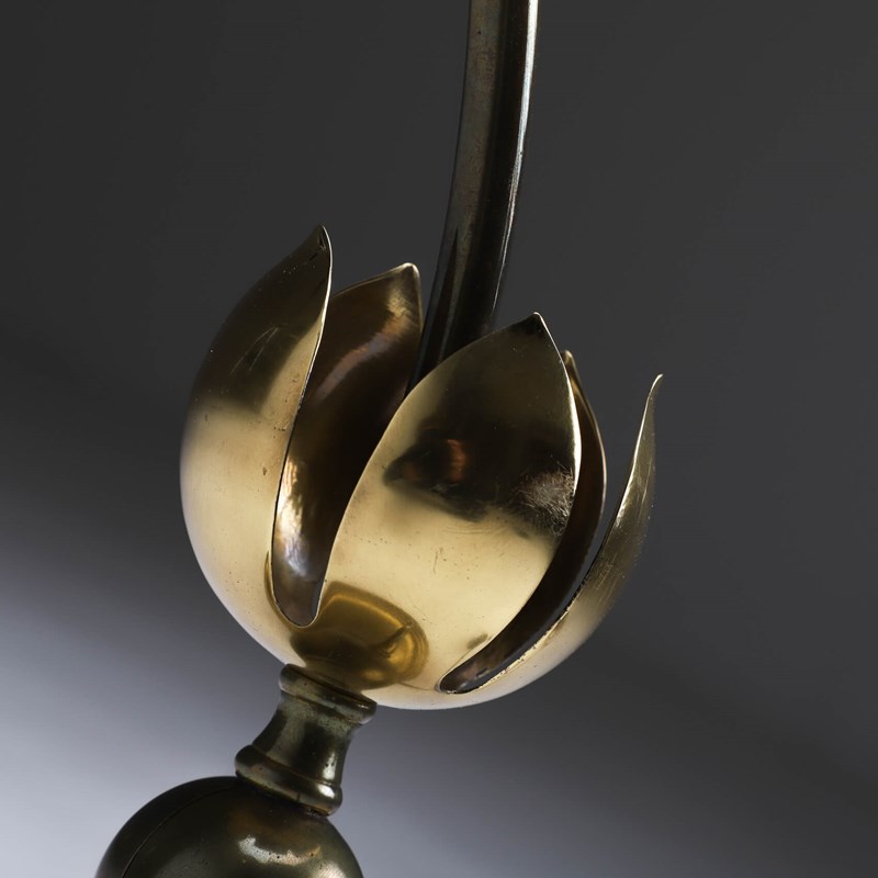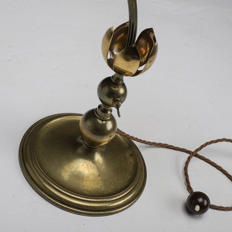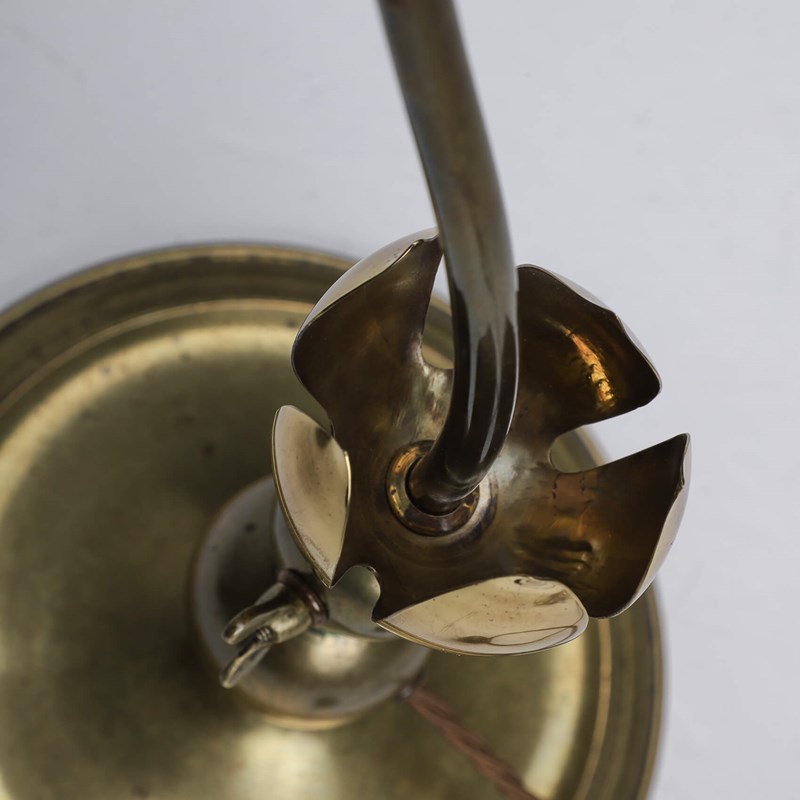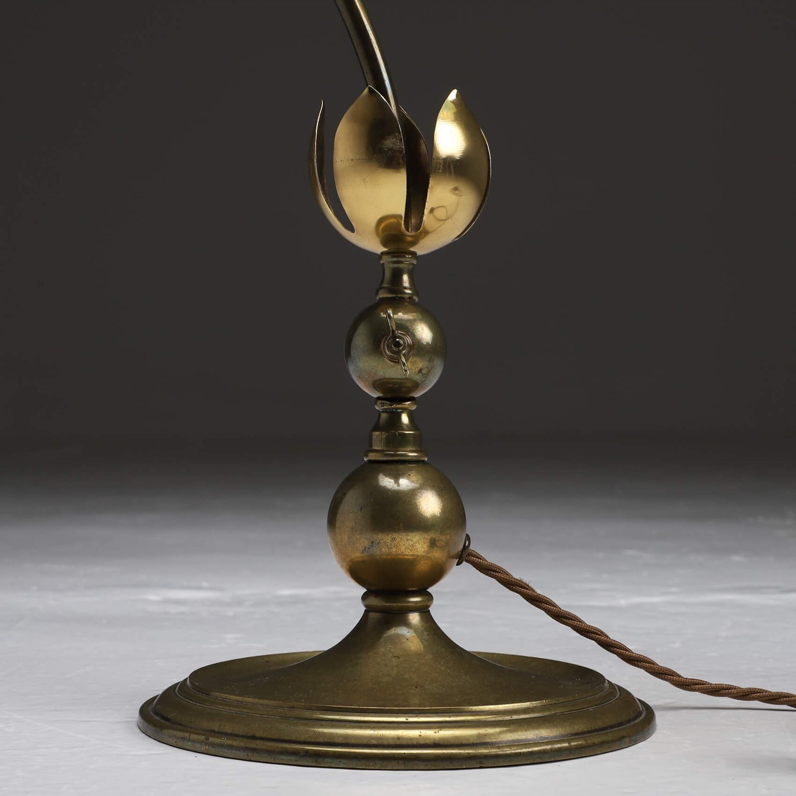 A beautifully elegant aged brass table lamp by W.A.S. Benson, detailed in the Benson catalogue as model E1599..