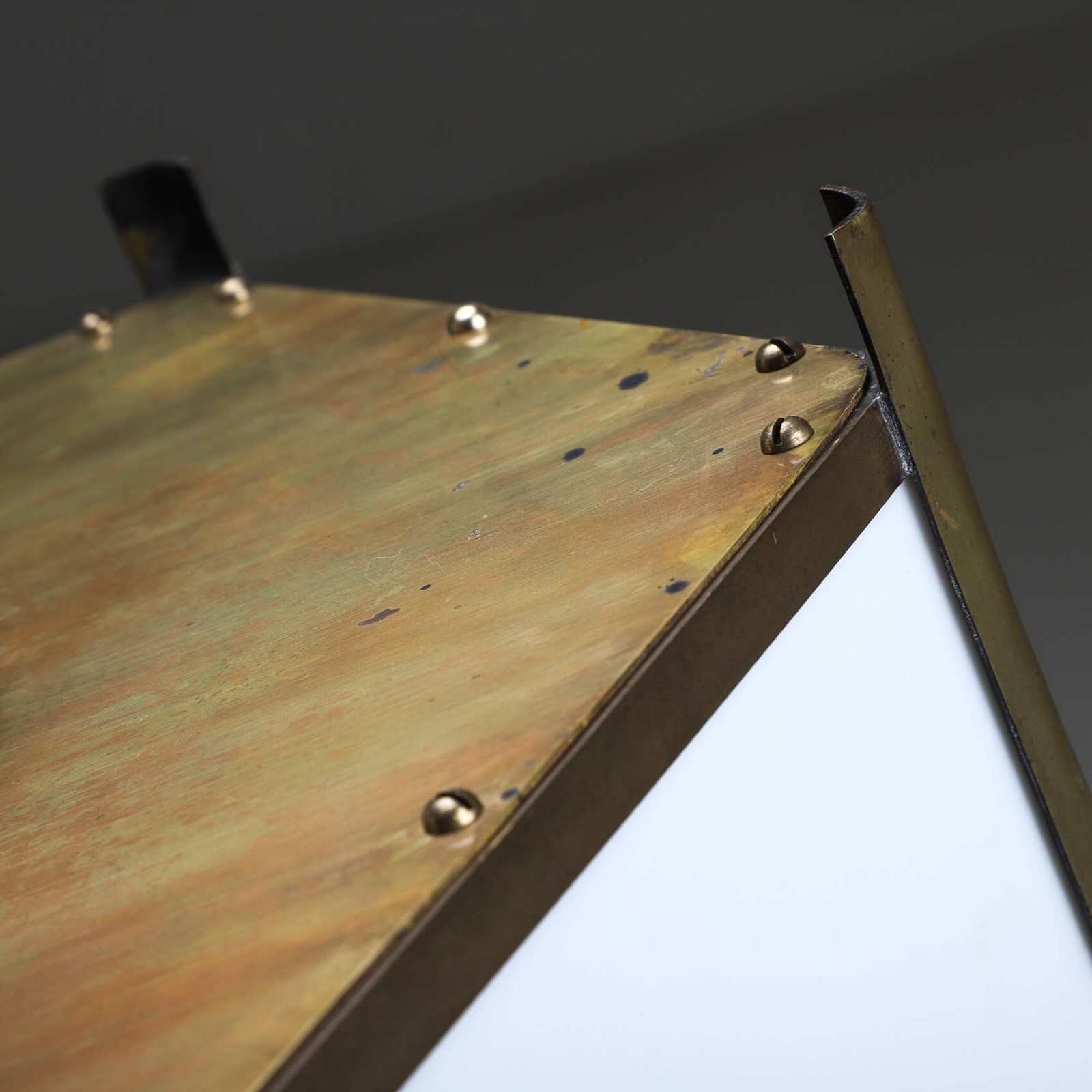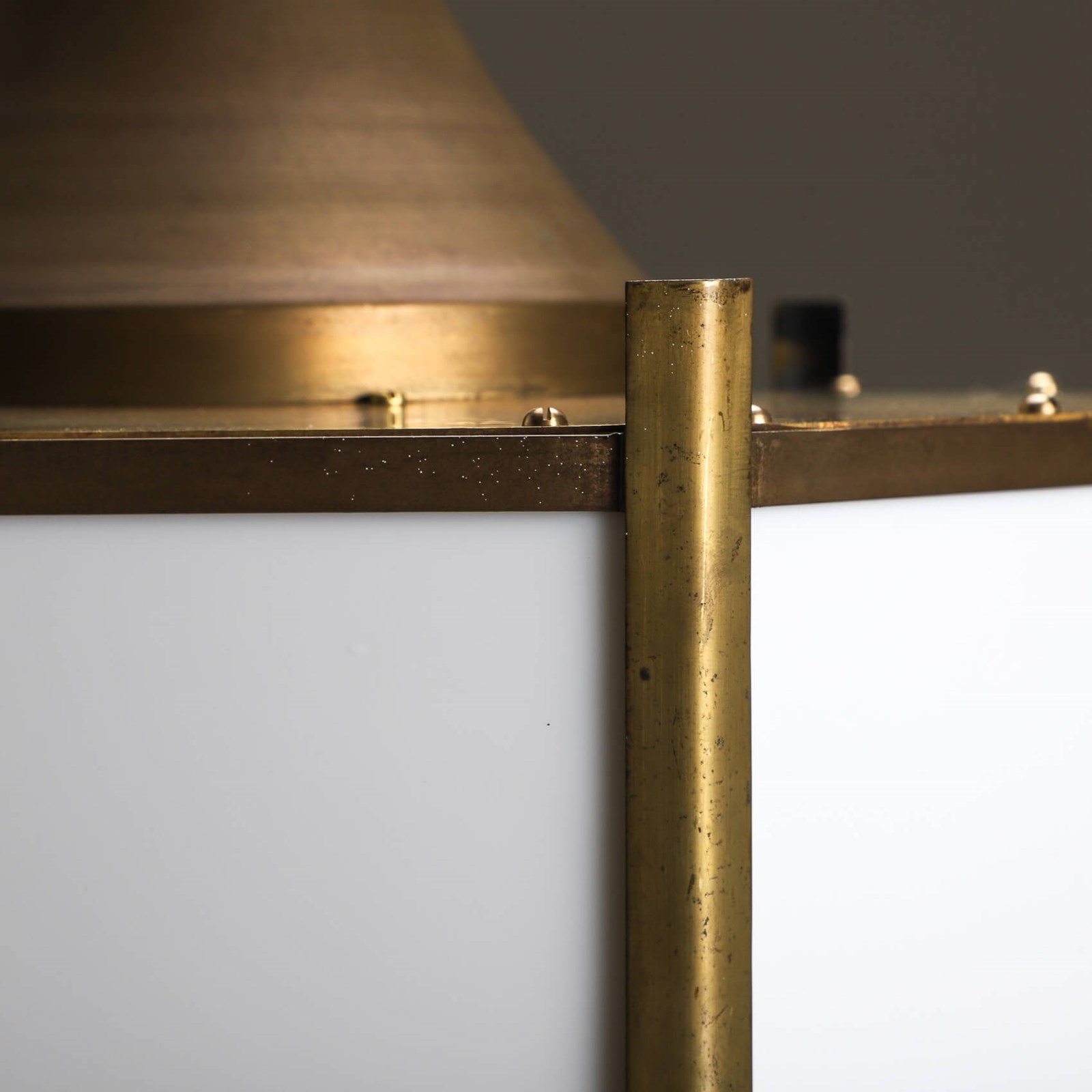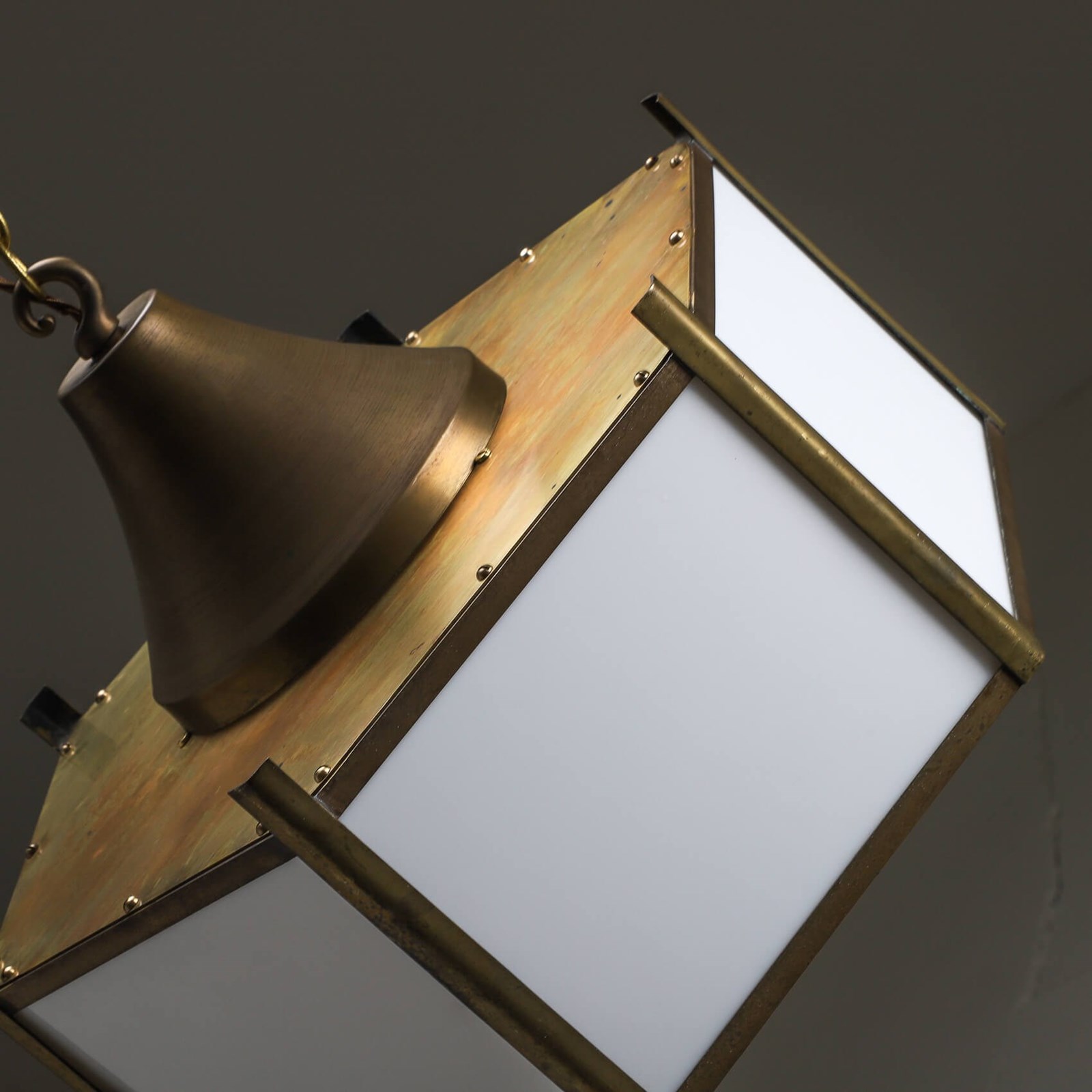 Beautifully crafted from brass & complement with opaline glass panels giving the a soft ambient glow when lit.