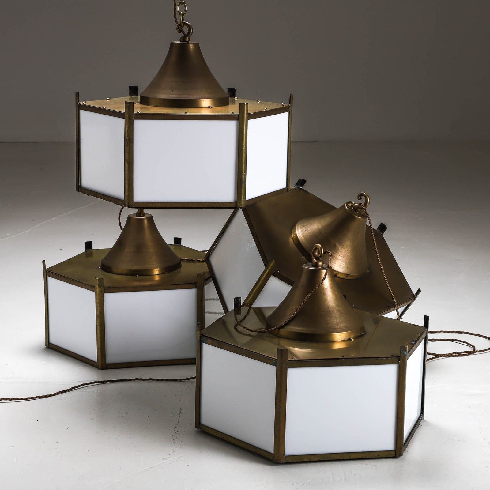 A run of XL Art Deco opaline Lanterns.
