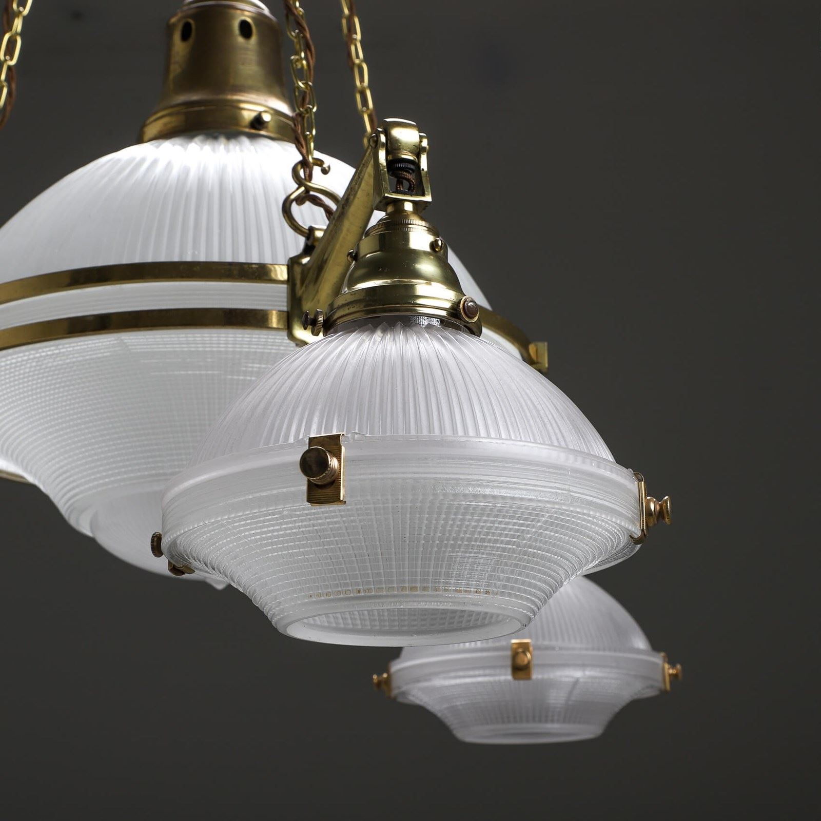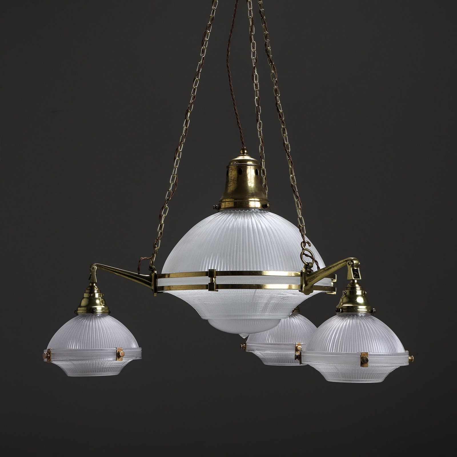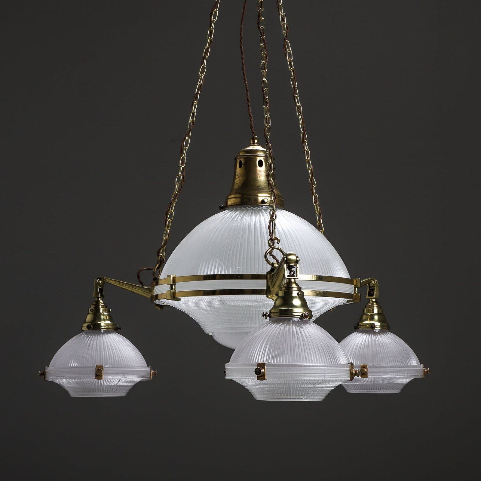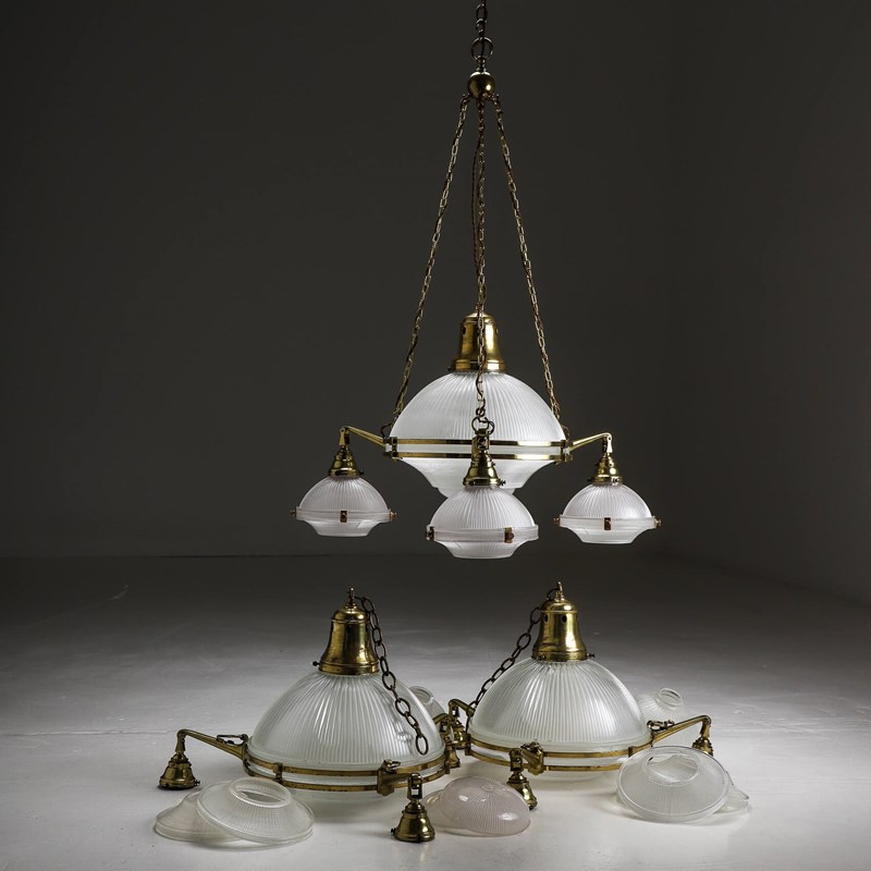 Xl Brass Holophane Chandelier