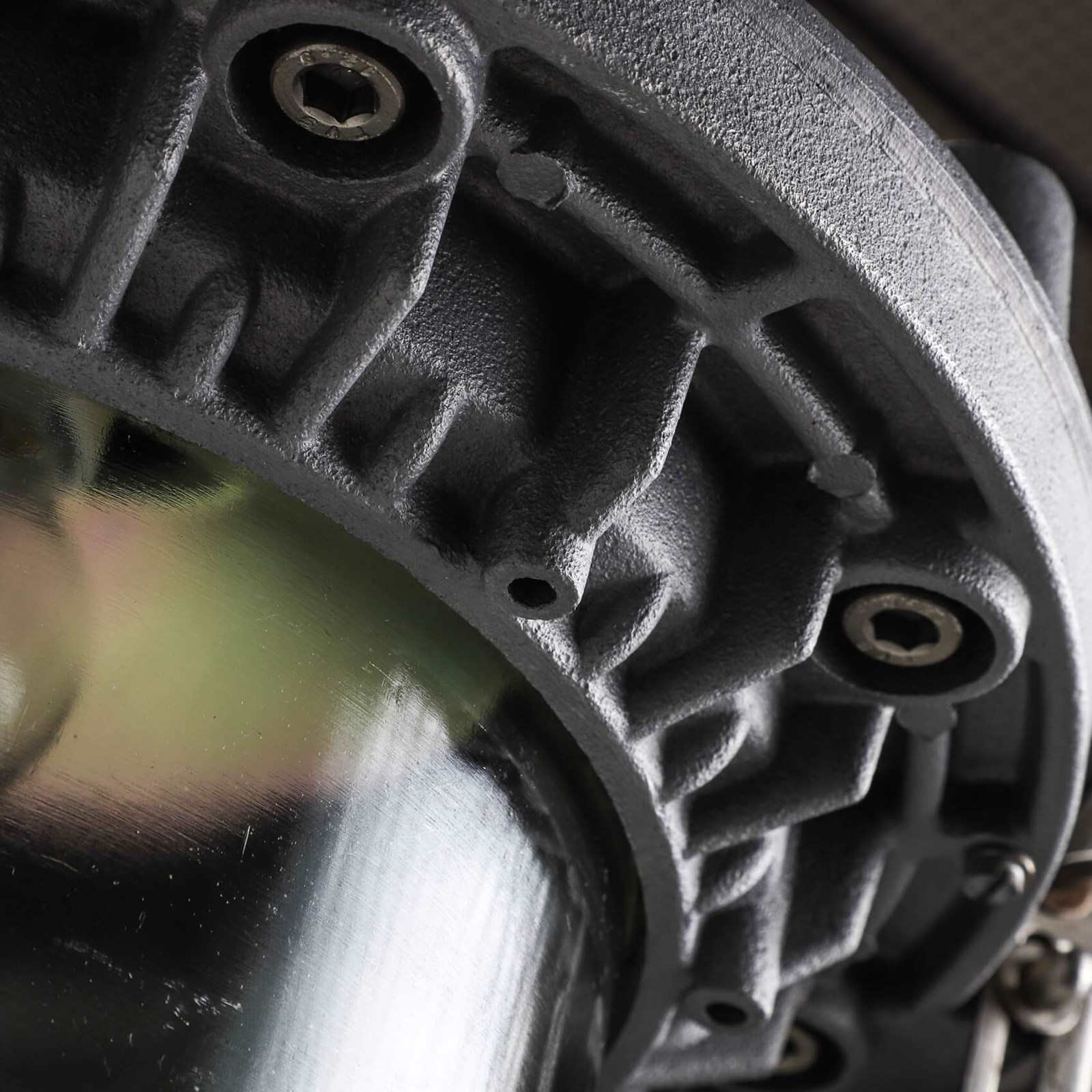 Chunky robust heavy cast top with thick glass dome.