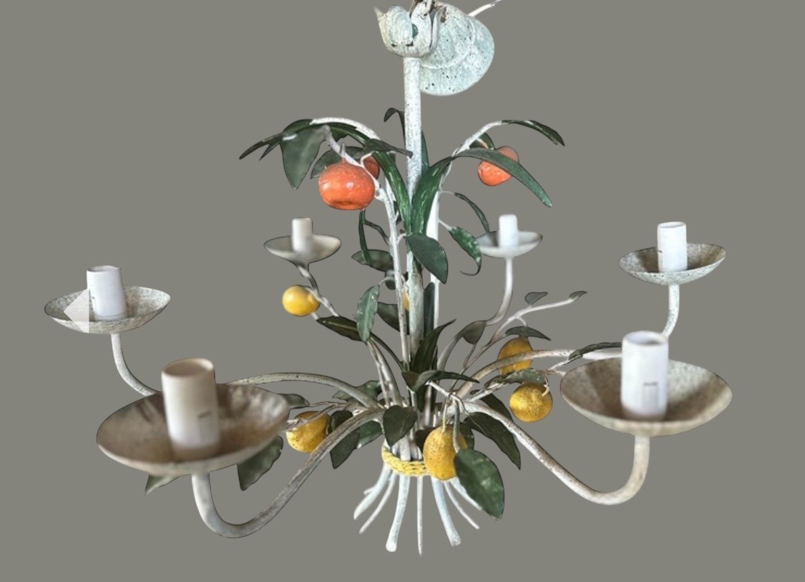 A Vintage French Six Branch Painted Tole 'Citrus' Chandelier