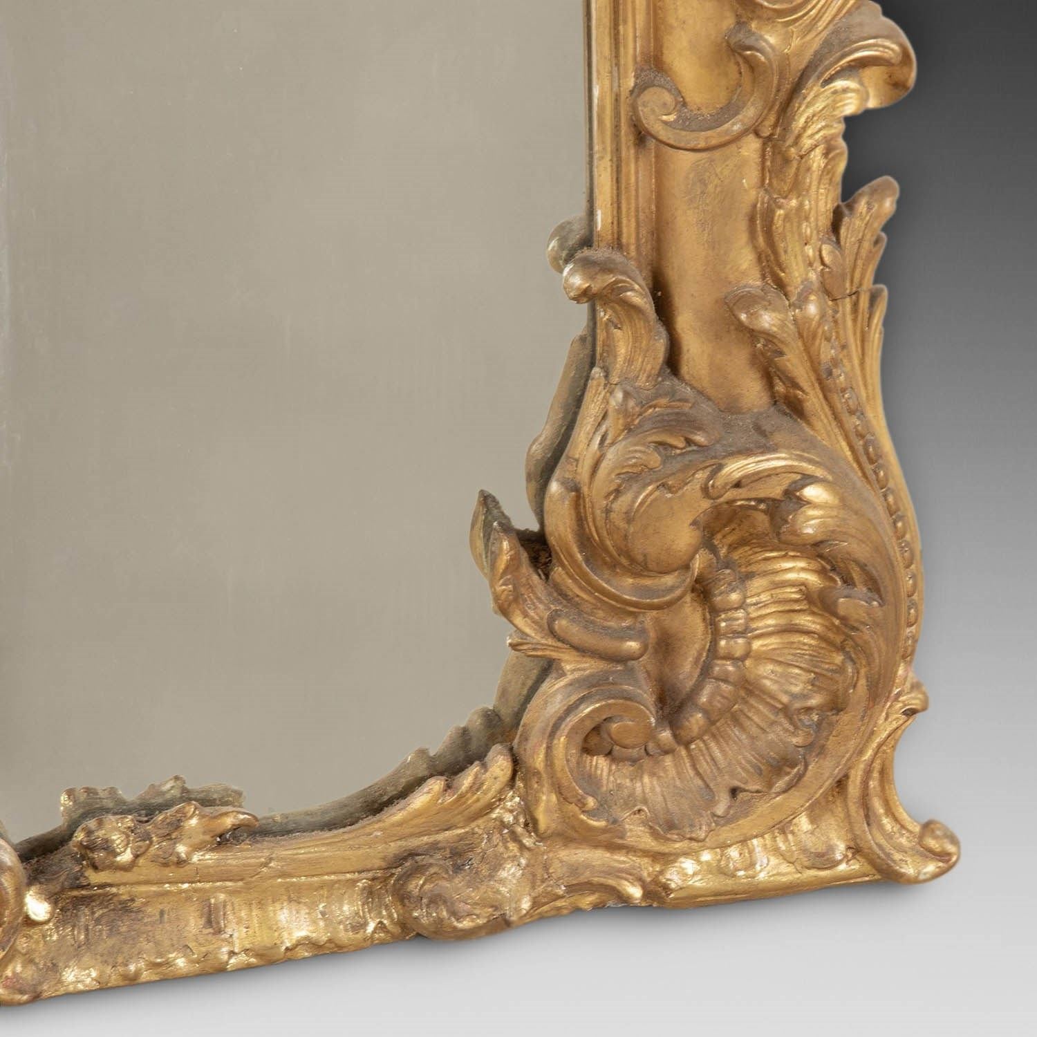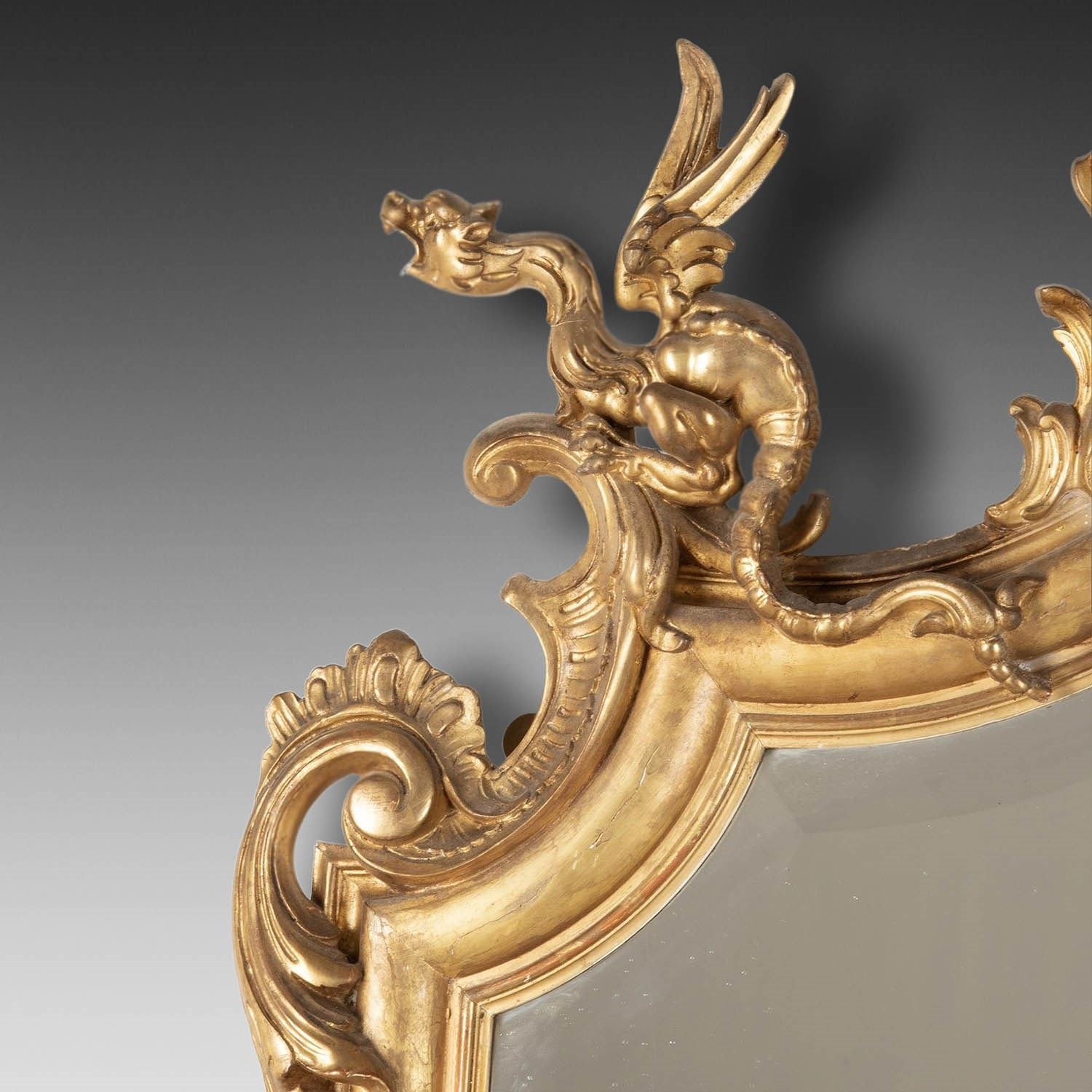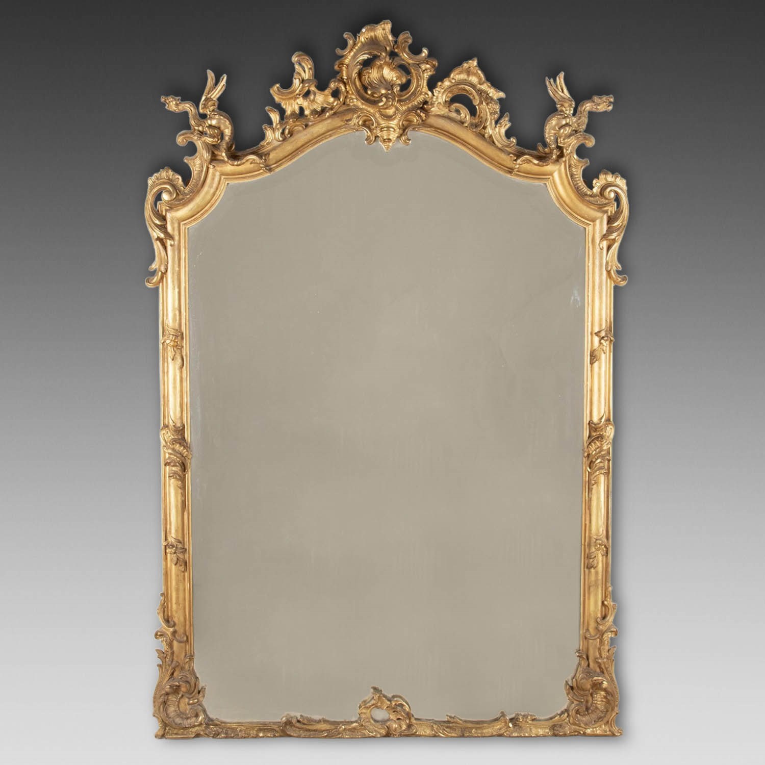 This fine individual piece retains its original gilding to the beautiful carved frame and also importantly still has the original shape bevelled mirror glass. A stunning mirror.