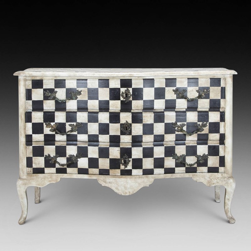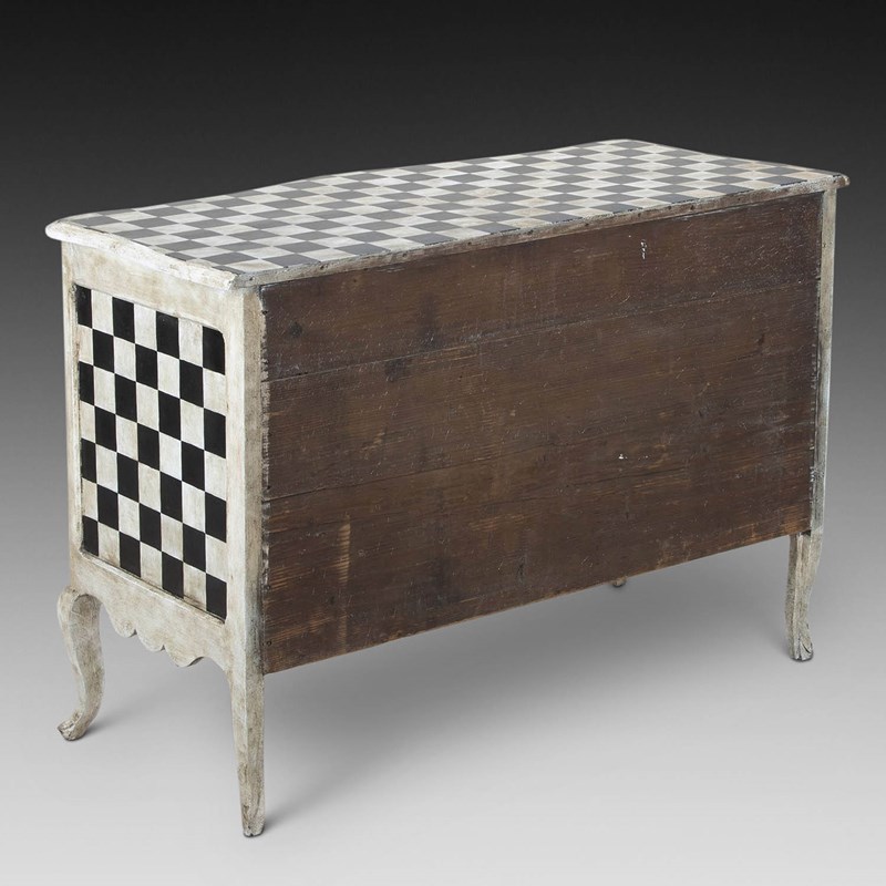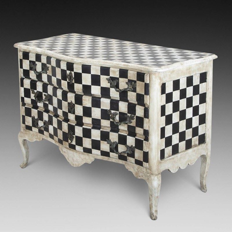 With three working drawers that retain their original decorative handles. Stylish later painted in a chequerboard design. Resulting in bringing this lovely period piece into today’s decorative fashion.