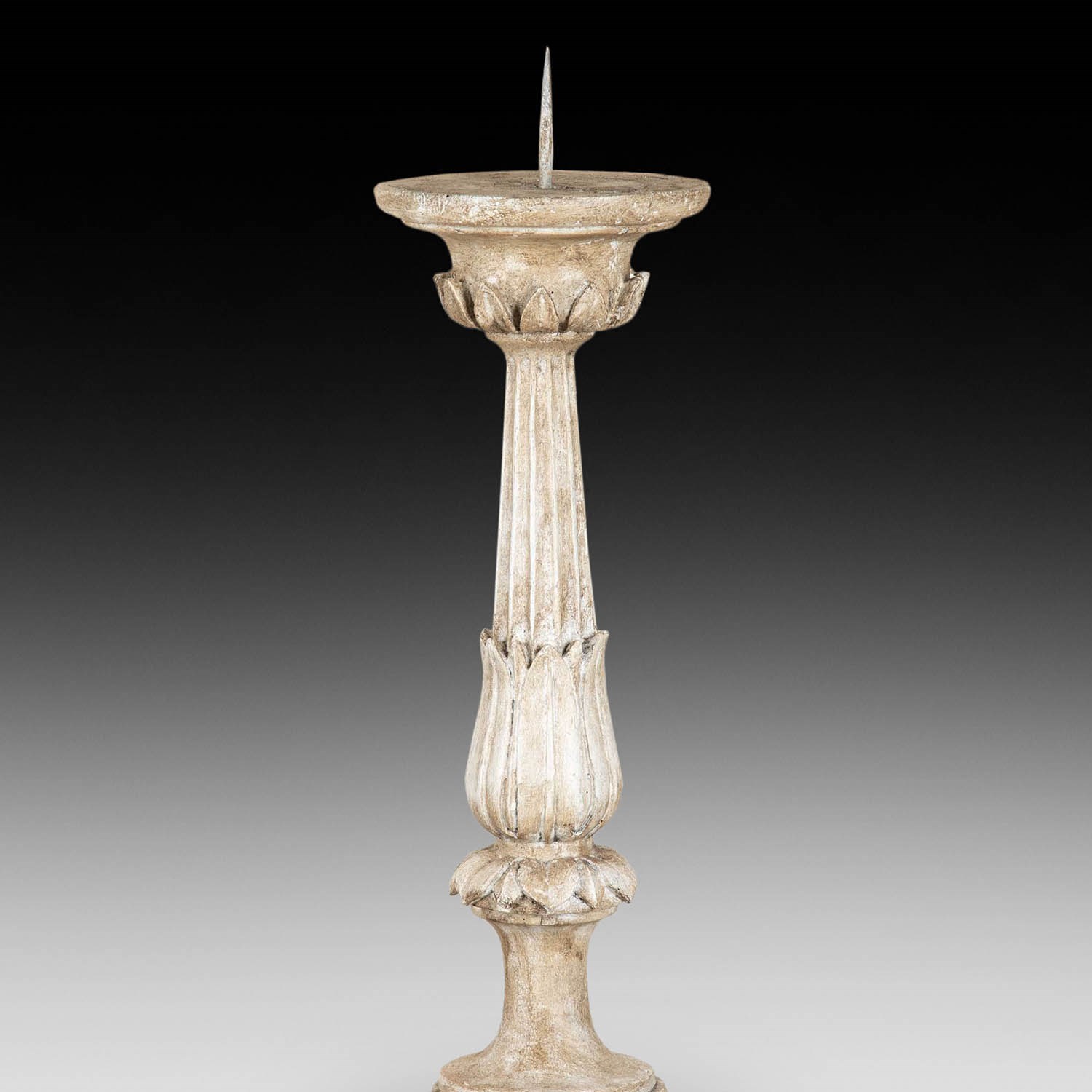 This beautiful pair stands well and the spike for the candles, which could easily be removed to make it a pair of torcheres or plant stands.