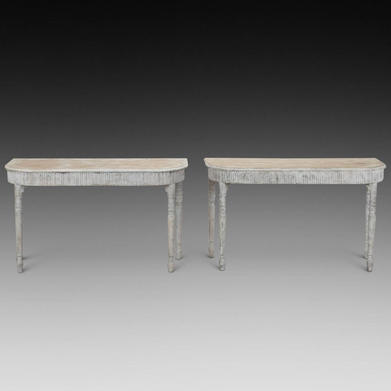 An attractive and very decorative pair of later painted early 19th Century English console tables.