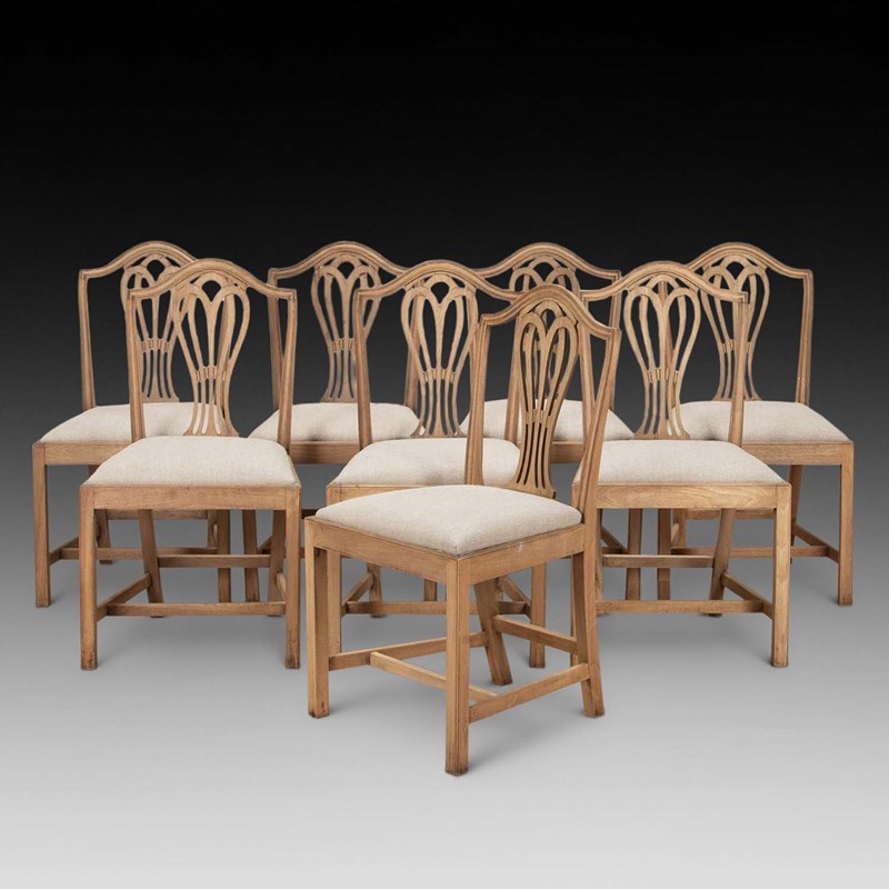 A beautiful set of eight early 19th Century bleached mahogany dining chairs.