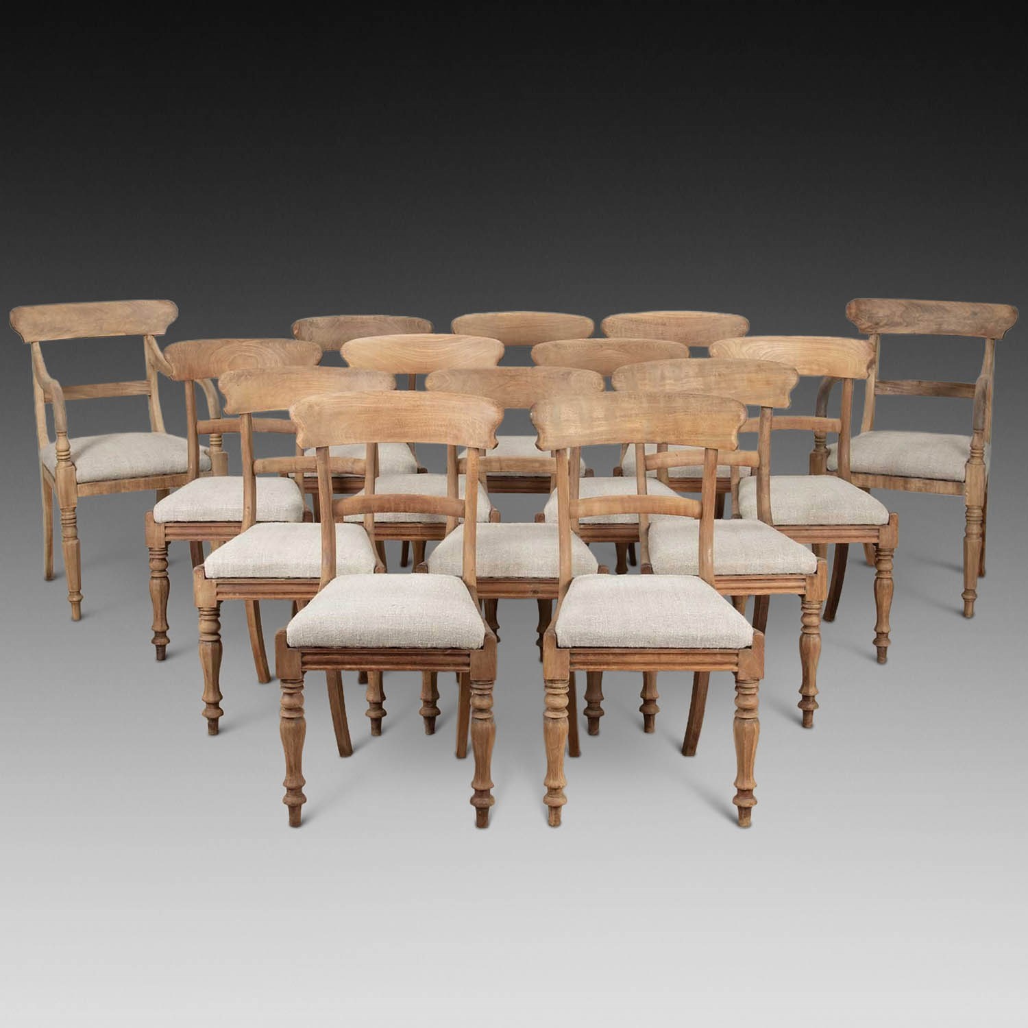 Set Of Fourteen 19Th Century English Lightly Bleached Mahogany Dining Chairs