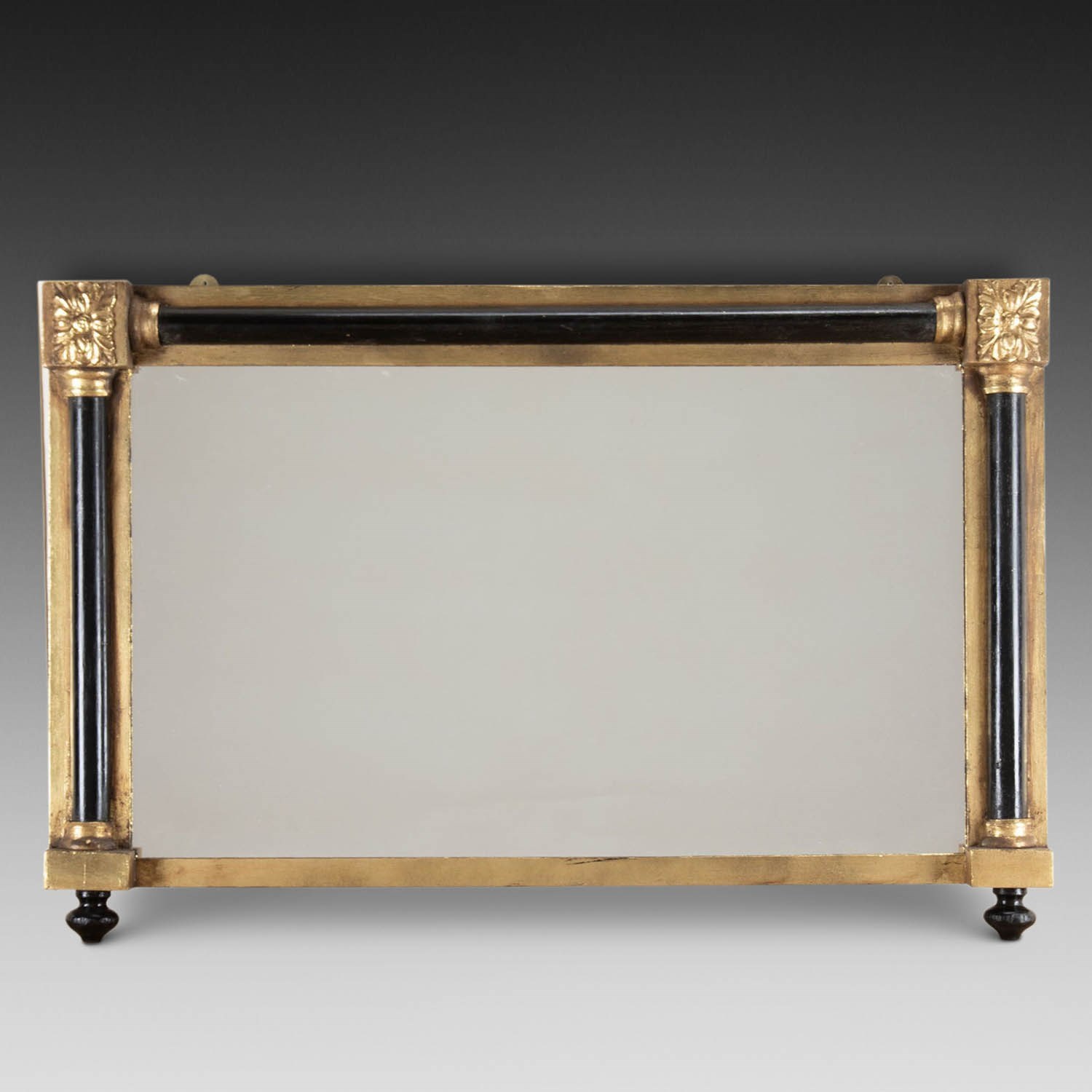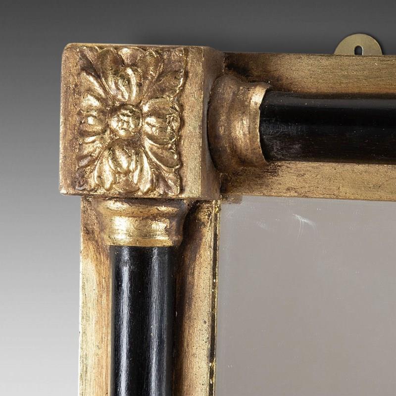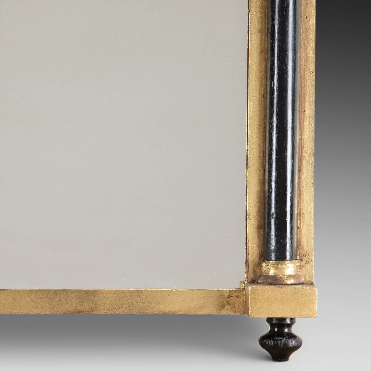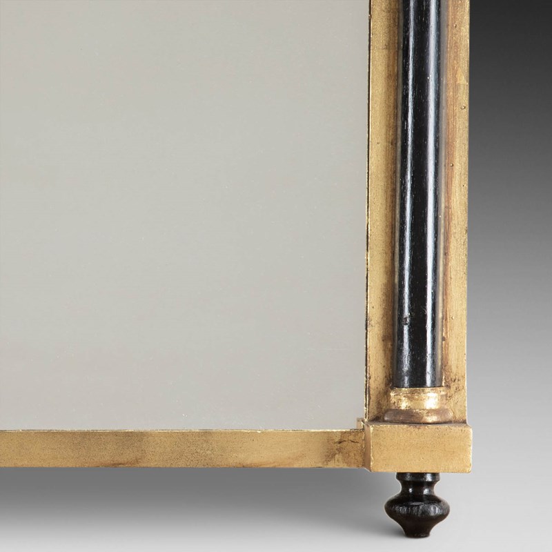 With ebonised pillars, standing out against the gilt frame. The frame has had good restoration to bring it to showroom condition and the mirror glass has been replaced. Still a beautiful little mirror.
