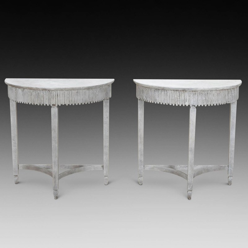 Small Pair Of 20Th Century English Painted D Shaped Console Tables